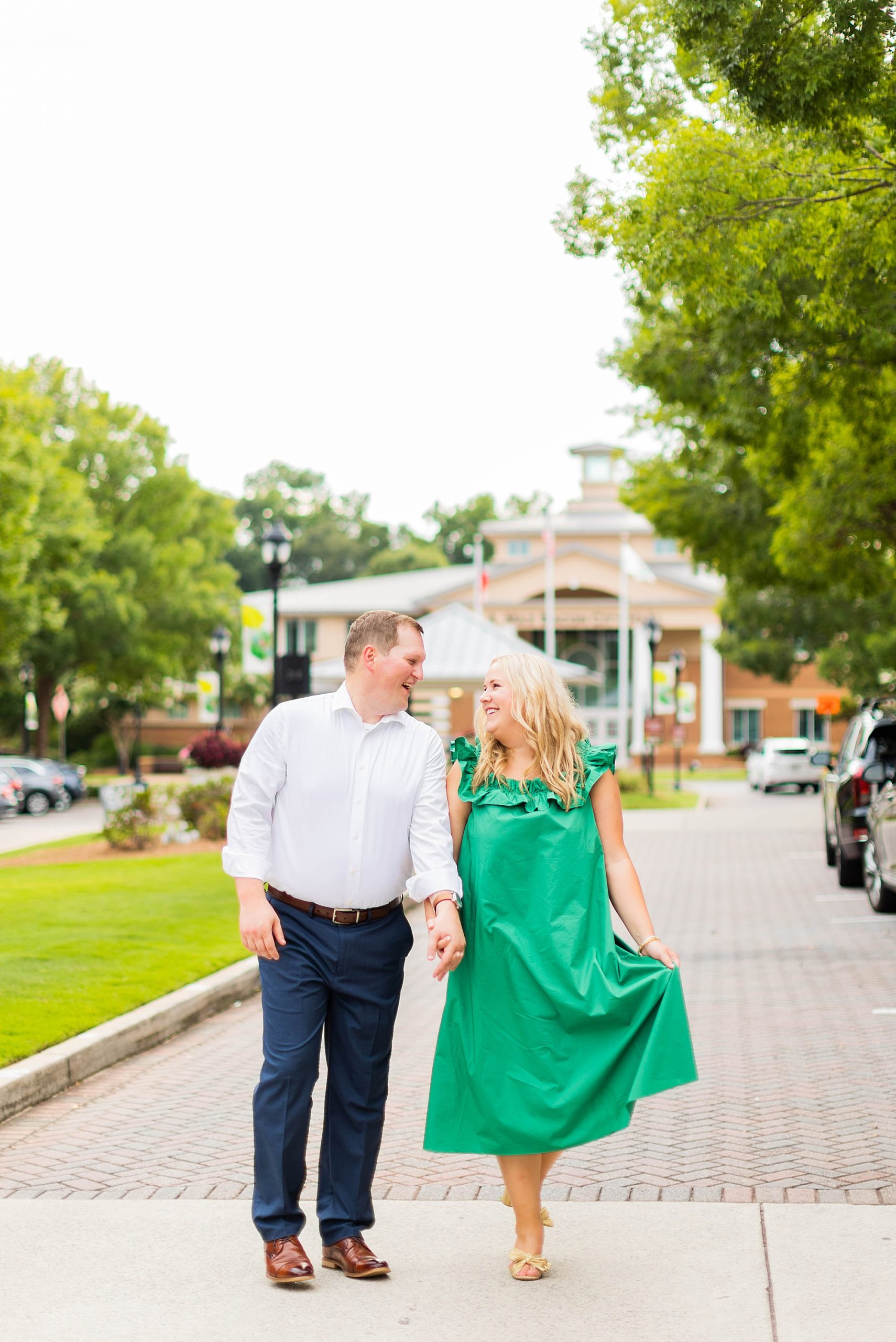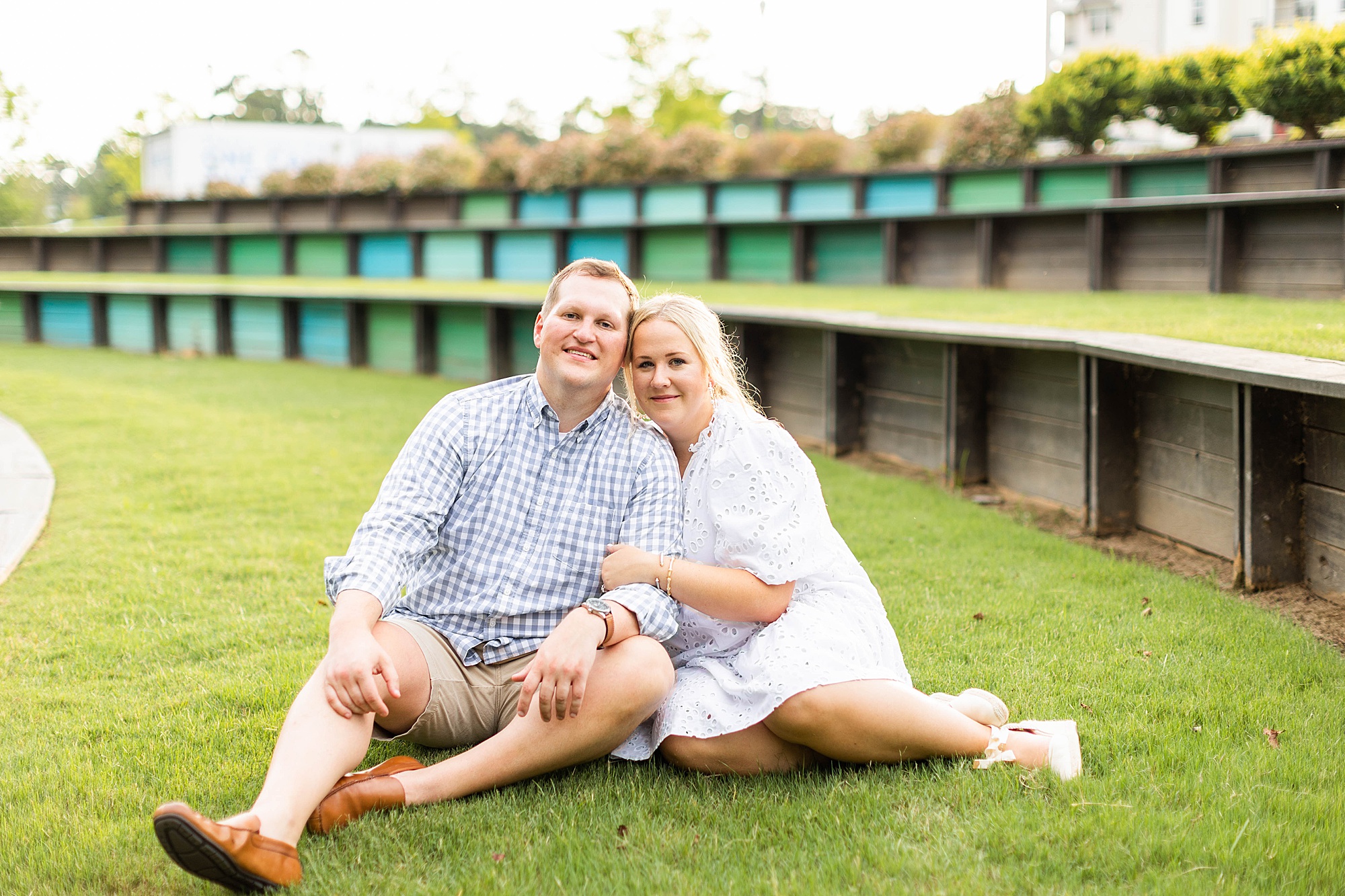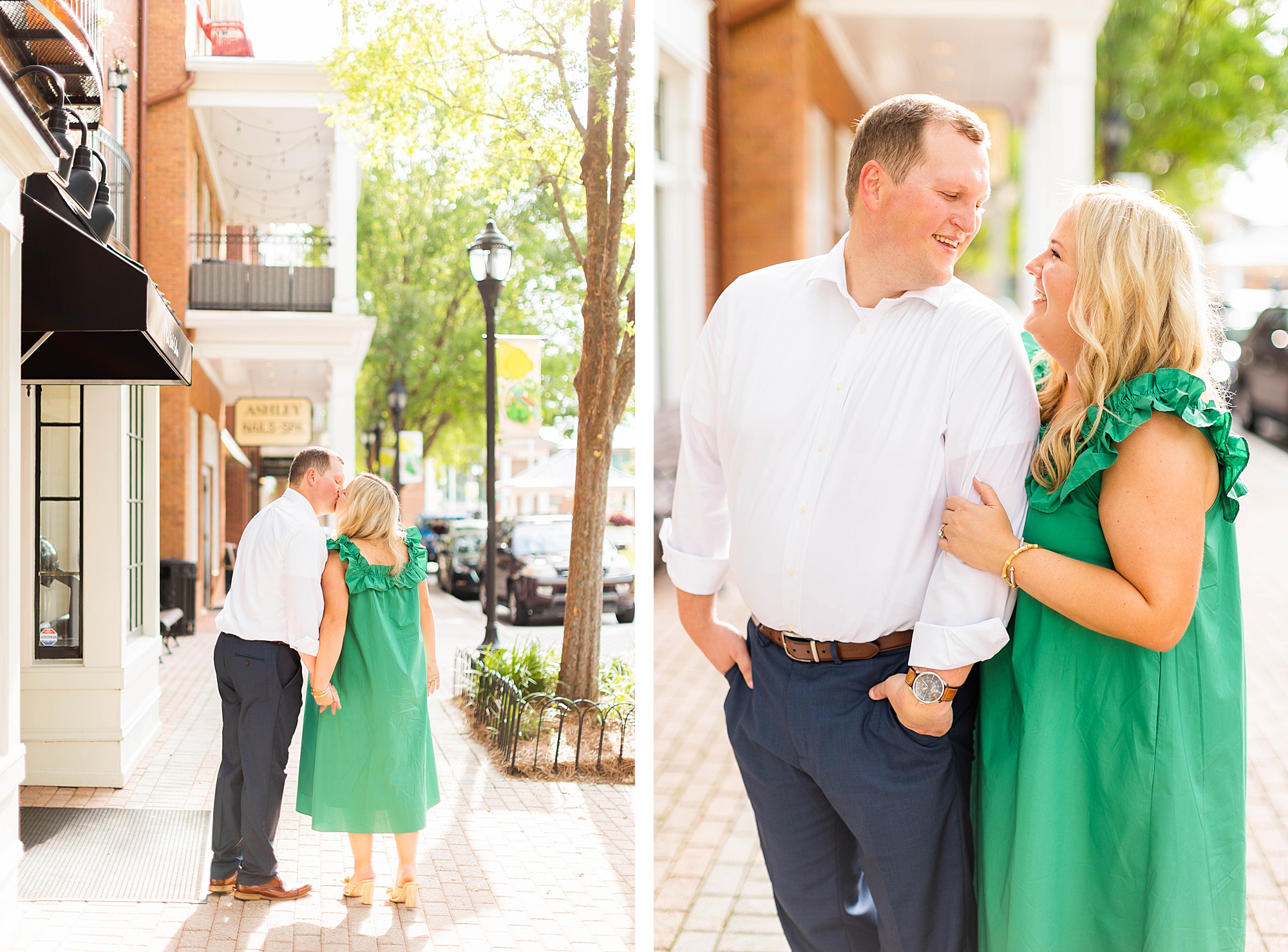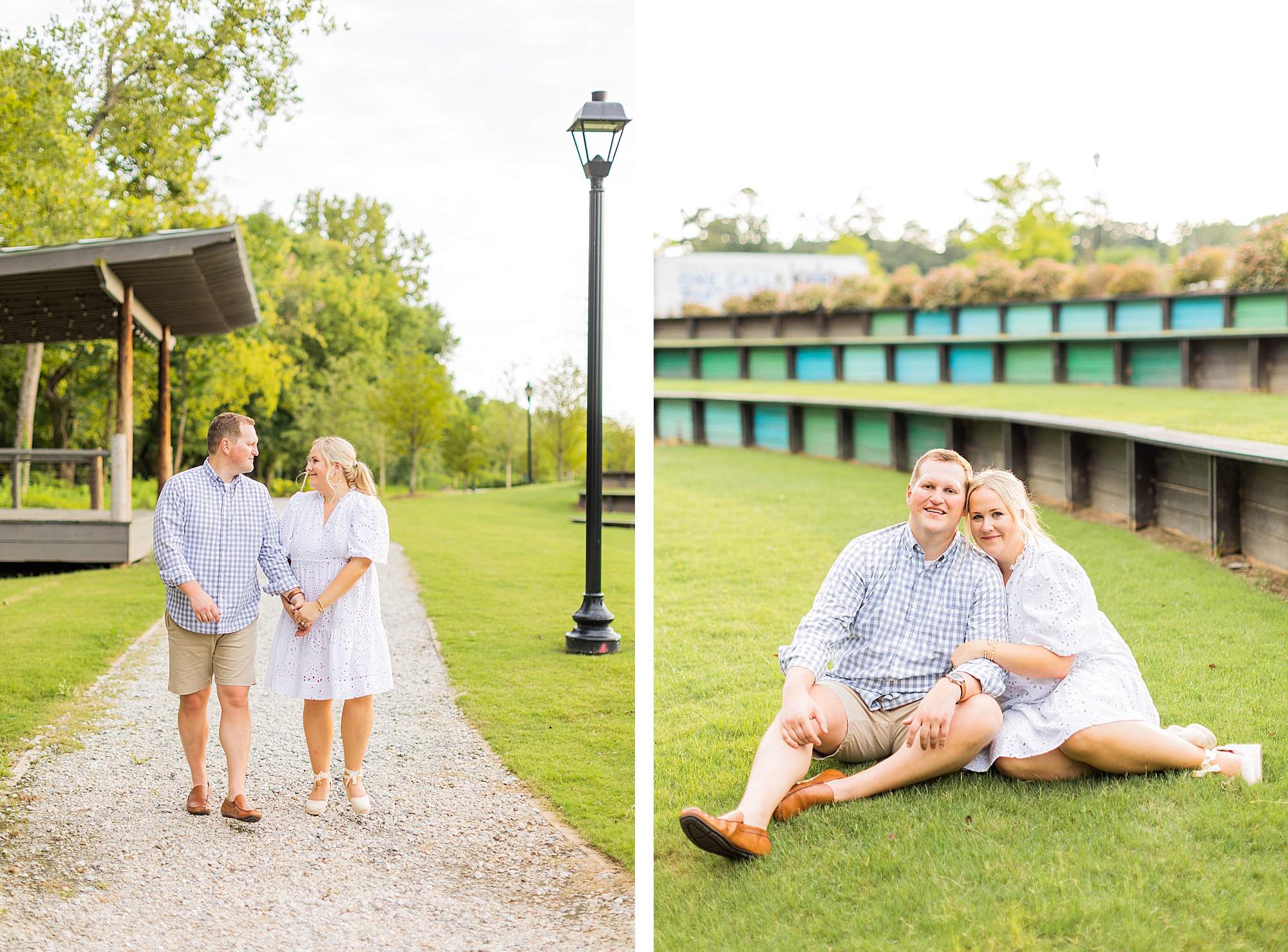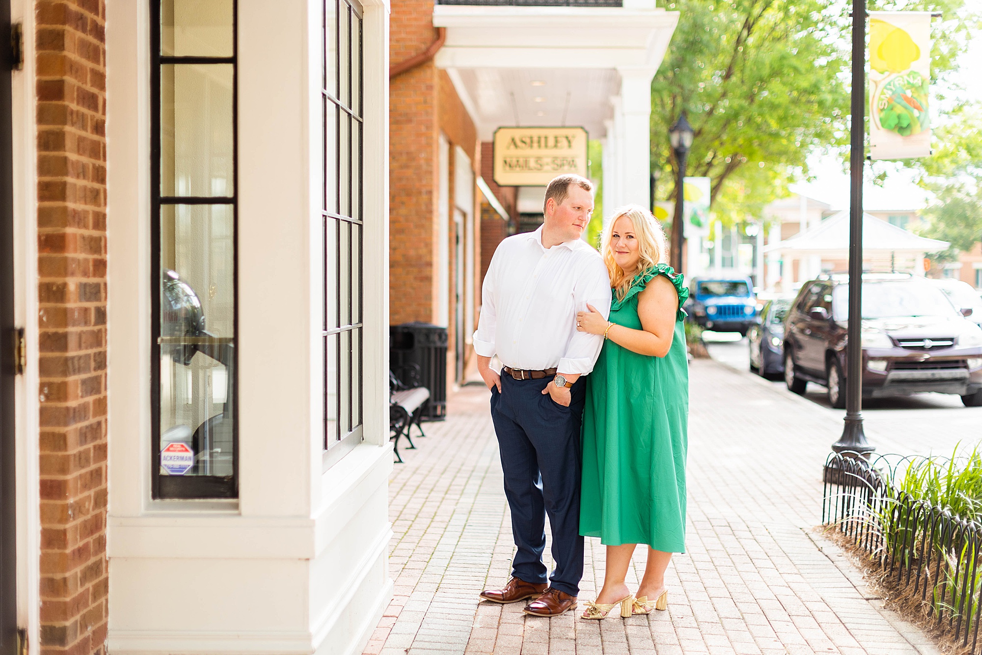 Atkins Park in a suburb of Atlanta is SO COOL and I love that Erin + Mike frequented this spot on their dating journey. We had so much fun dodging cars, walking around and reminiscing on their relationship! It was so hot, but with the help of a rag, some shade and my fan (that unfortunately died five minutes in!!) we made HOTLANTA feel a little cooler.