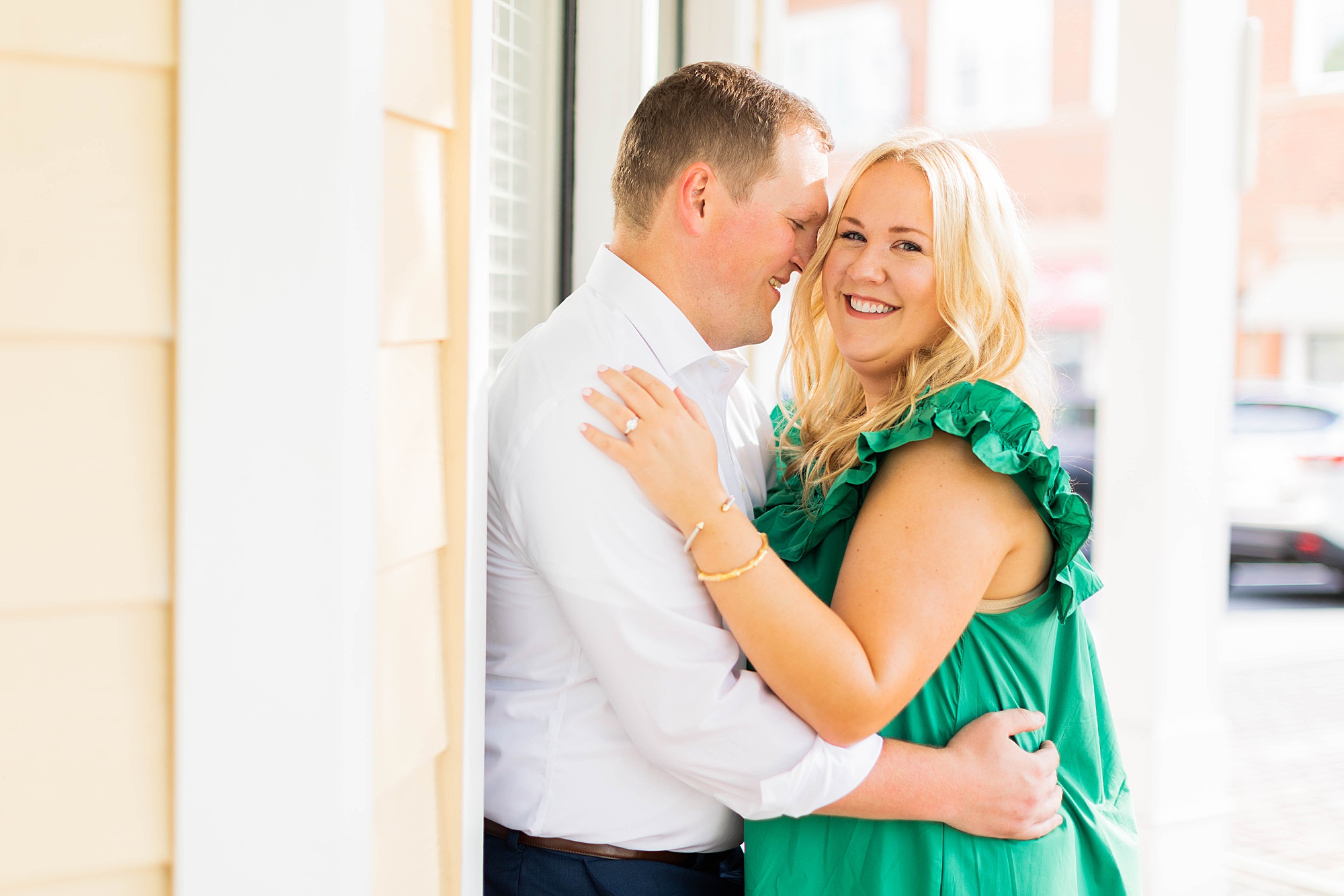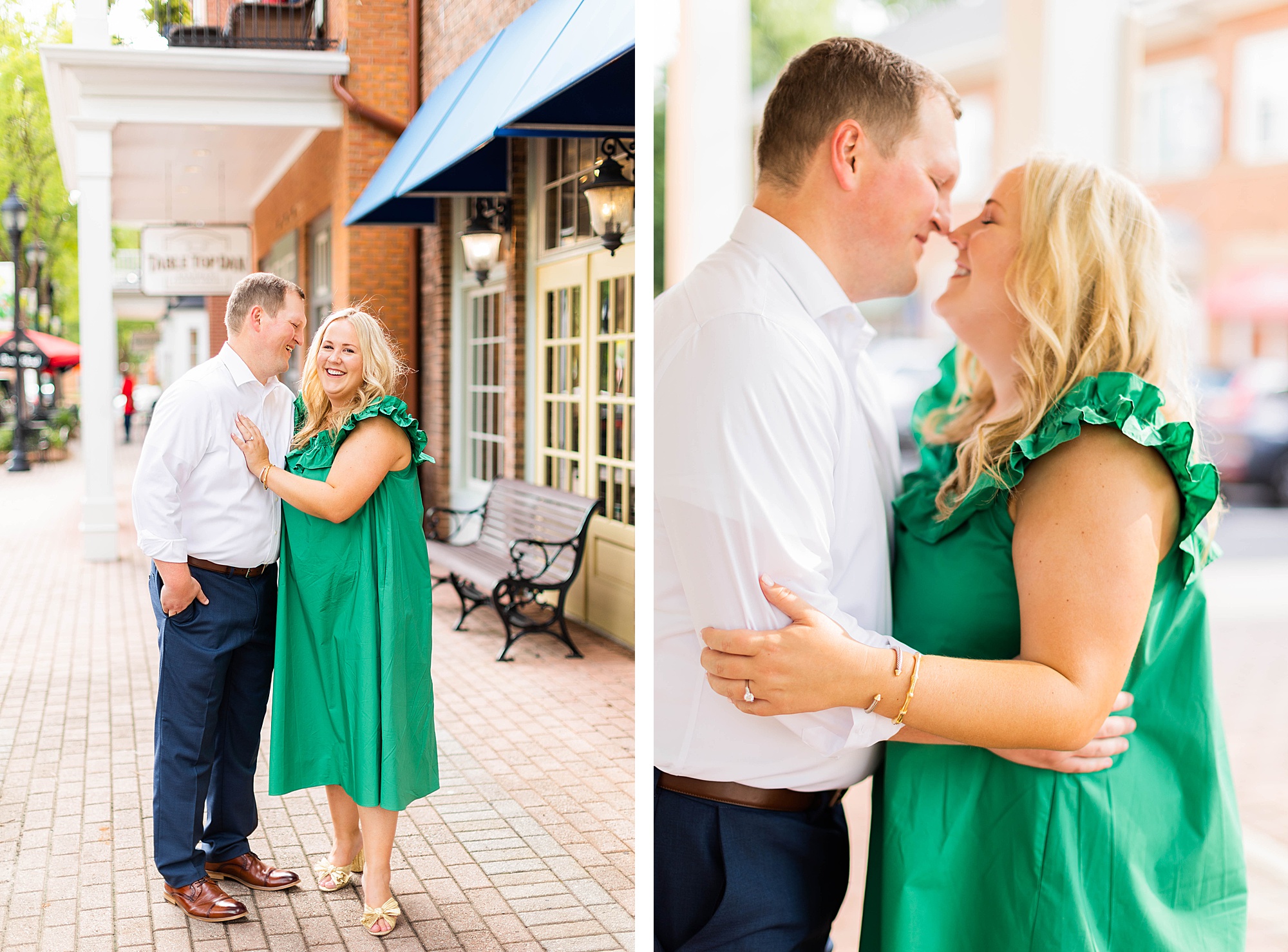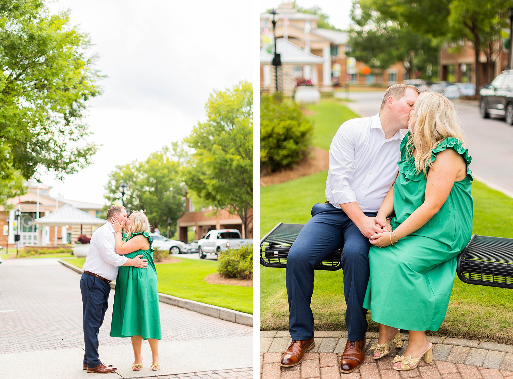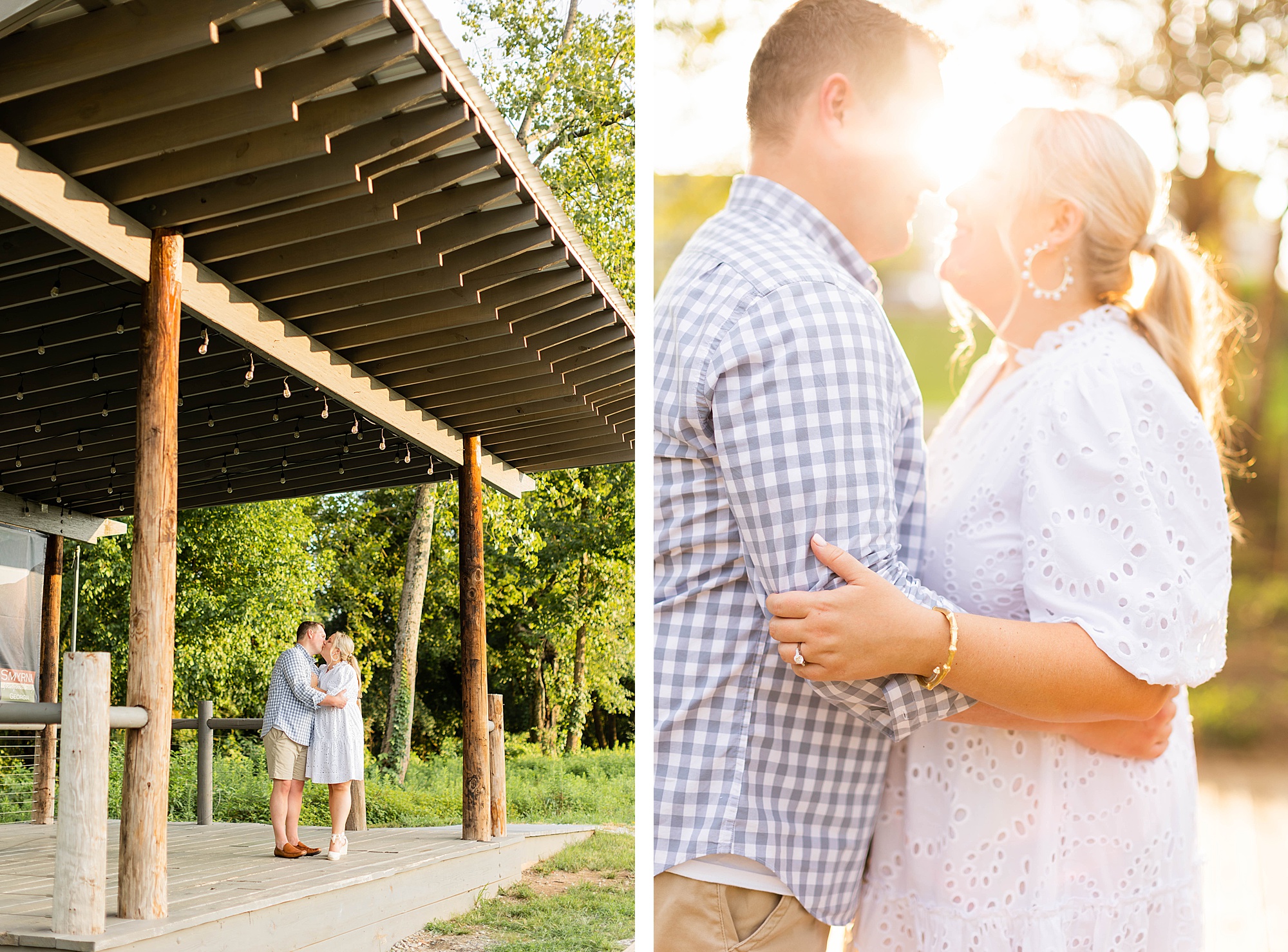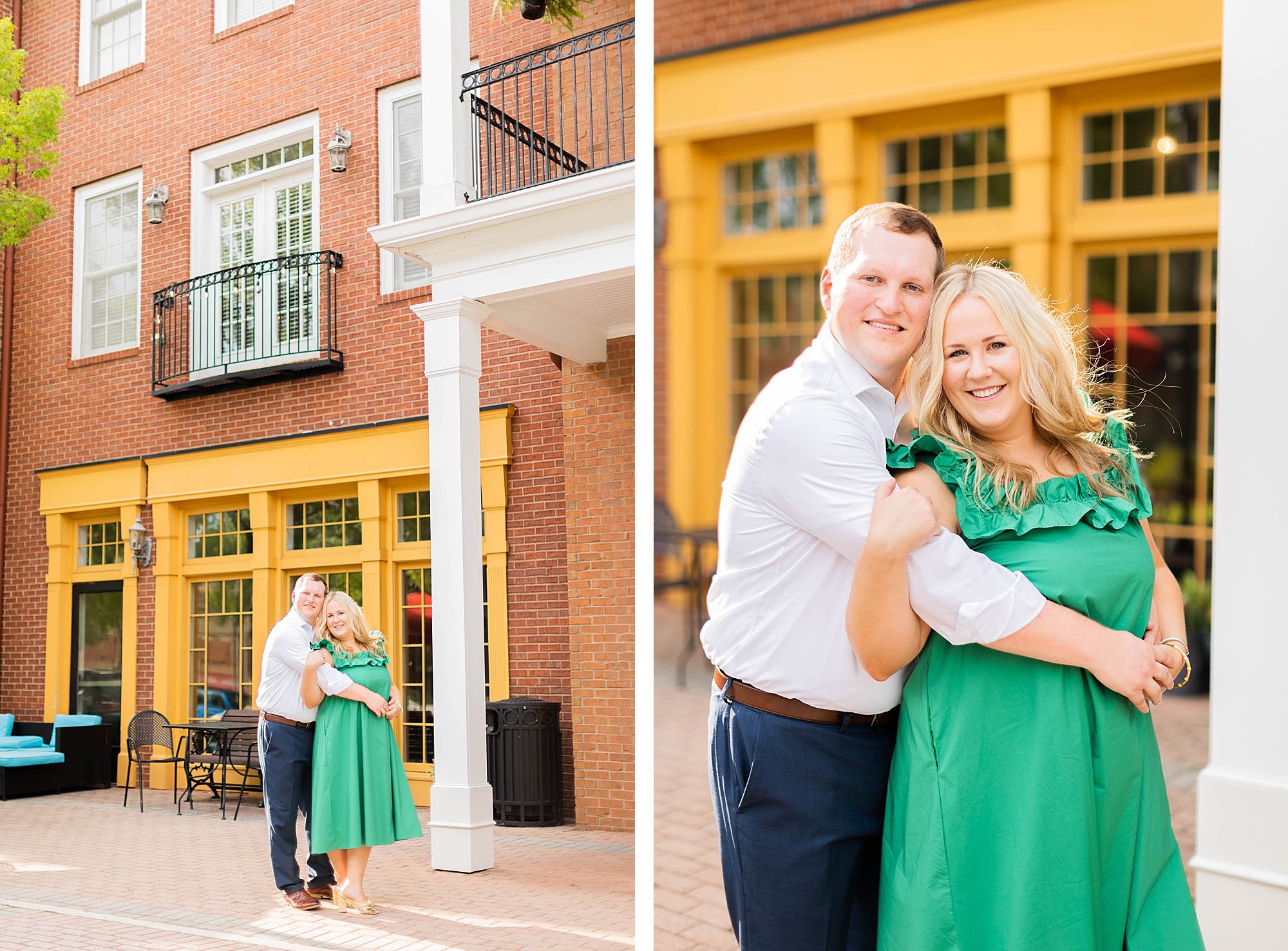 Atkins Park in a suburb of Atlanta is SO COOL and I love that Erin + Mike frequented this spot on their dating journey. We had so much fun dodging cars, walking around and reminiscing on their relationship! It was so hot, but with the help of a rag, some shade and my fan (that unfortunately died five minutes in!!) we made HOTLANTA feel a little cooler.