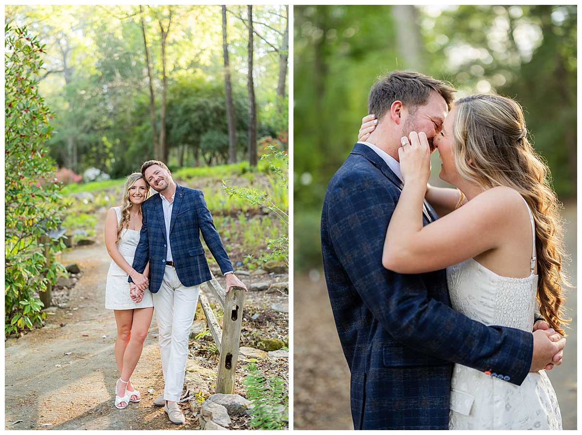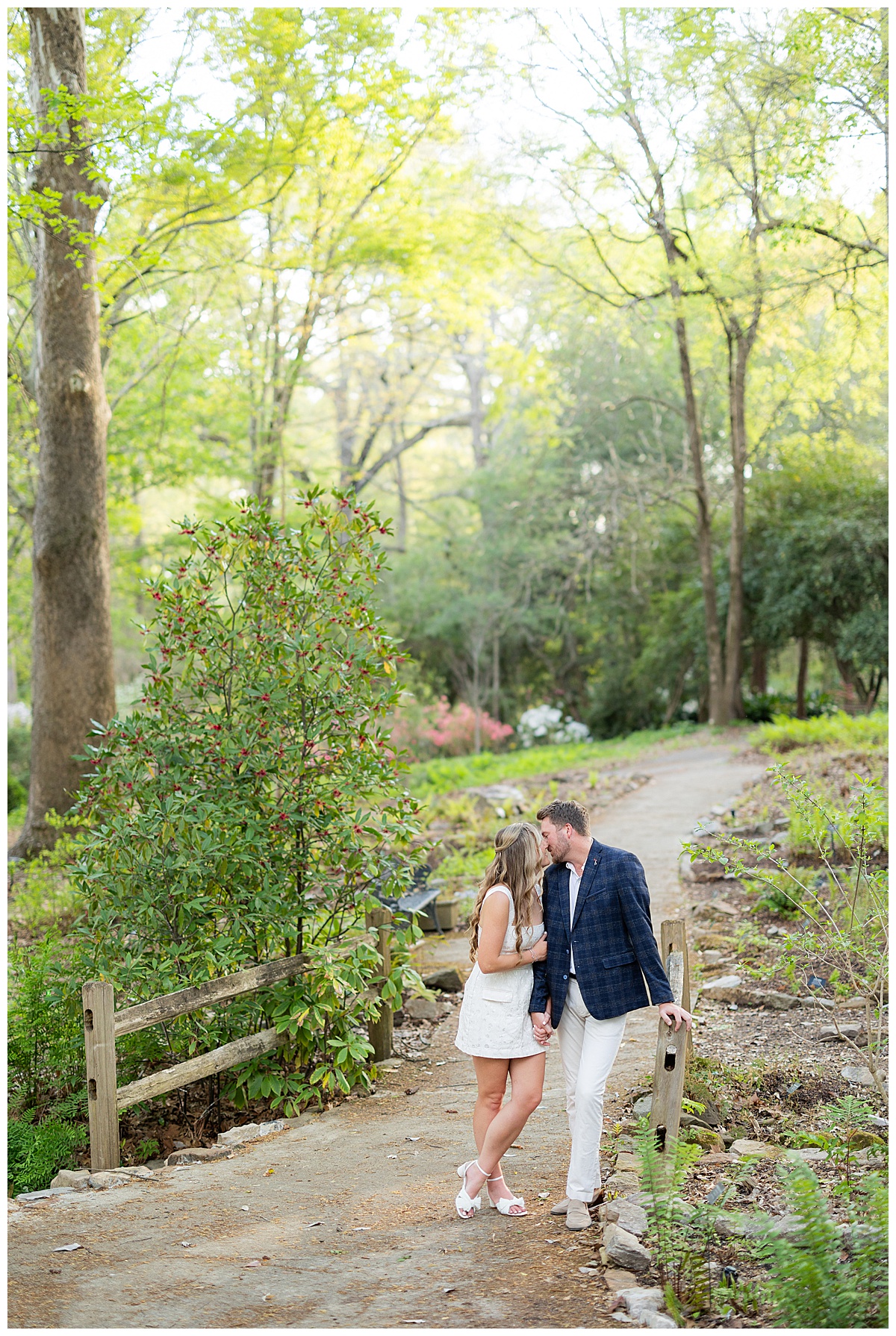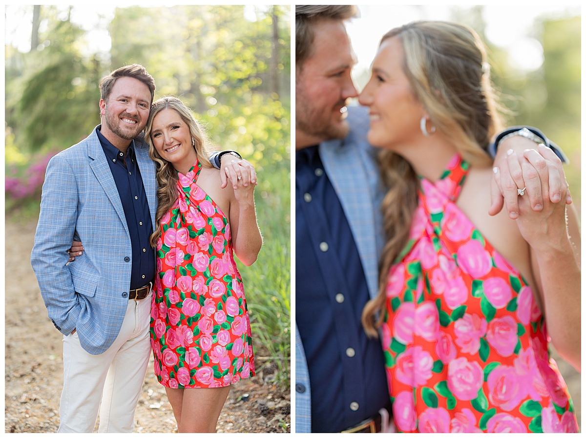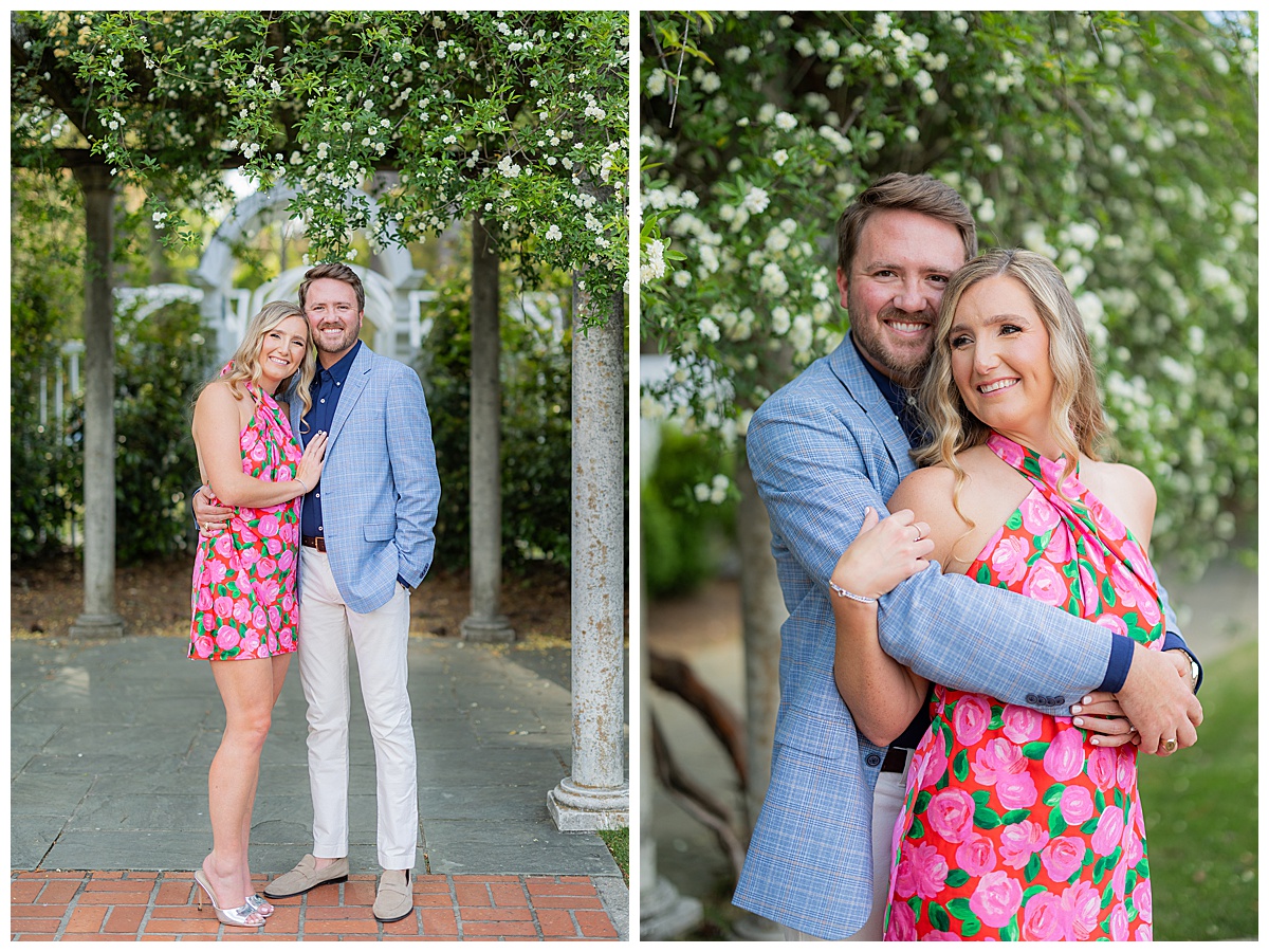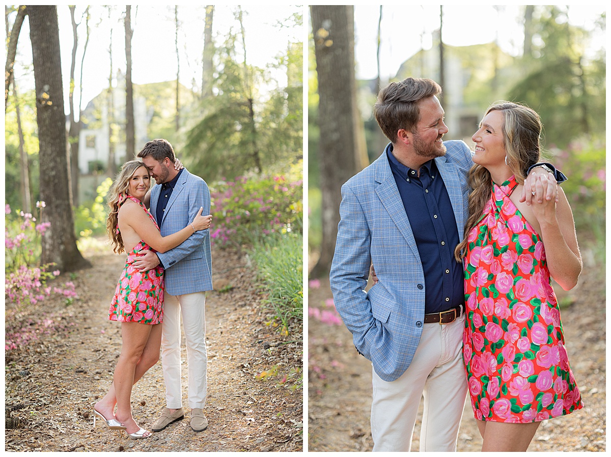 Caroline, Conner and I started our evening engagement session at the Birmingham Botanical Gardens, one of the best places to be this time of year. Everything was in full bloom, the light was soft and golden, and the entire space felt alive with color. It’s one of my favorite spots in town for a reason, and it couldn’t have been a more beautiful setting to kick off their session.