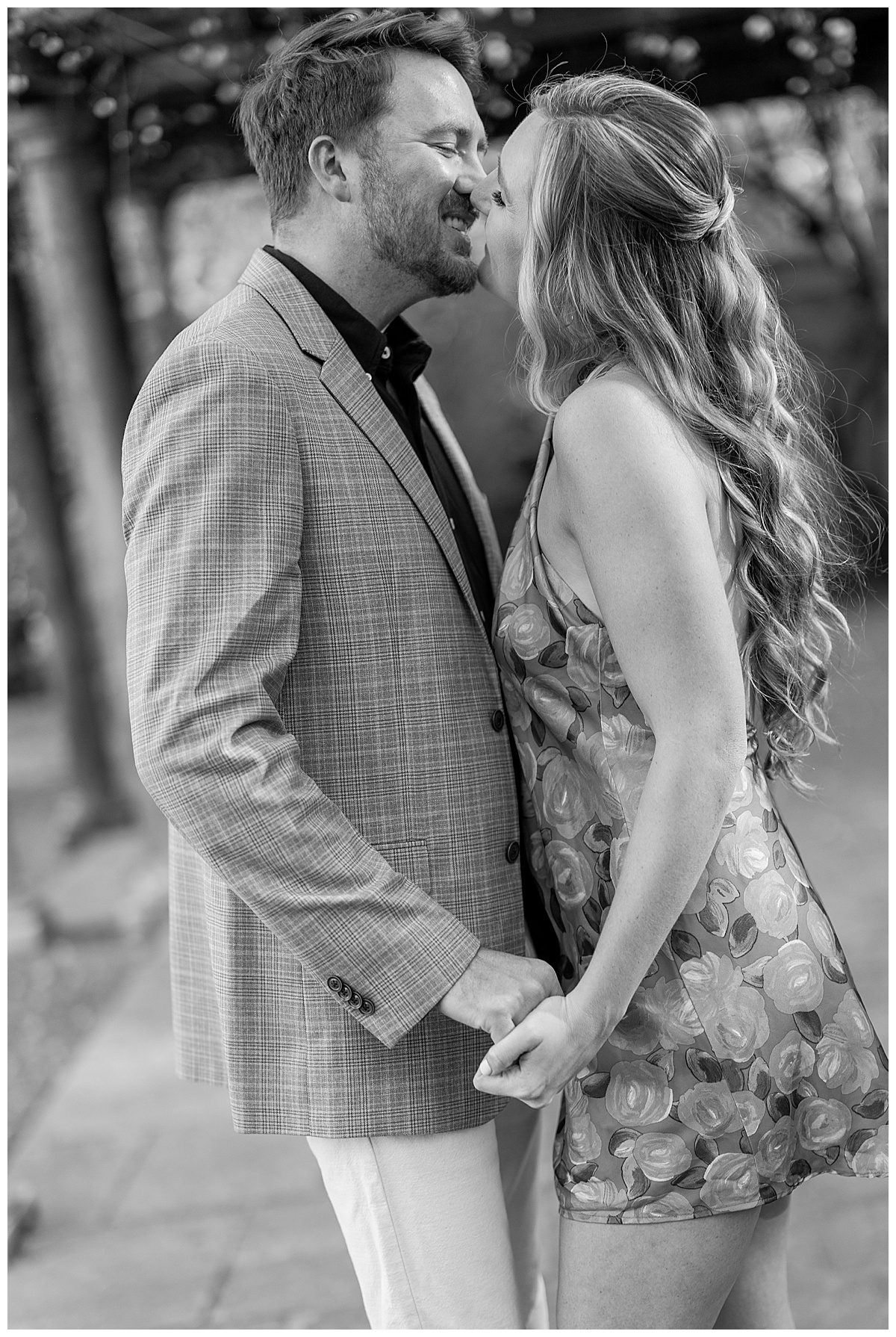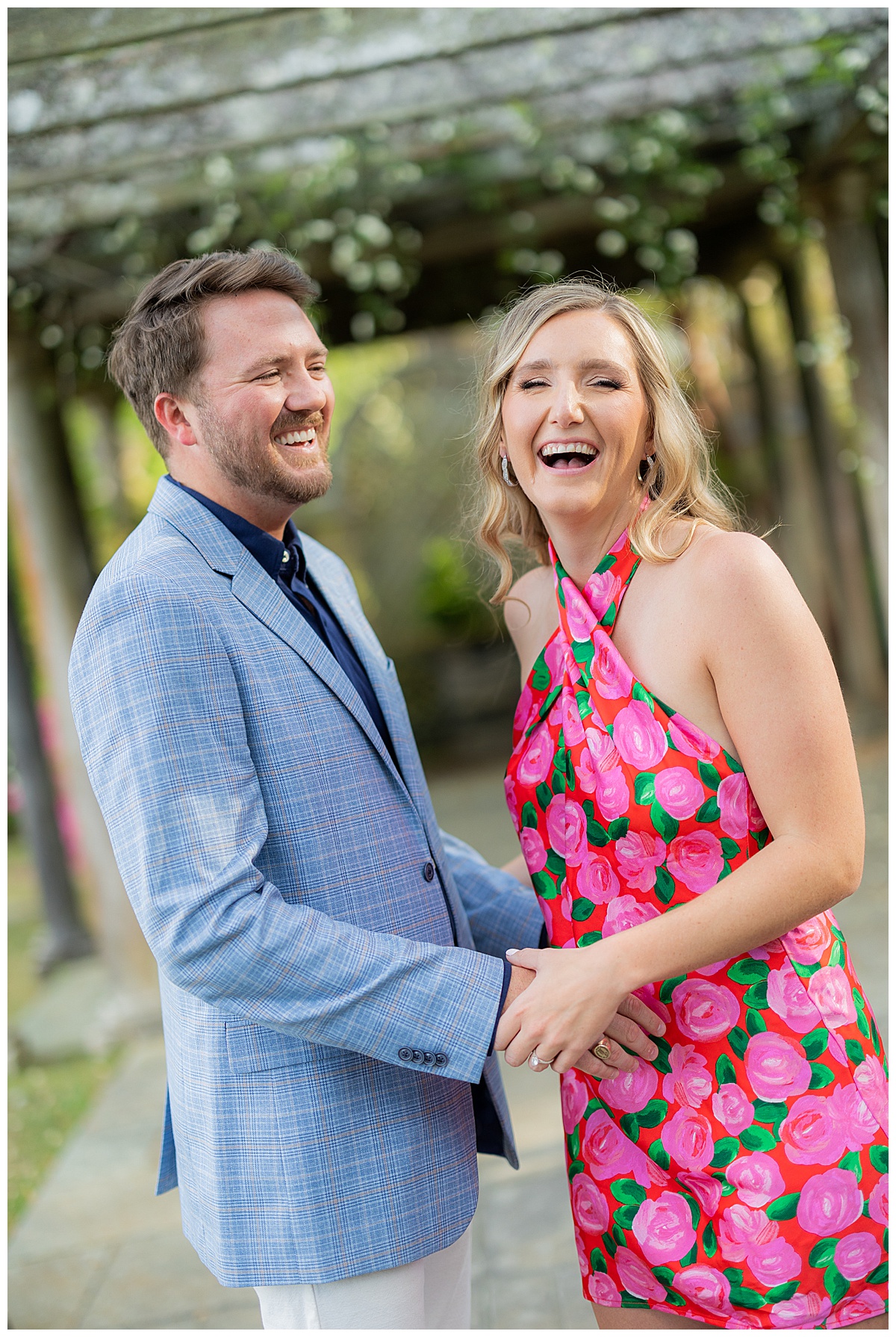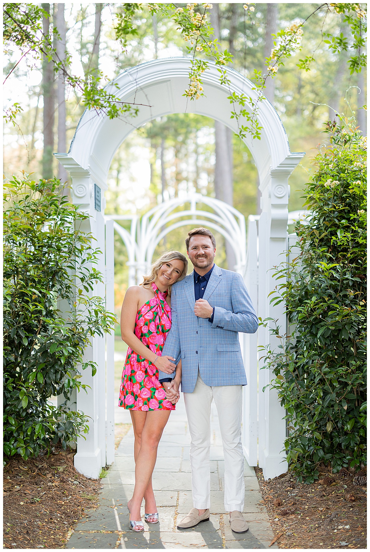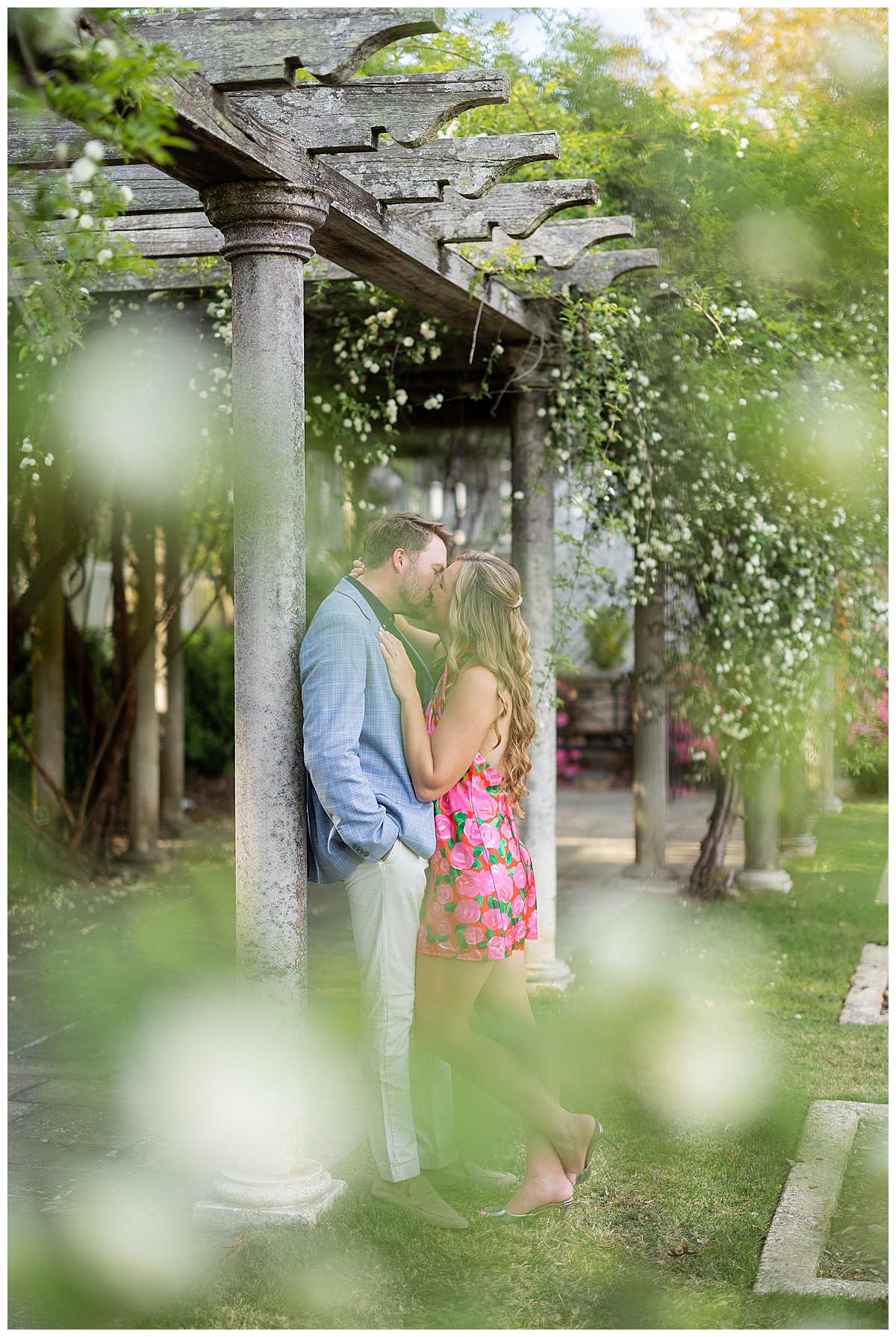 Caroline, Conner and I started our evening engagement session at the Birmingham Botanical Gardens, one of the best places to be this time of year. Everything was in full bloom, the light was soft and golden, and the entire space felt alive with color. It’s one of my favorite spots in town for a reason, and it couldn’t have been a more beautiful setting to kick off their session.