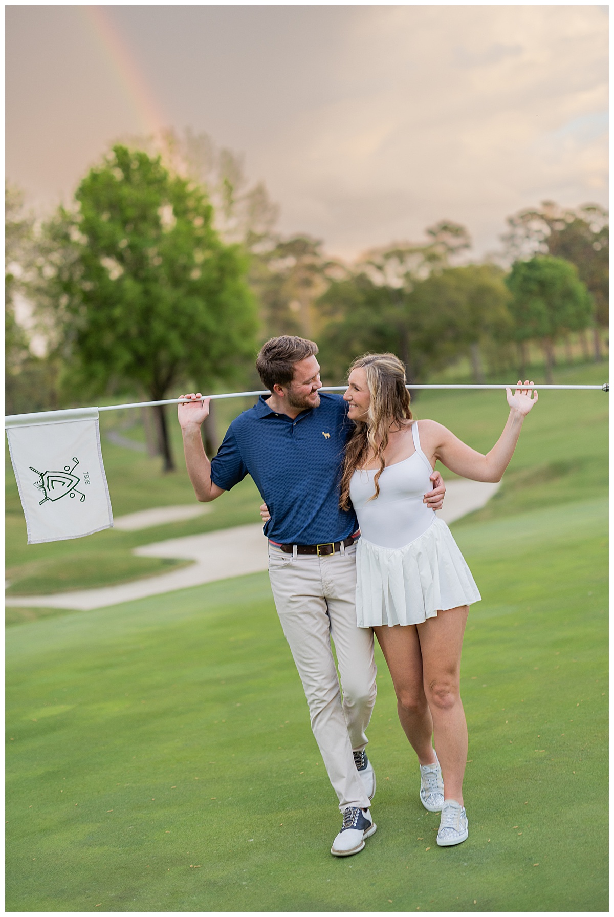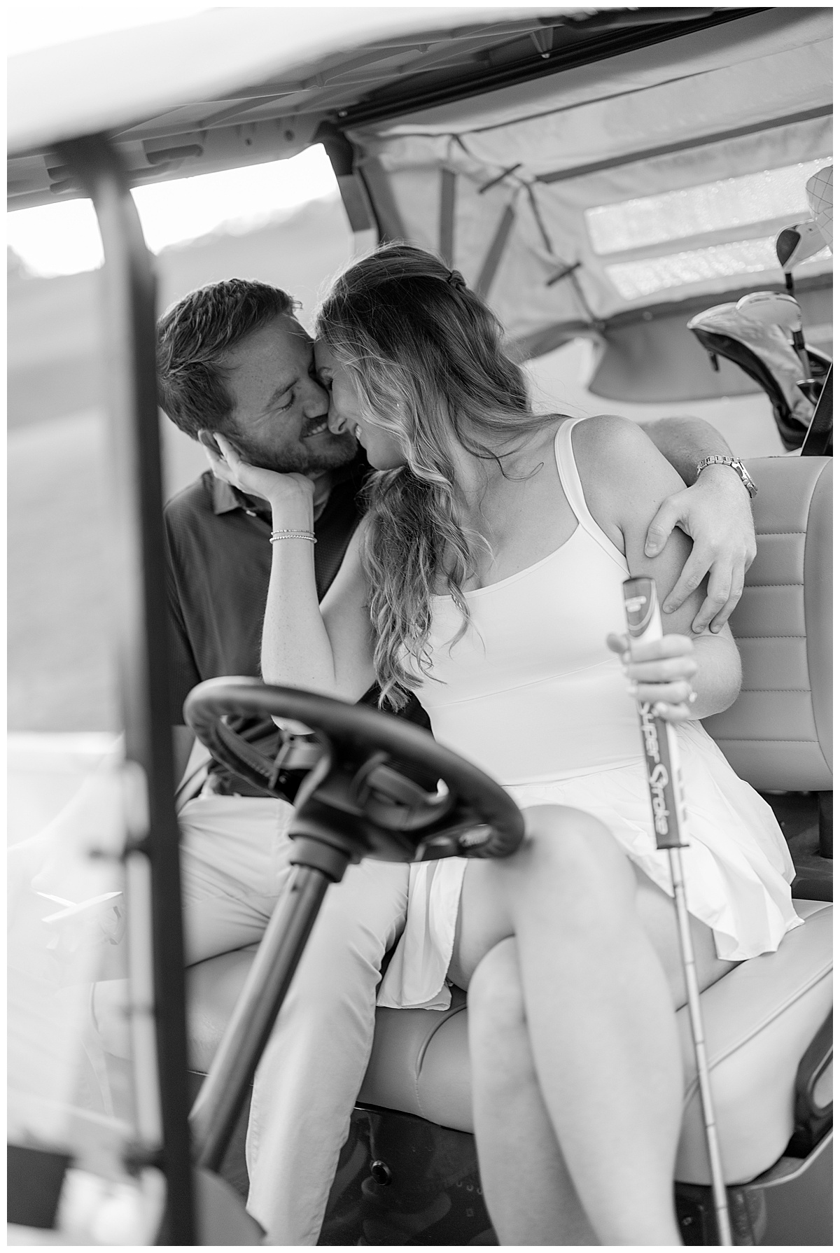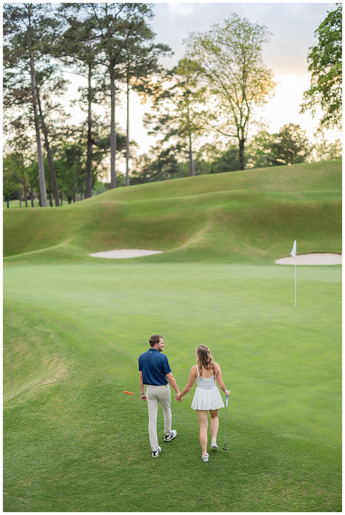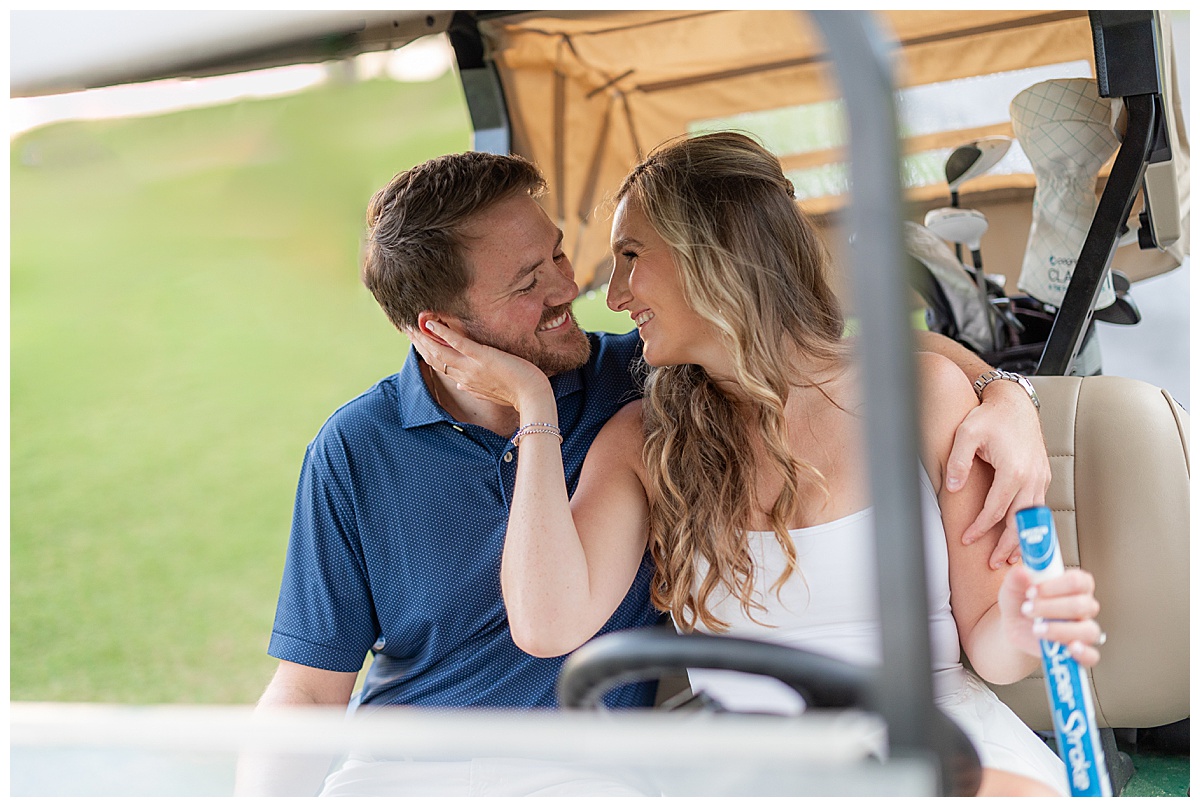 From there, the evening turned absolutely magical. The greens were fresh, the air was breezy, and Caroline and Conner fully leaned into it. Being avid golfers, they came prepared, and it showed. Every frame felt like such a natural extension of who they are together!
