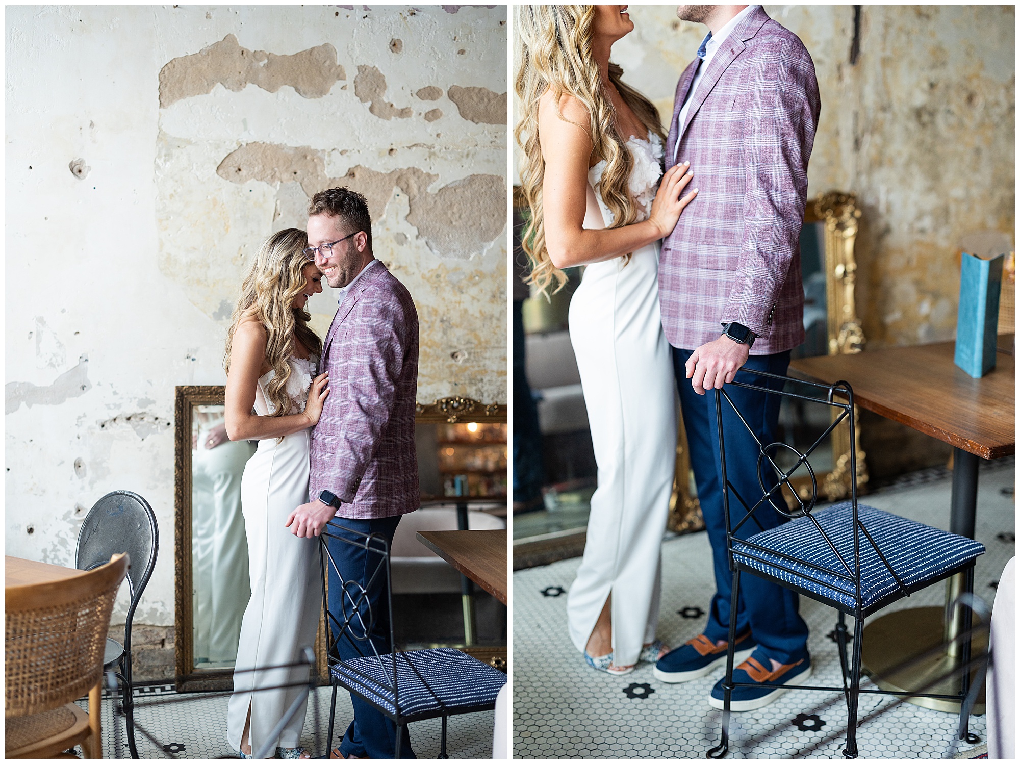 Catherine and Will arrived dressed to the nines, and we began our time together with a private shoot at Juniper! If you haven’t had a chance to experience Juniper’s eclectic decor, moody vibes and tasty offerings, you’ll need to put it on your Birmingham Bucket List asap.