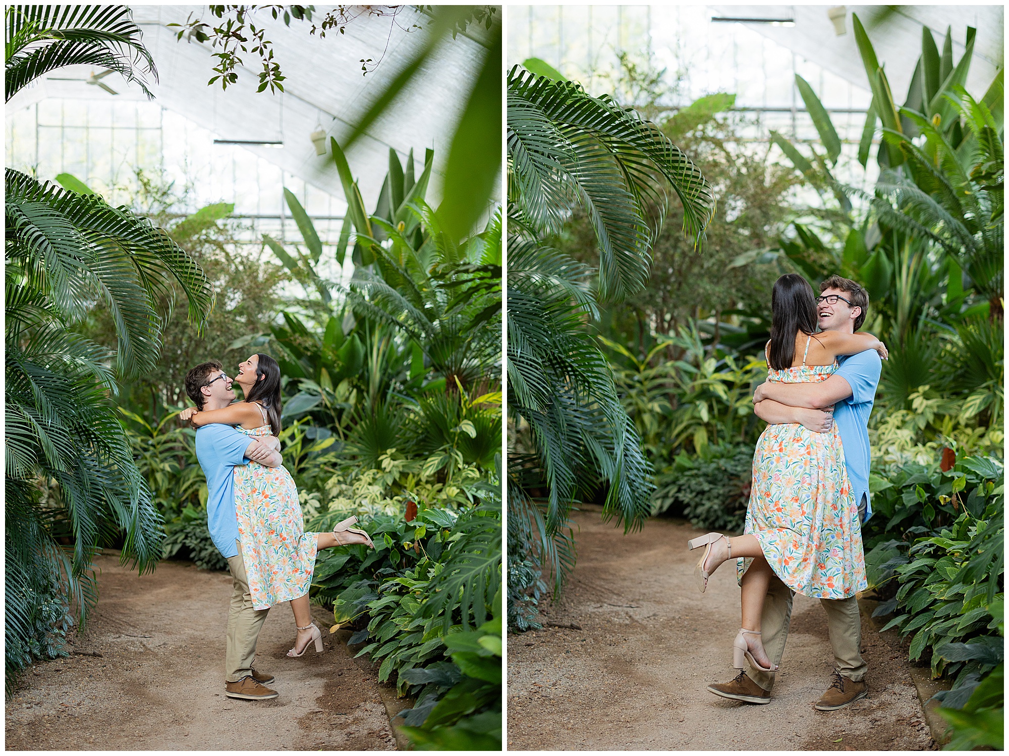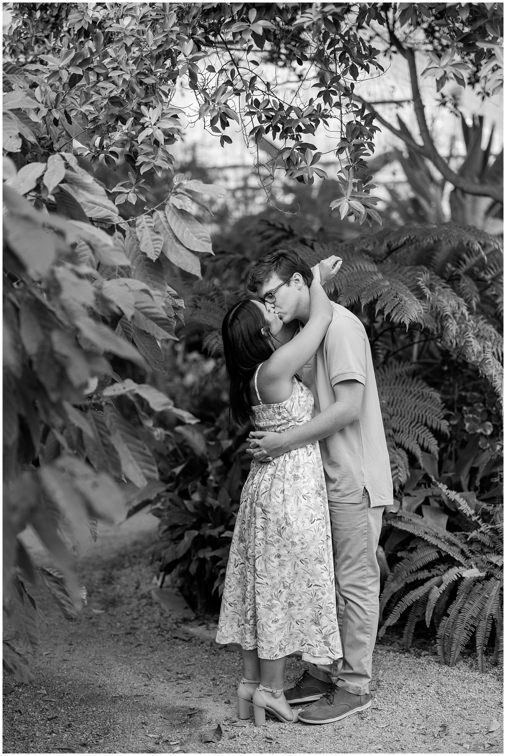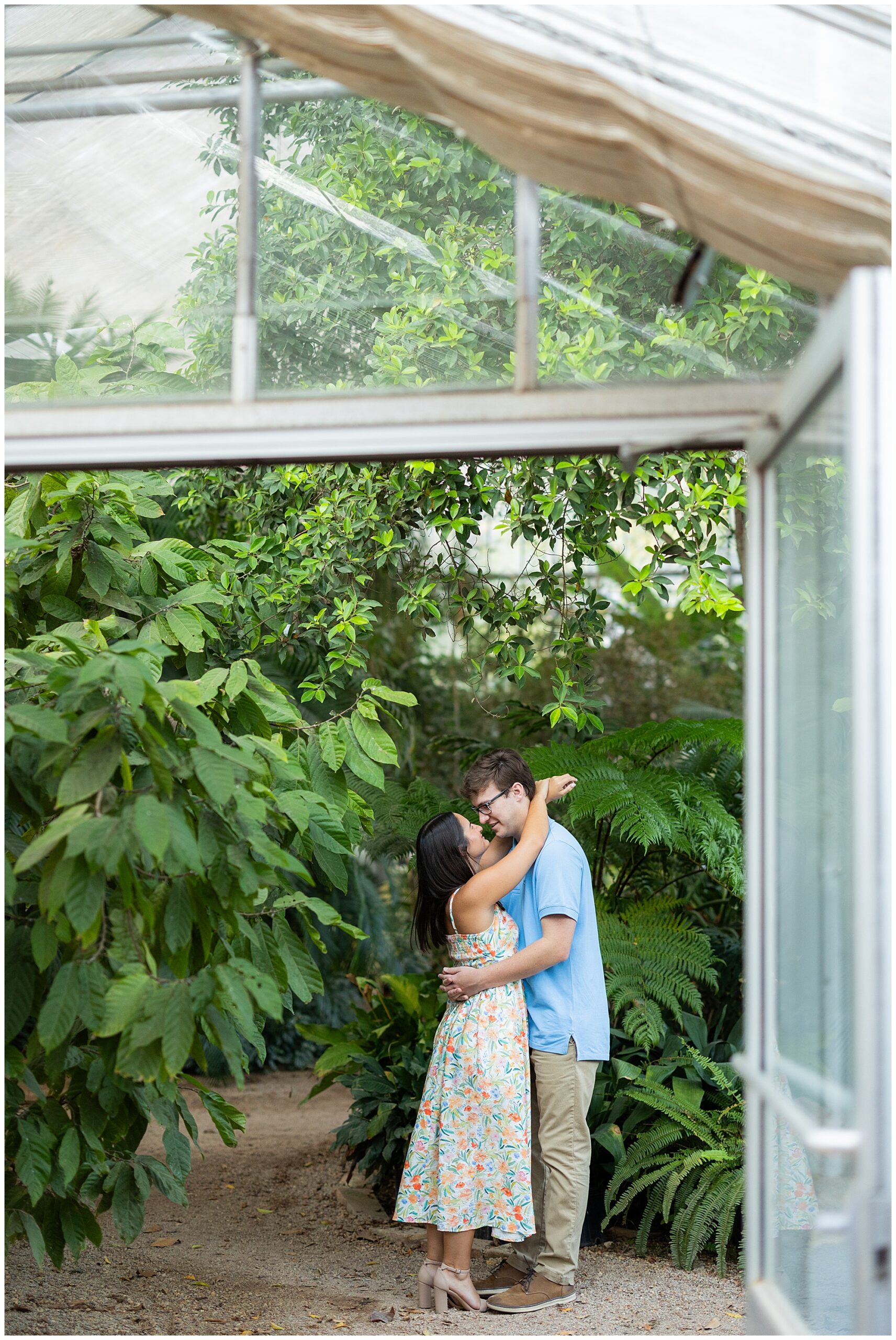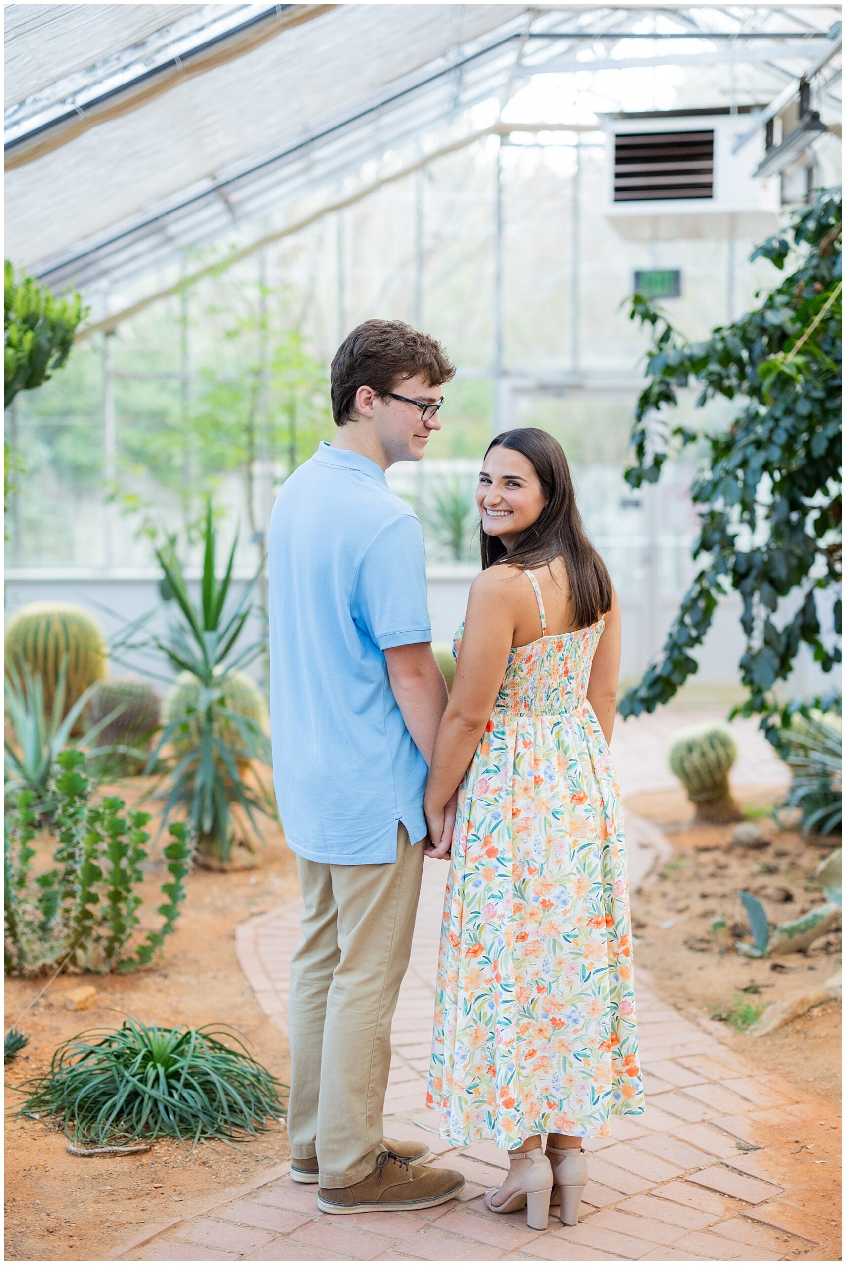 Our next stop was the Birmingham Botanical Gardens! The greenhouse is lush and green alllll year long, so it’s always the perfect spot to find some summer foliage even in the fall and winter. While we explored, I got to hear more about Emma and Patrick’s lives and learn just how perfect they are for each other. These two have been together since high school, and it’s obvious that they are each other’s best friend!