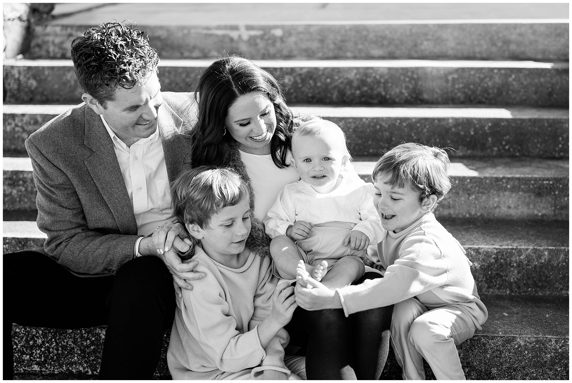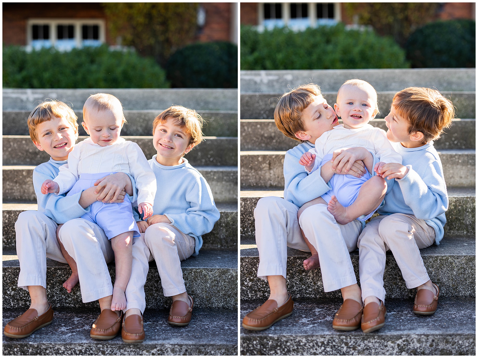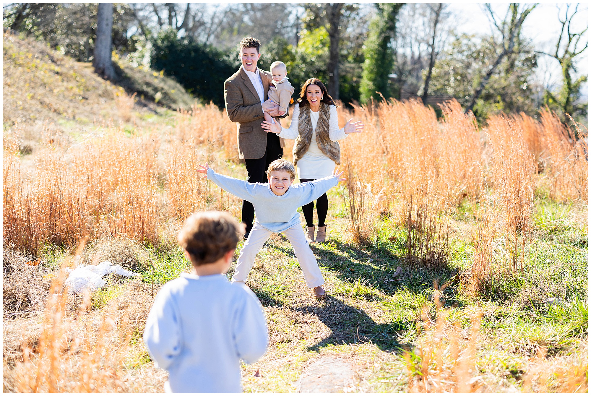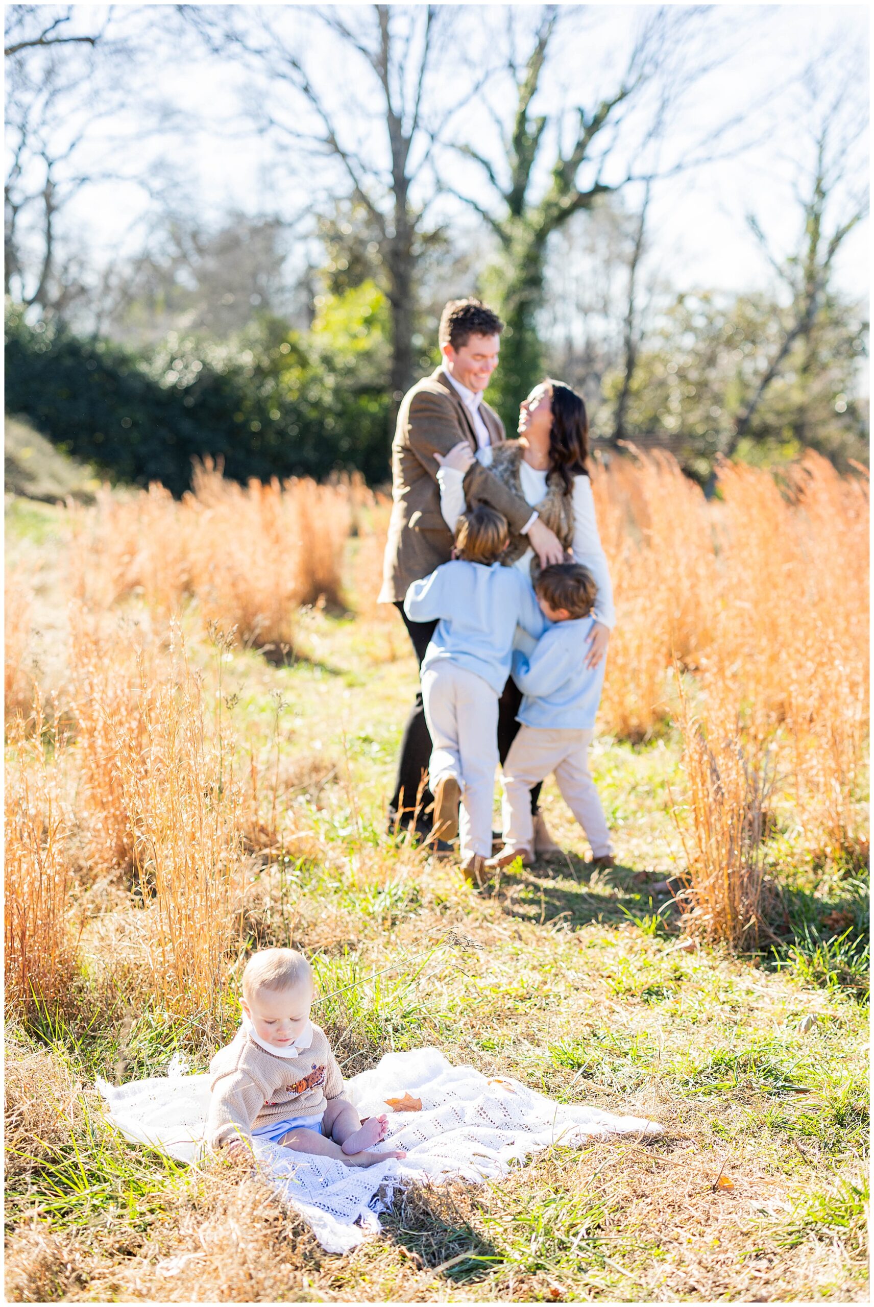 The Franklin family and I recently embarked on a chilly but charming photo session in the heart of Mountain Brook. Everett, Tatum, and James, the three adorable Franklin brothers, arrived in the coziest blue sweaters, proving that style and warmth can go hand in hand. Armed with enthusiasm, blankets and my camera, we quickly turned a freezing day into a warm and cherished memory!