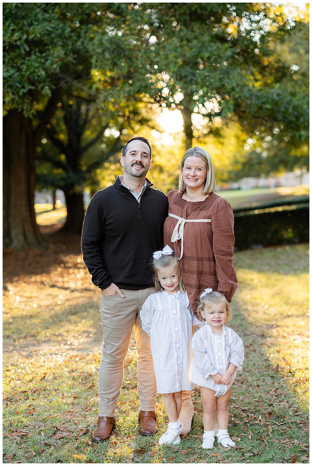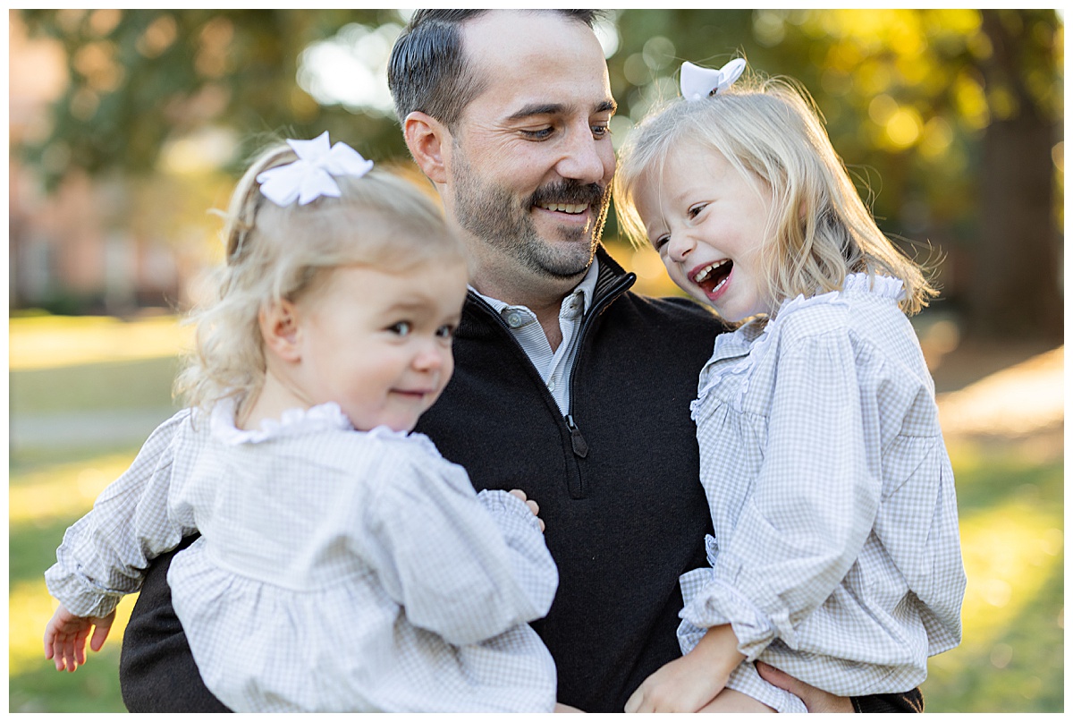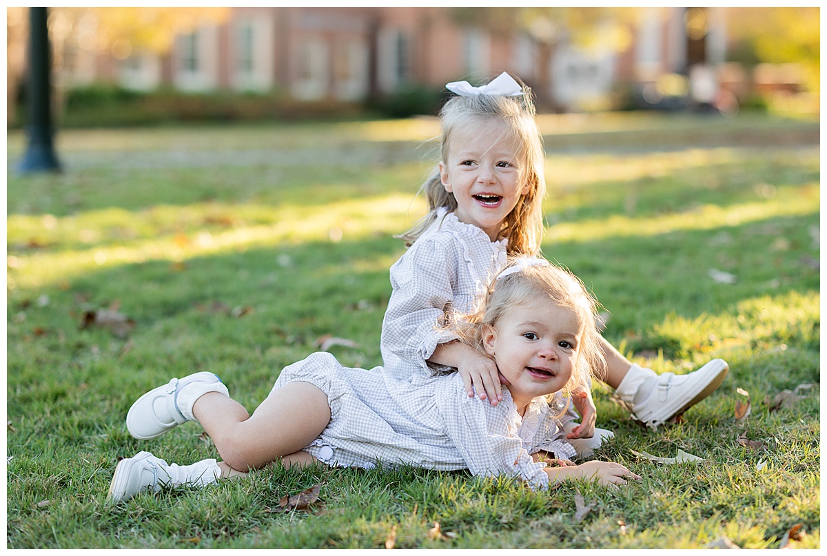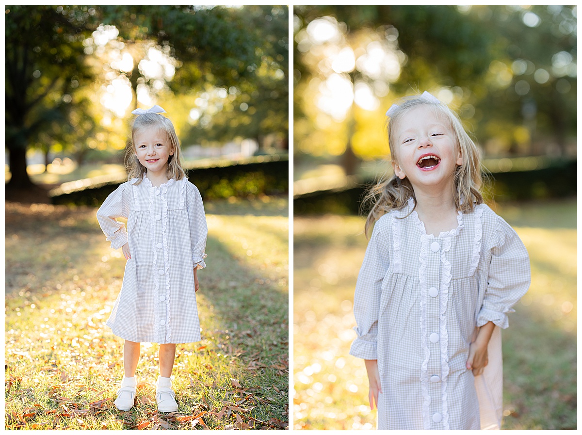 Once they got comfortable, it was game on with giggles, twirls, and the best kind of chaos! The whole family wore autumn-inspired outfits, with the two girls in most adorable matching gingham outfits! I love how easygoing this family is. They truly enjoy being together, and it always shows in their photos.