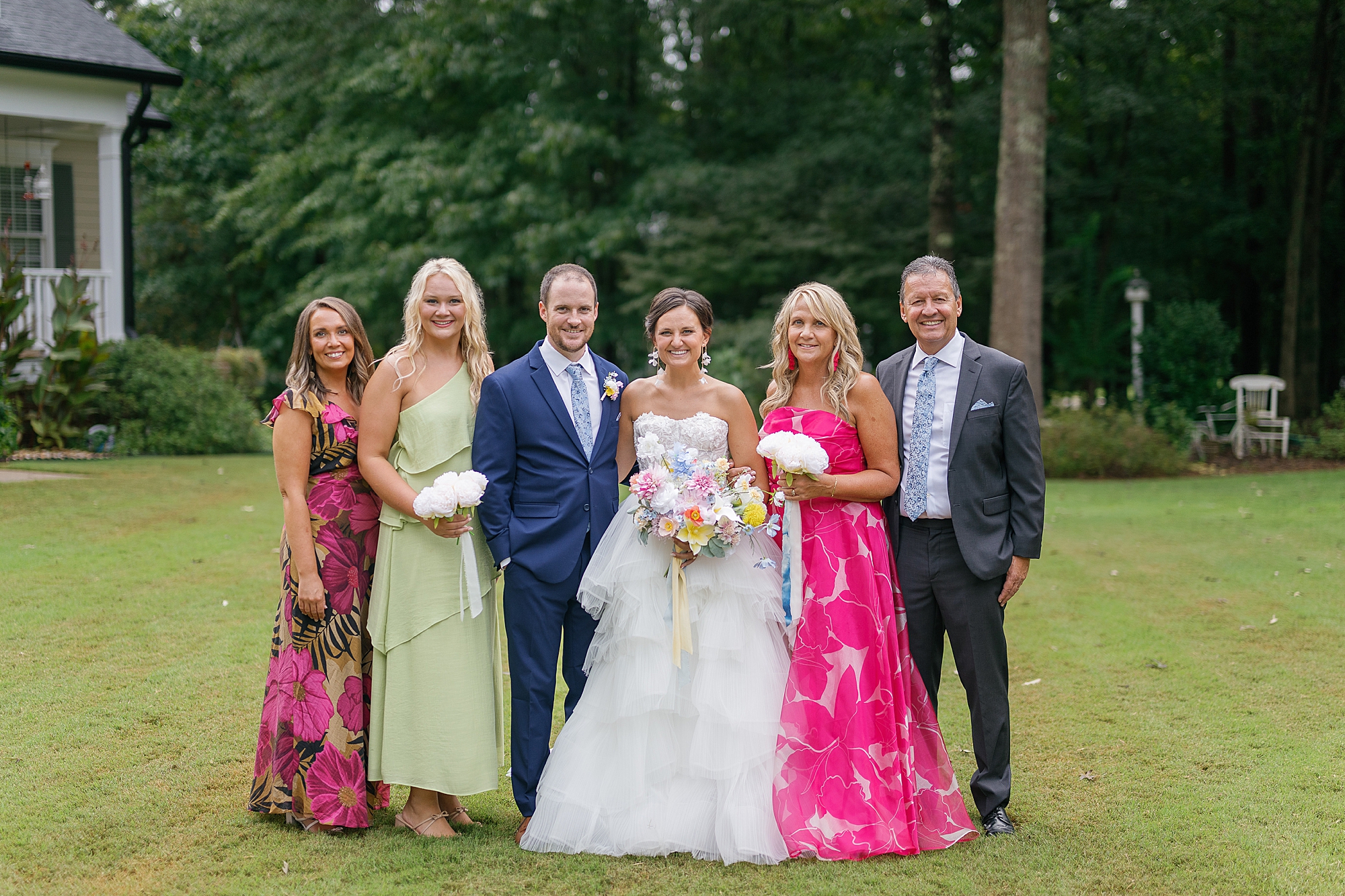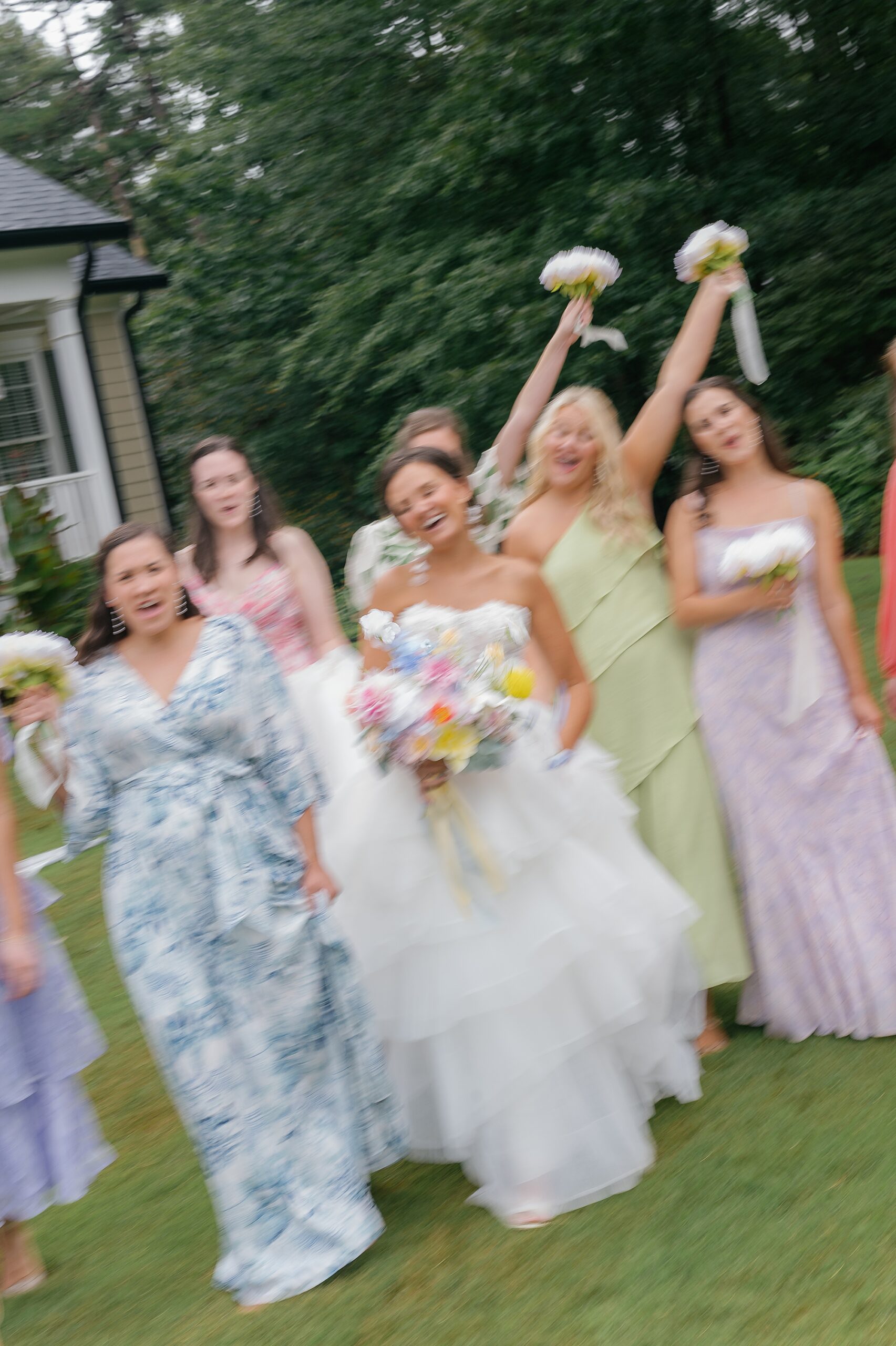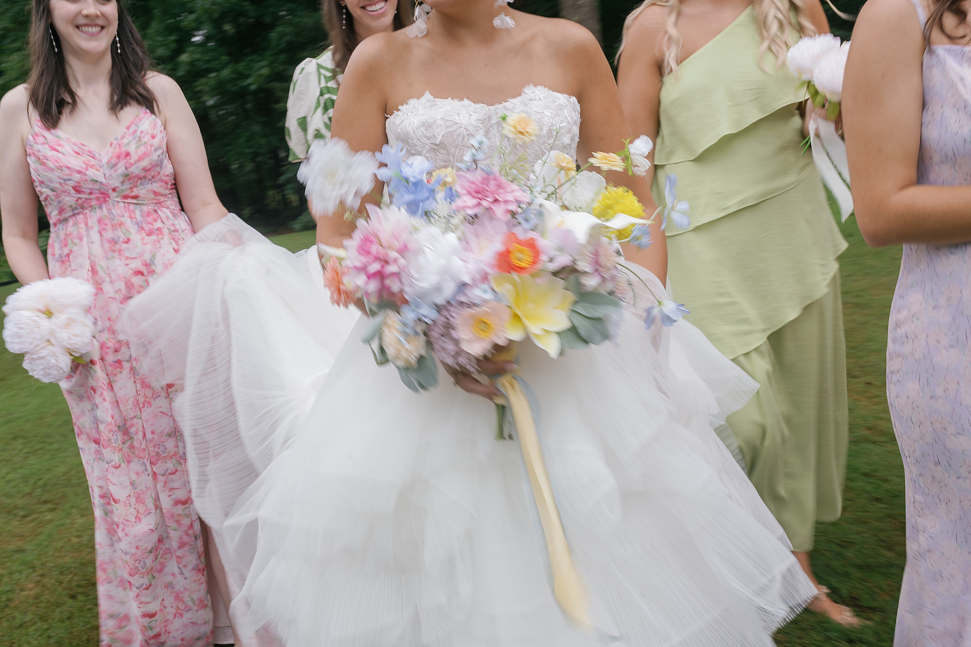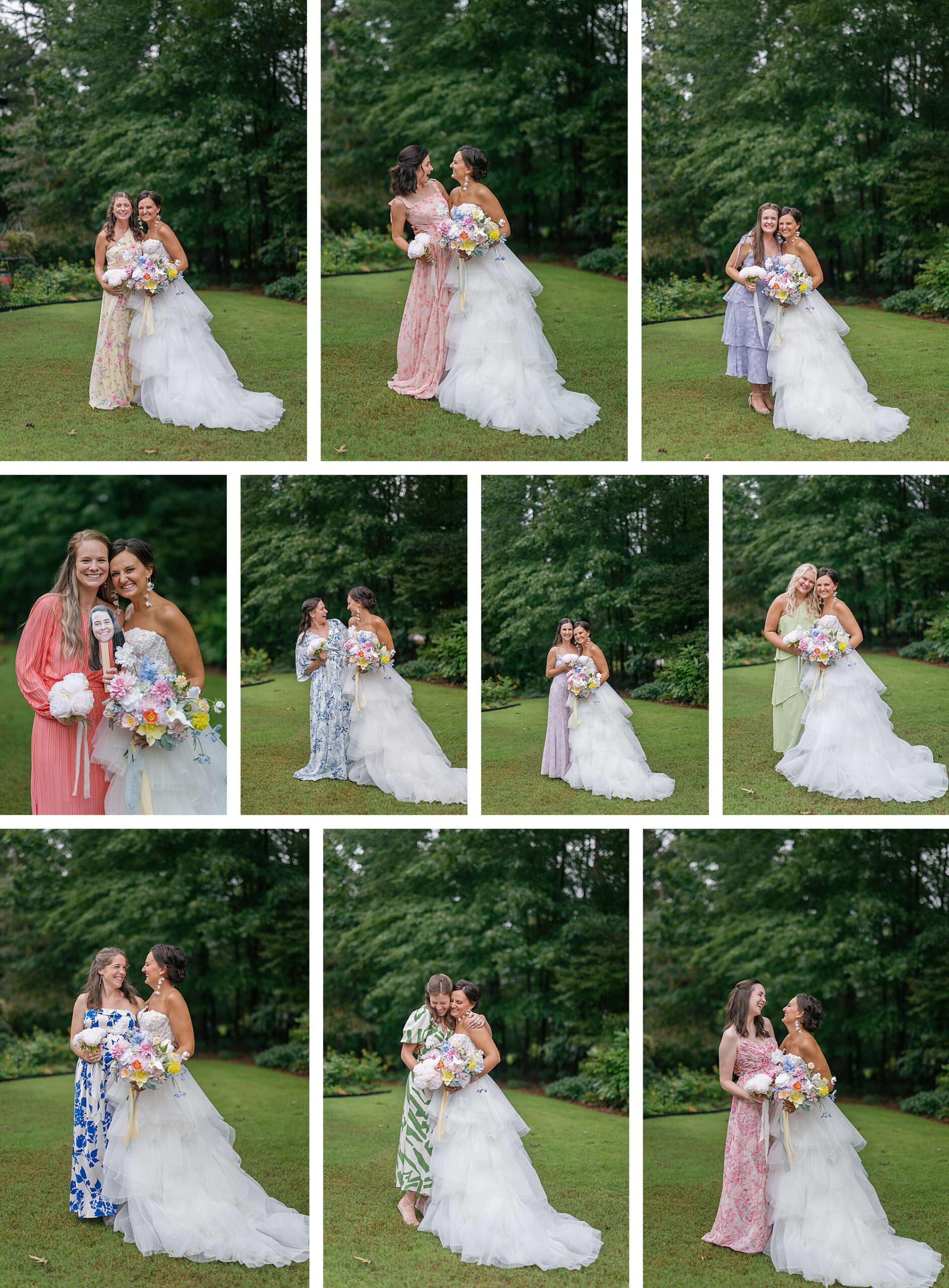 Because many of my friends are in varied life stages, I let them have a calm morning to themselves and arrive fully dressed and ready for photos! It was fun seeing everyone in their colourful dresses, and the sun even made its appearance! Both of our families had arrived by that point, too, and it was so crazy watching everyone congregate in my parents’ home and yard. I could’ve never imagined it even if I tried!
