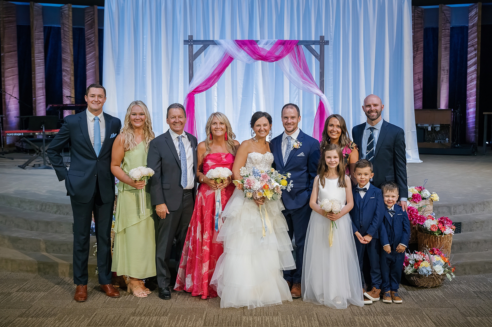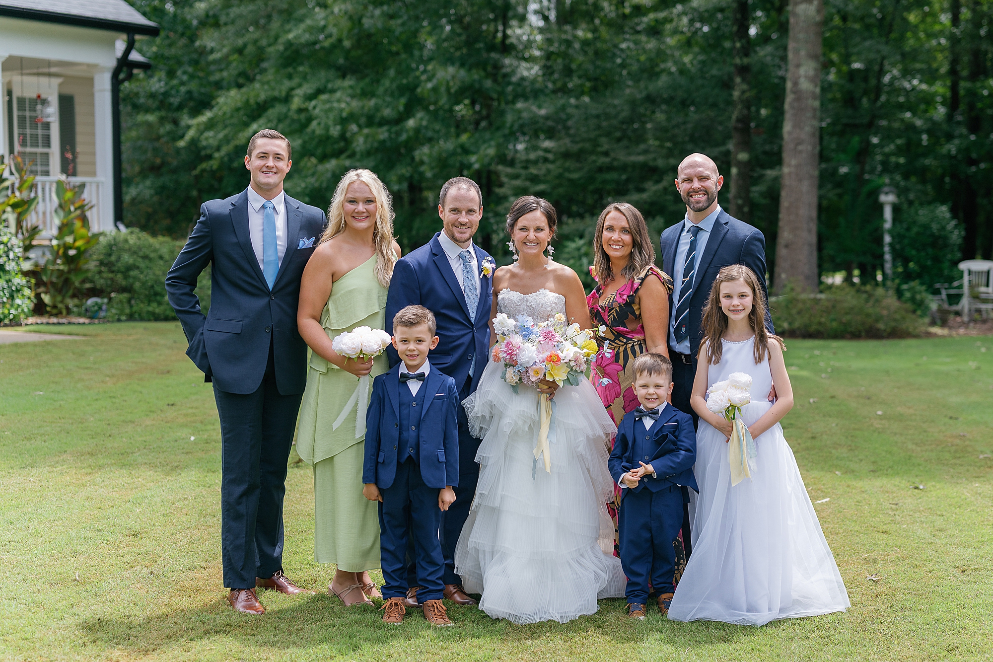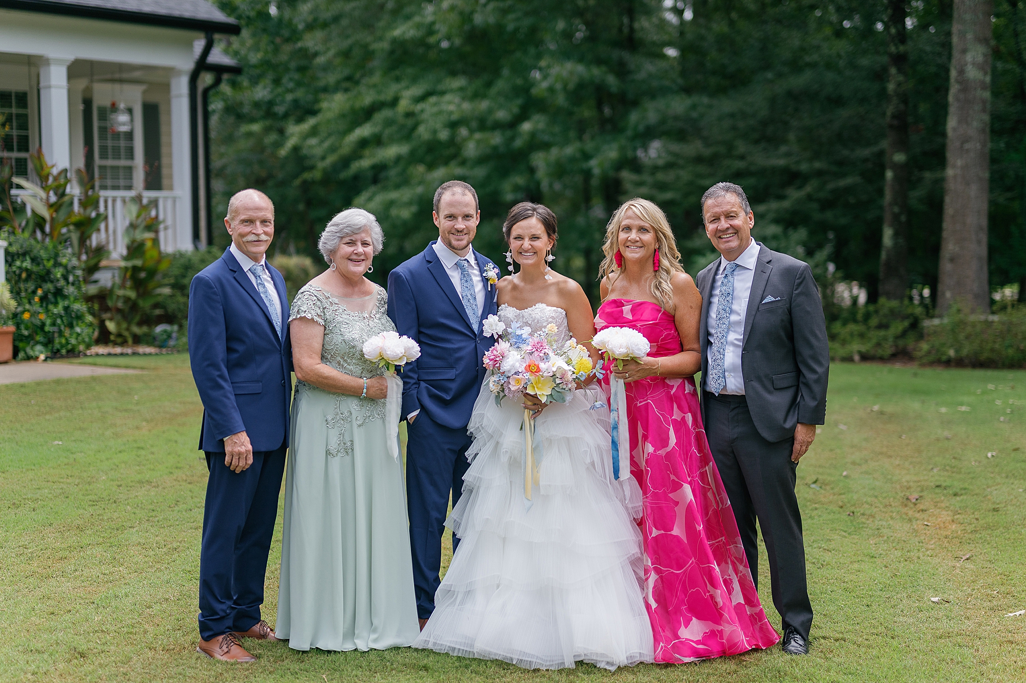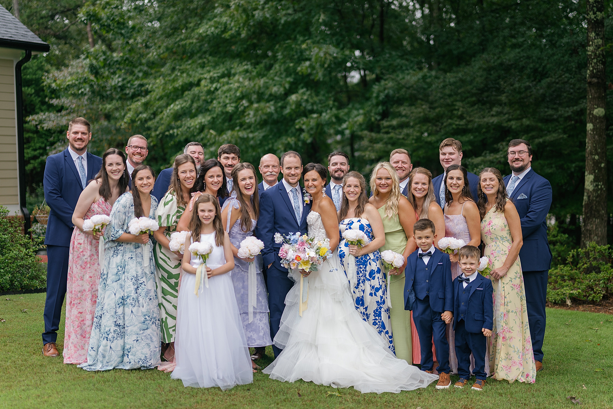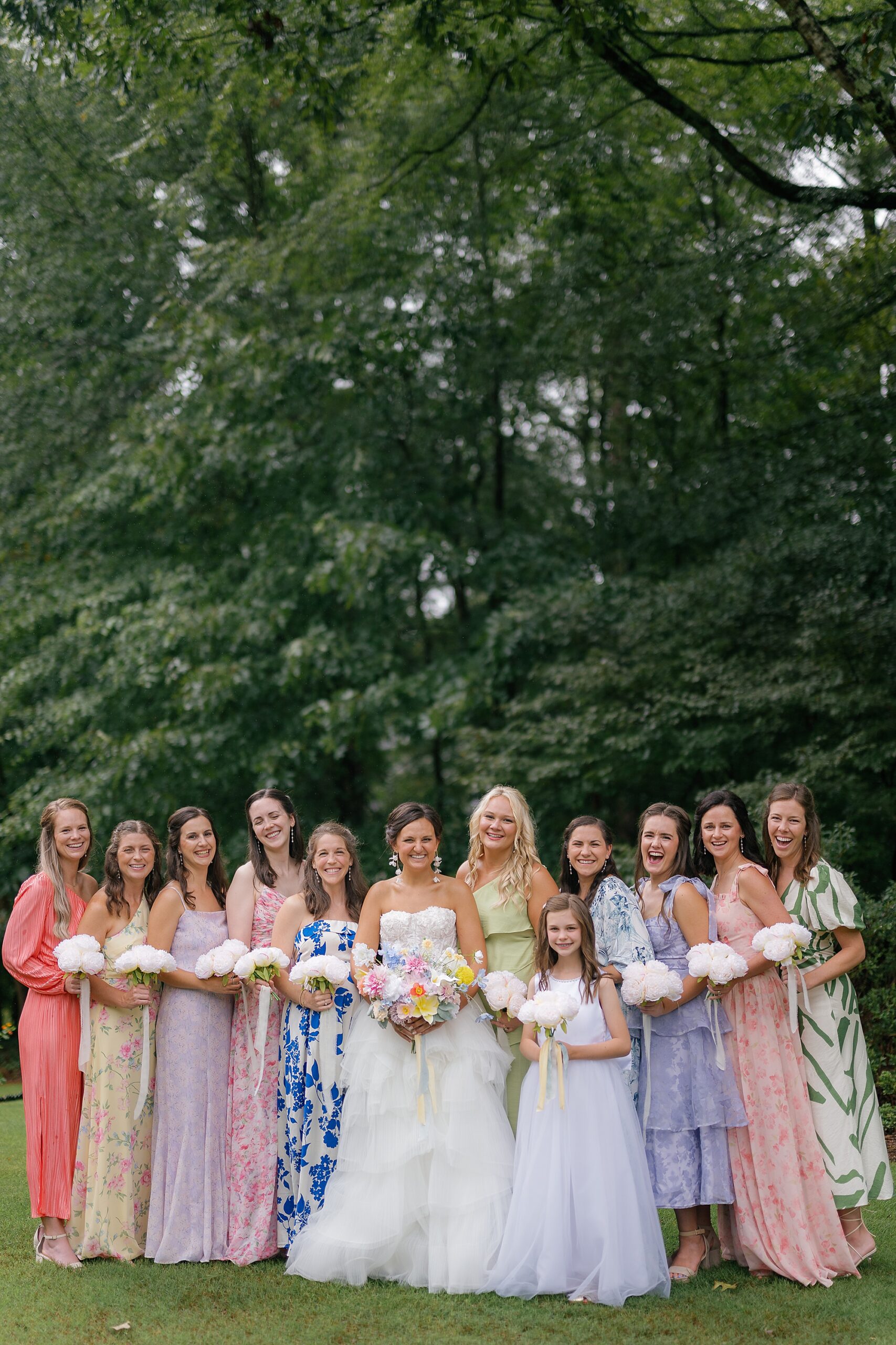 Because many of my friends are in varied life stages, I let them have a calm morning to themselves and arrive fully dressed and ready for photos! It was fun seeing everyone in their colourful dresses, and the sun even made its appearance! Both of our families had arrived by that point, too, and it was so crazy watching everyone congregate in my parents’ home and yard. I could’ve never imagined it even if I tried!