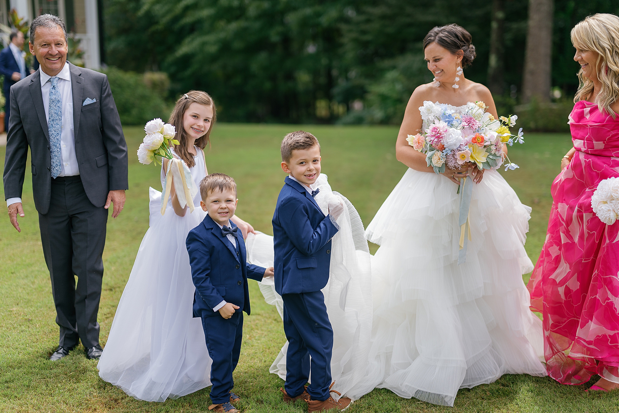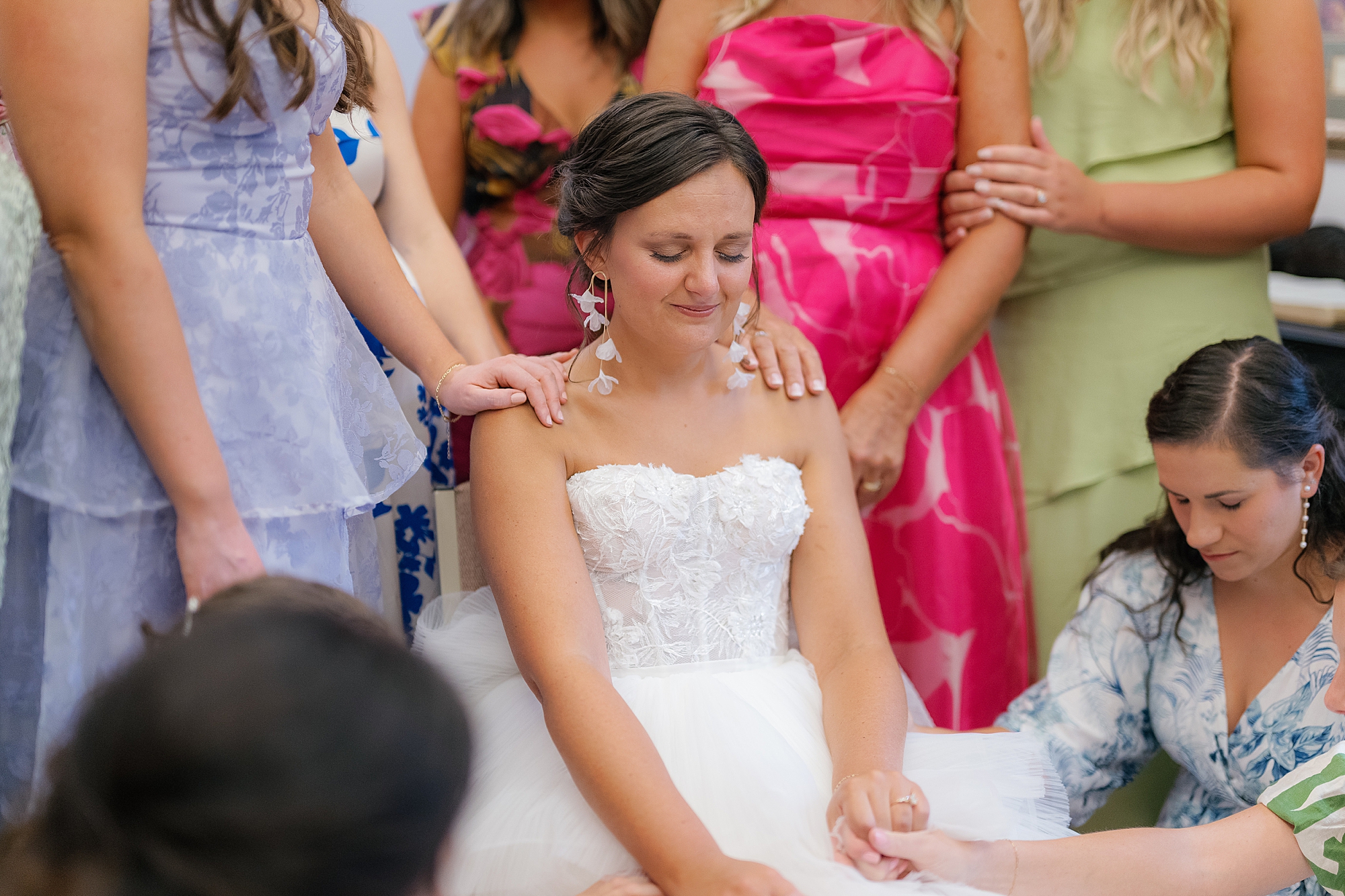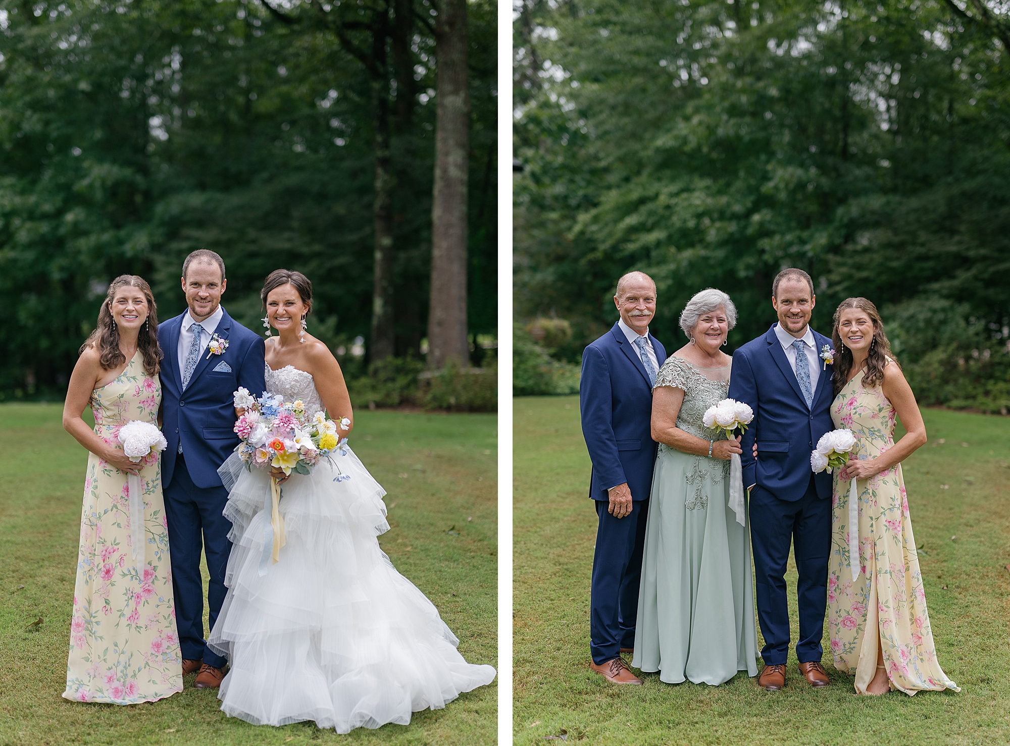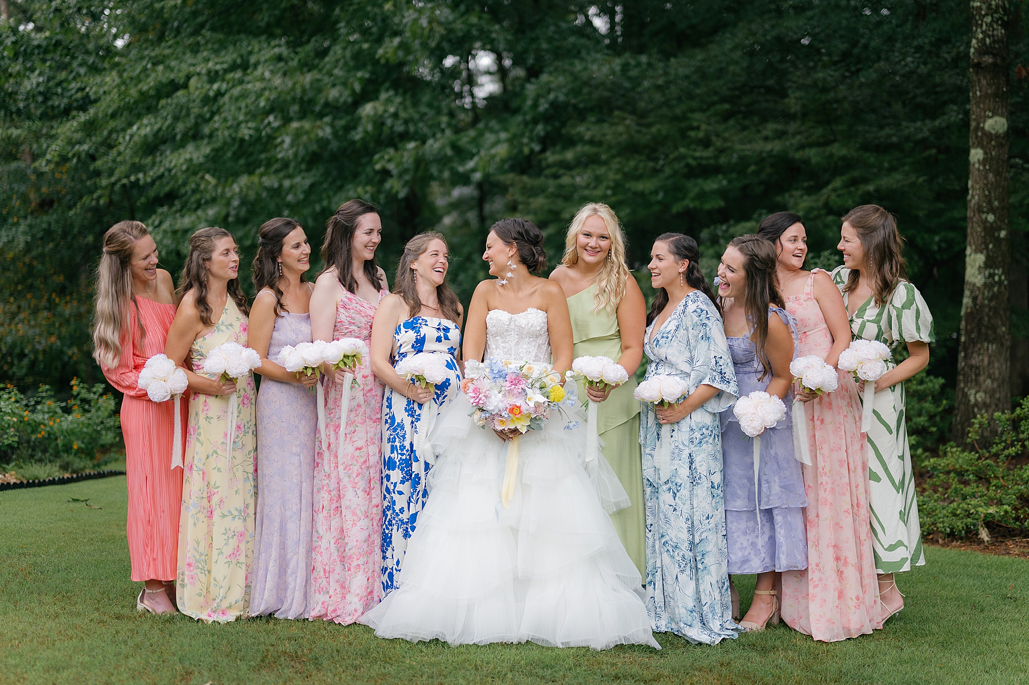 Because many of my friends are in varied life stages, I let them have a calm morning to themselves and arrive fully dressed and ready for photos! It was fun seeing everyone in their colourful dresses, and the sun even made its appearance! Both of our families had arrived by that point, too, and it was so crazy watching everyone congregate in my parents’ home and yard. I could’ve never imagined it even if I tried!