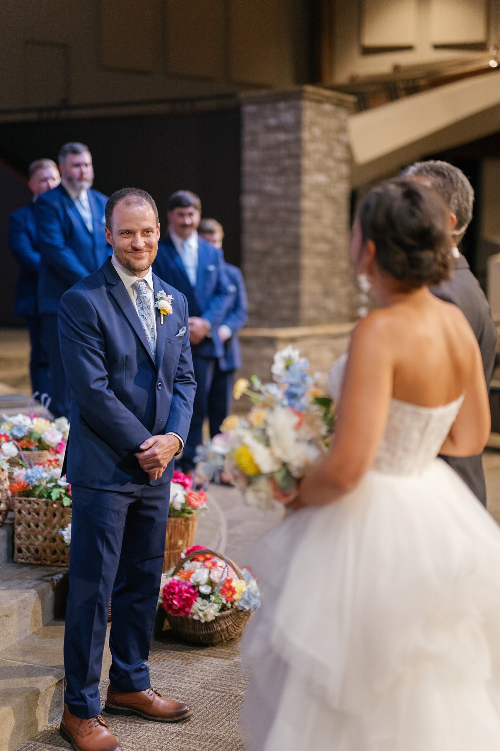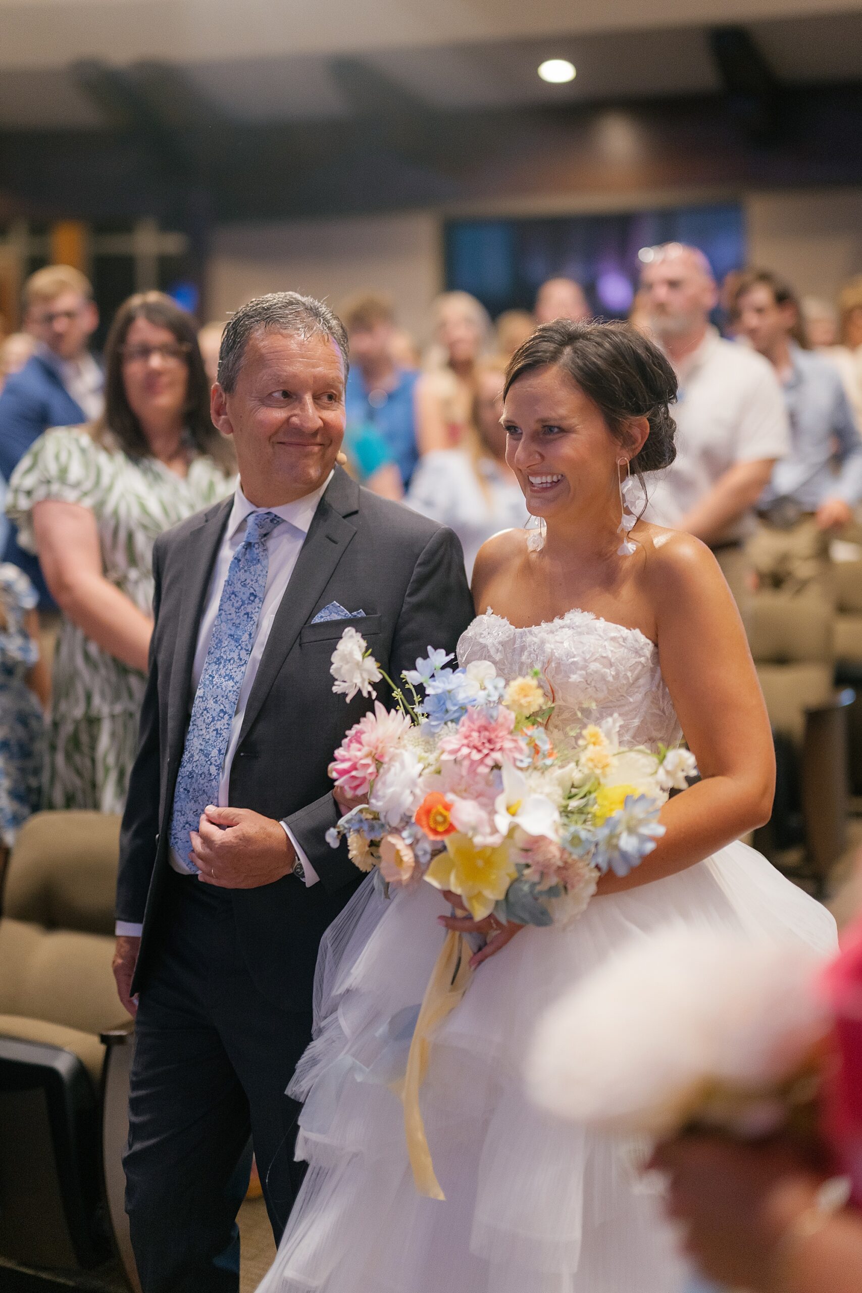 We got to the church 45 minutes before the ceremony began to pray and put up our feet up for a few minutes. Then, the time had come! Everyone was seated and it all began. Rebekah Walker played “Goodness of God” on violin while our parents walked down to the aisle, then she and the Finchers transitioned to playing “Bless God” by Brooke Ligertwood. The bridal party walked in pairs before me, and my niece and nephews walked down during the bridge. And suddenly, it was my turn. I was standing with my Dad, struggling to hold back tears, and the doors swung open.