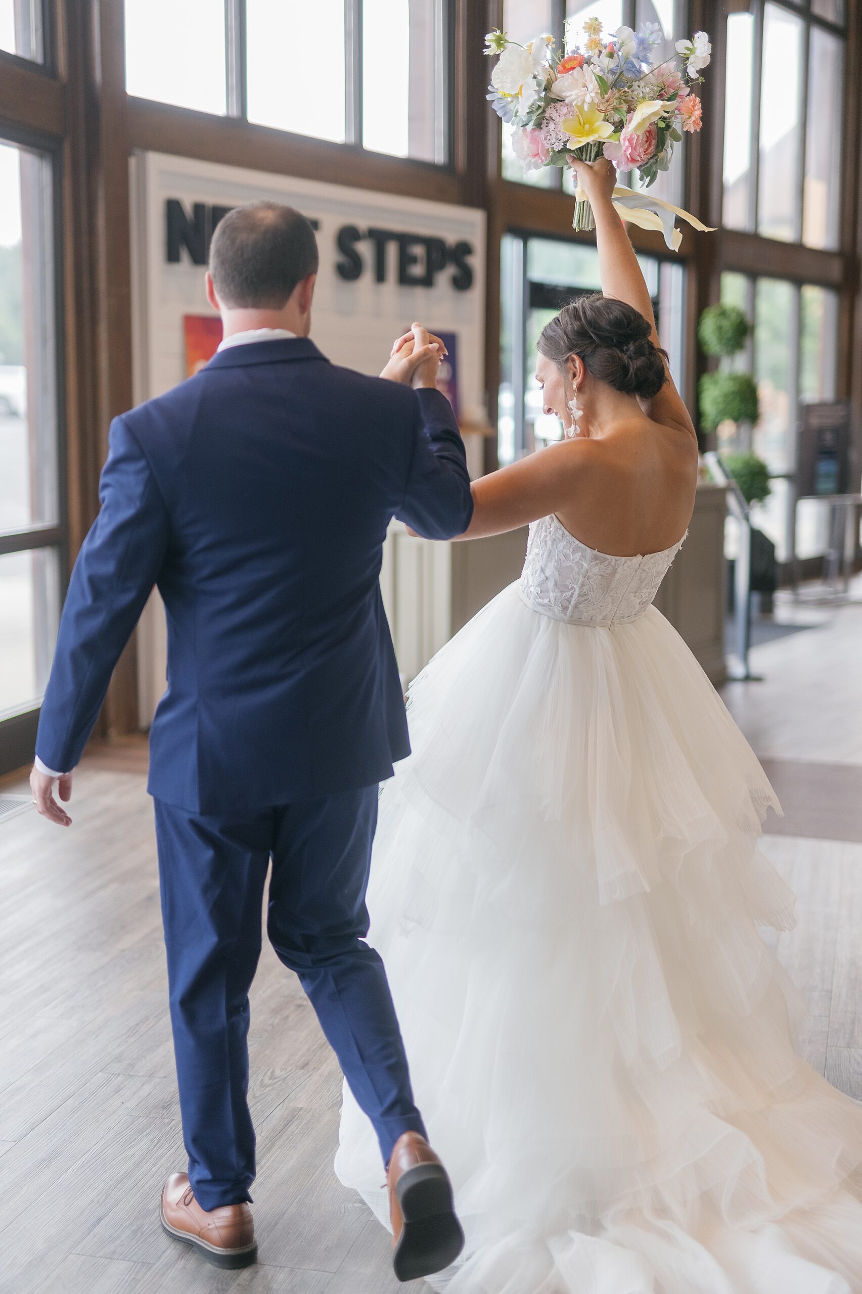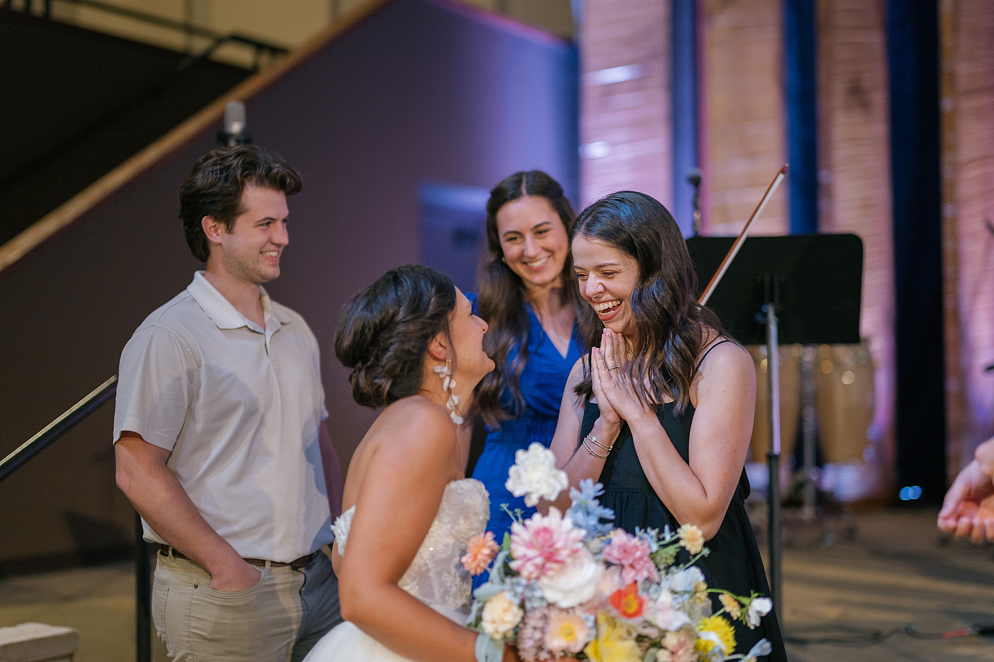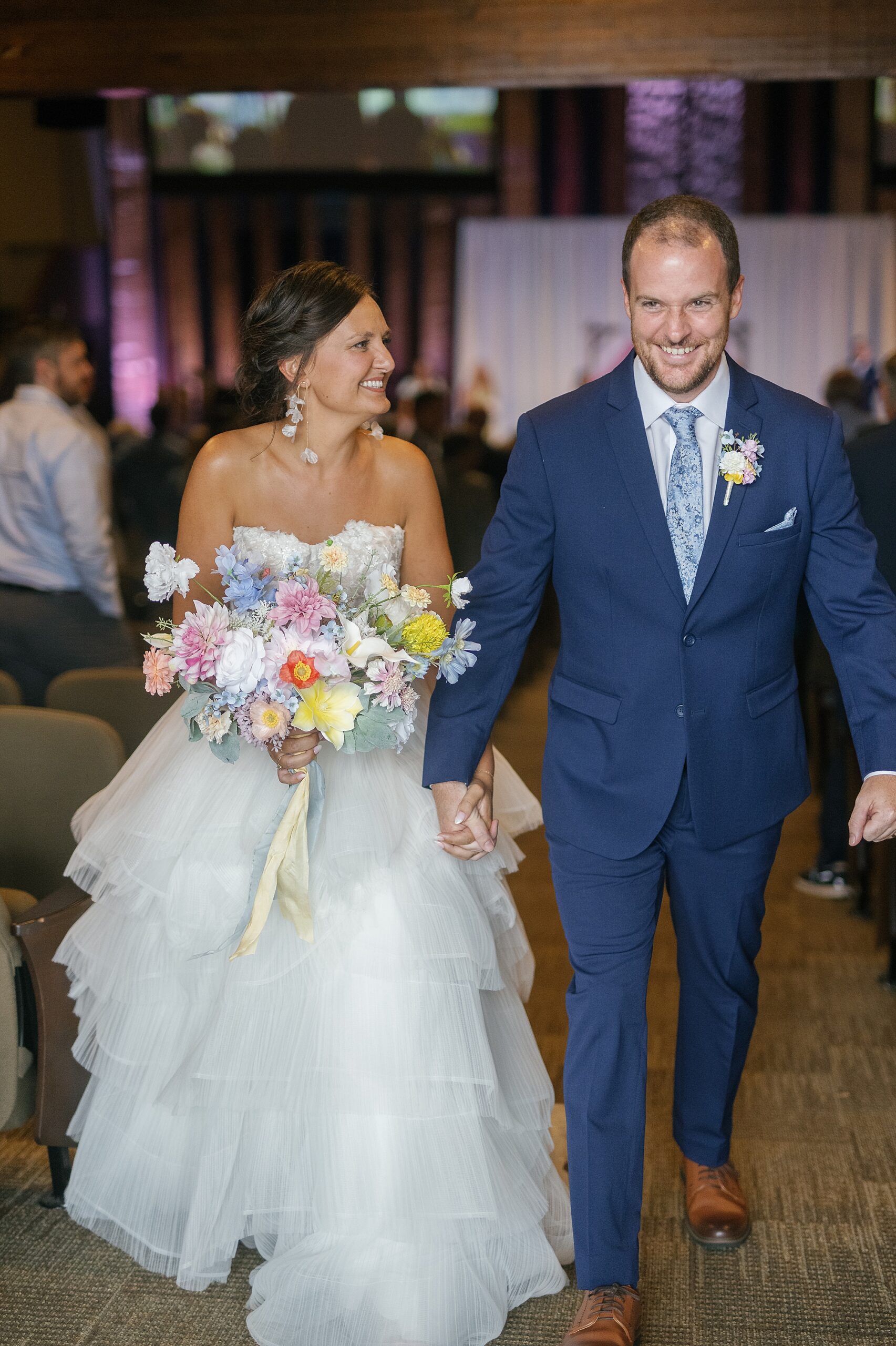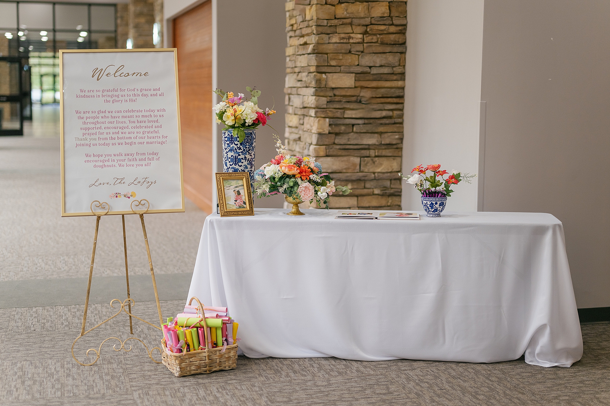 After saying vows, exchanging rings, making a covenant with each other and singing three congregational songs before my brother-in-law preached, we walked out to none other than Lynyrd Skynyrd’s “Sweet Home Alabama”! It was such a fun, joyful and light-hearted song to walk out to and we had a blast. The reception festivities ensued and we loved hugging and talking to so many friends and family!