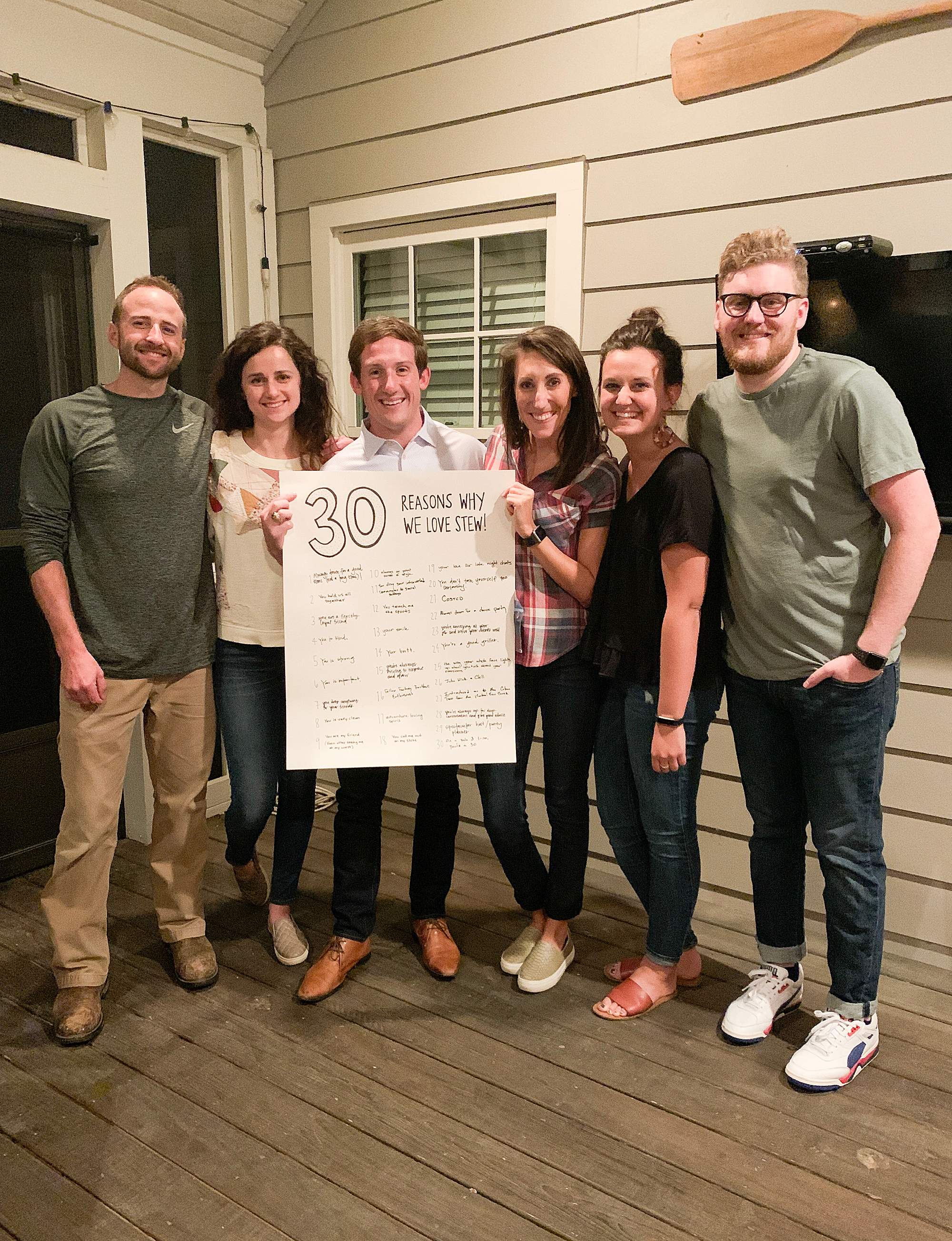 I love being neighbours with this crew! Emily, Anne Lyle and I live right across the street from Andrew, Stewart and Steven… and in this season, this little community has been one of my biggest gifts. We hang out multiple nights a week, ask each other dating advice, celebrate birthdays and accomplishments and eat a lot of ice cream (or maybe that’s just Andrew). I’m thankful for these five and it’s never wasted on me how good these friendships are. We call it FRIENDS: Homewood Edition. We celebrated Stew’s 30th birthday this month with reasons why we love him, a weird back porch dance party and yummy dinner!