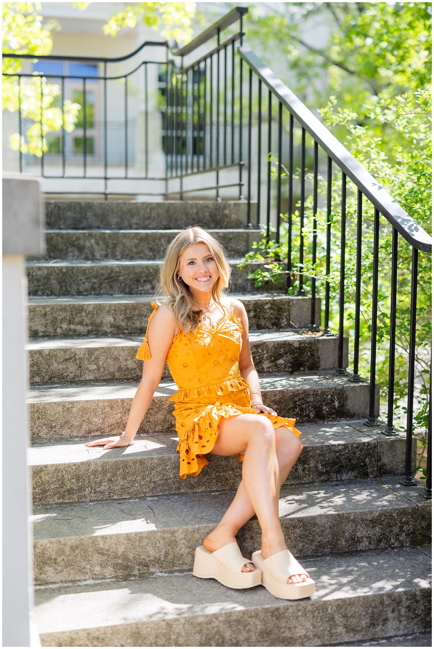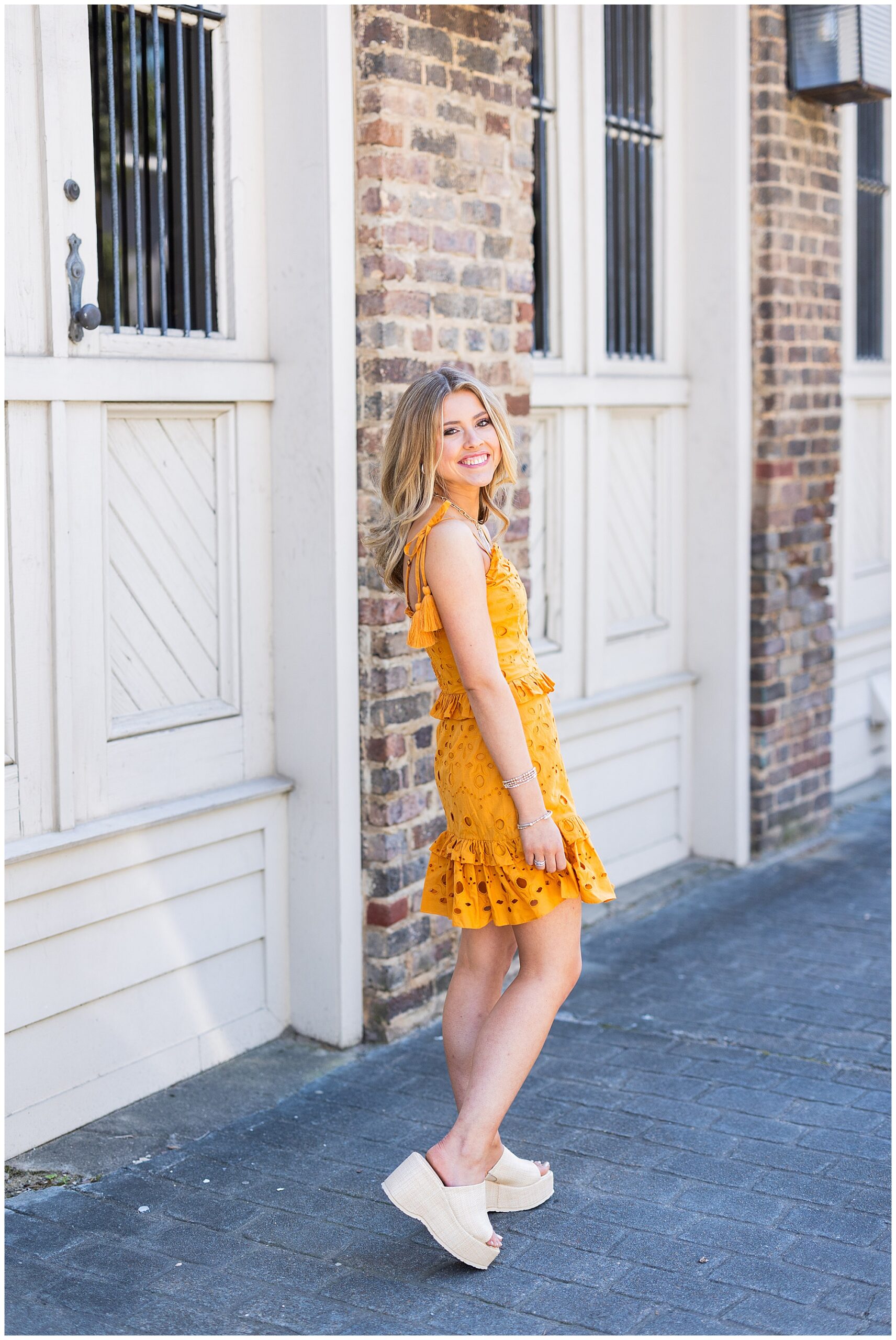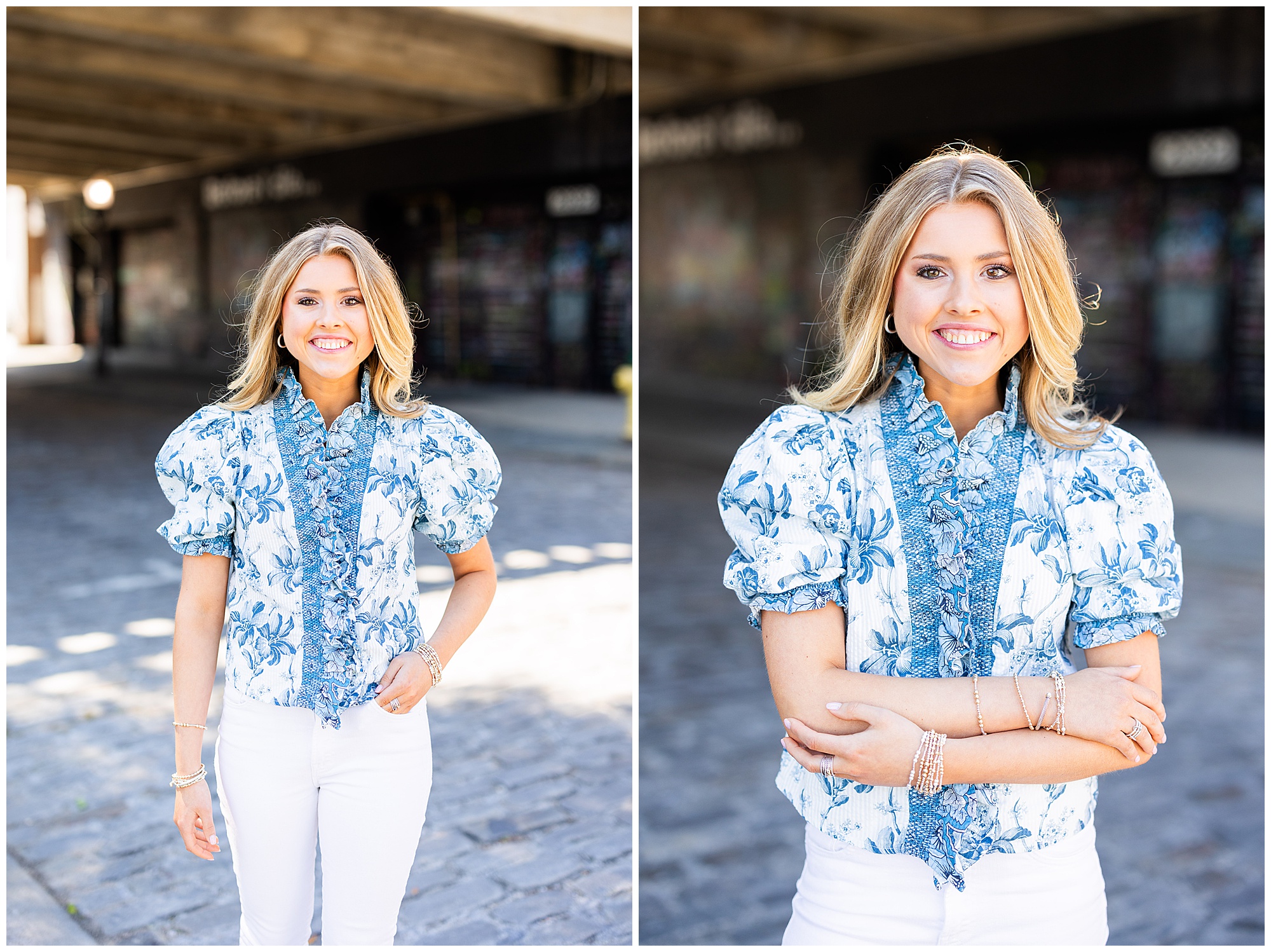 Senior portraits are the perfect way to celebrate the end of high school and the beginning of a new journey at college, and that’s exactly what Caroline Lawley and I did at her recent session! Caroline is a senior from Vestavia High school whose infectious energy and impeccable fashion sense made for such a sweet session. For our first location, we met up on Morris Avenue in Downtown Birmingham!