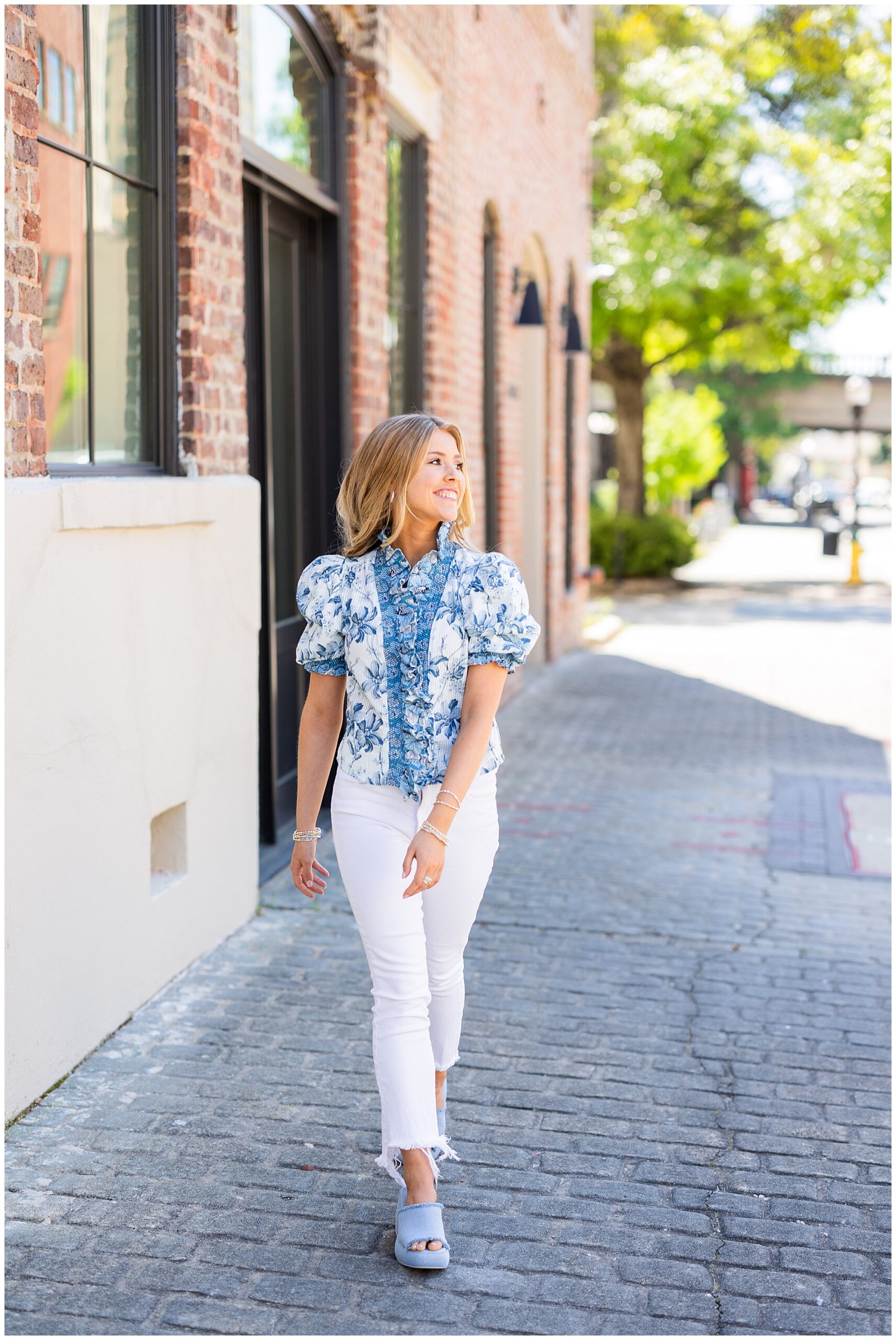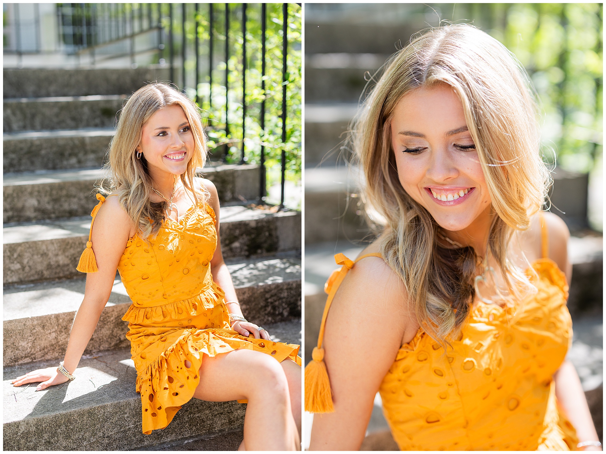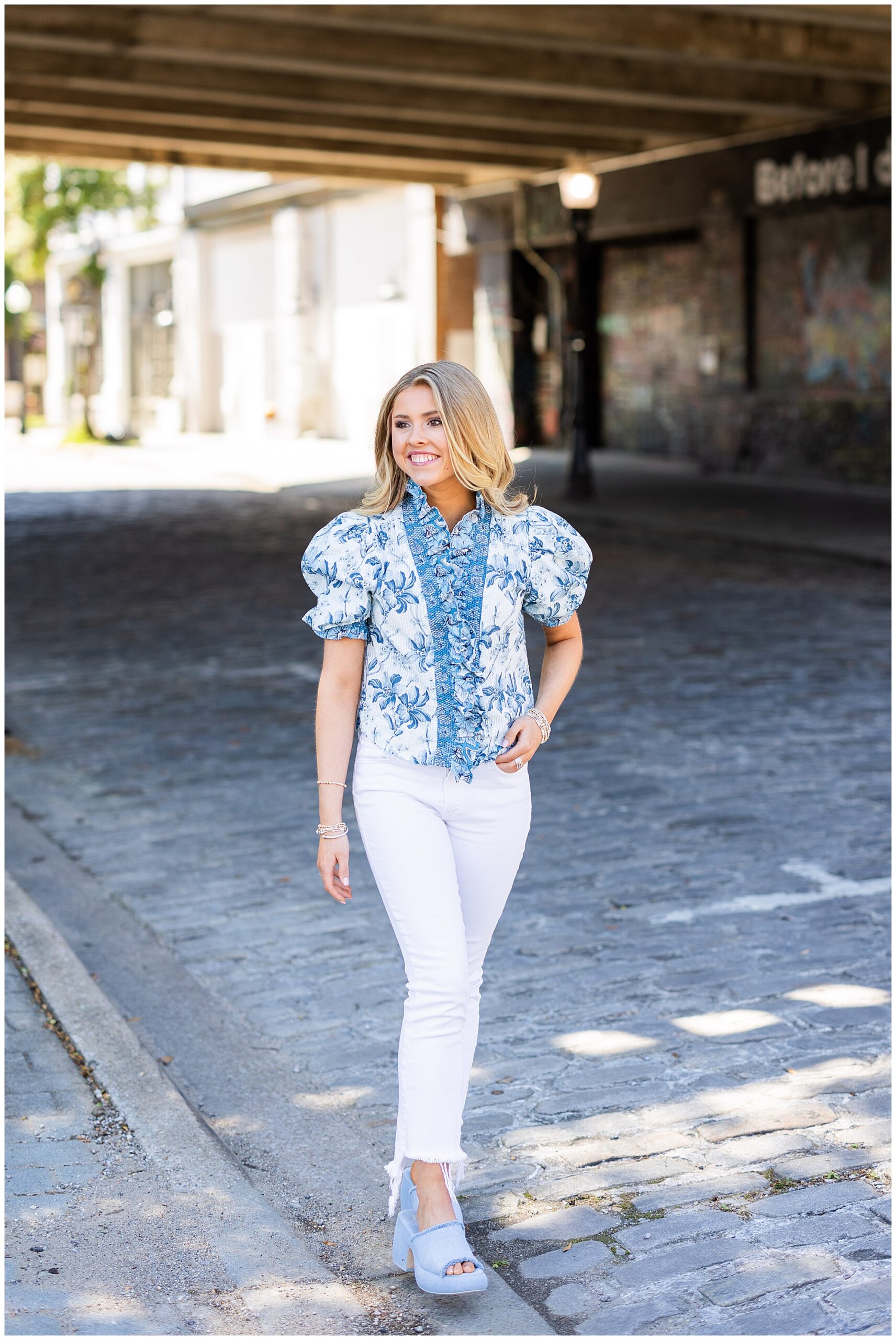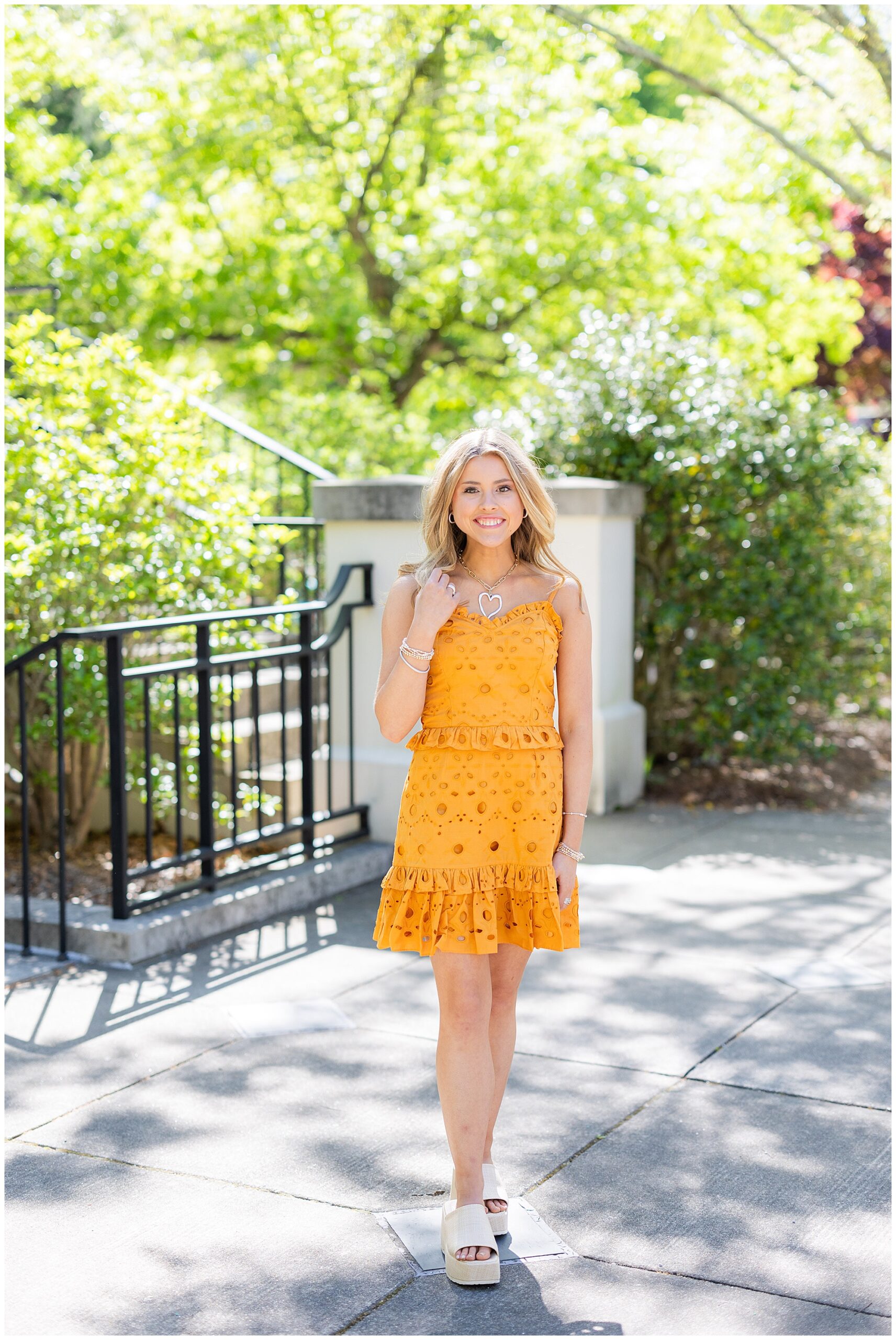 Senior portraits are the perfect way to celebrate the end of high school and the beginning of a new journey at college, and that’s exactly what Caroline Lawley and I did at her recent session! Caroline is a senior from Vestavia High school whose infectious energy and impeccable fashion sense made for such a sweet session. For our first location, we met up on Morris Avenue in Downtown Birmingham!