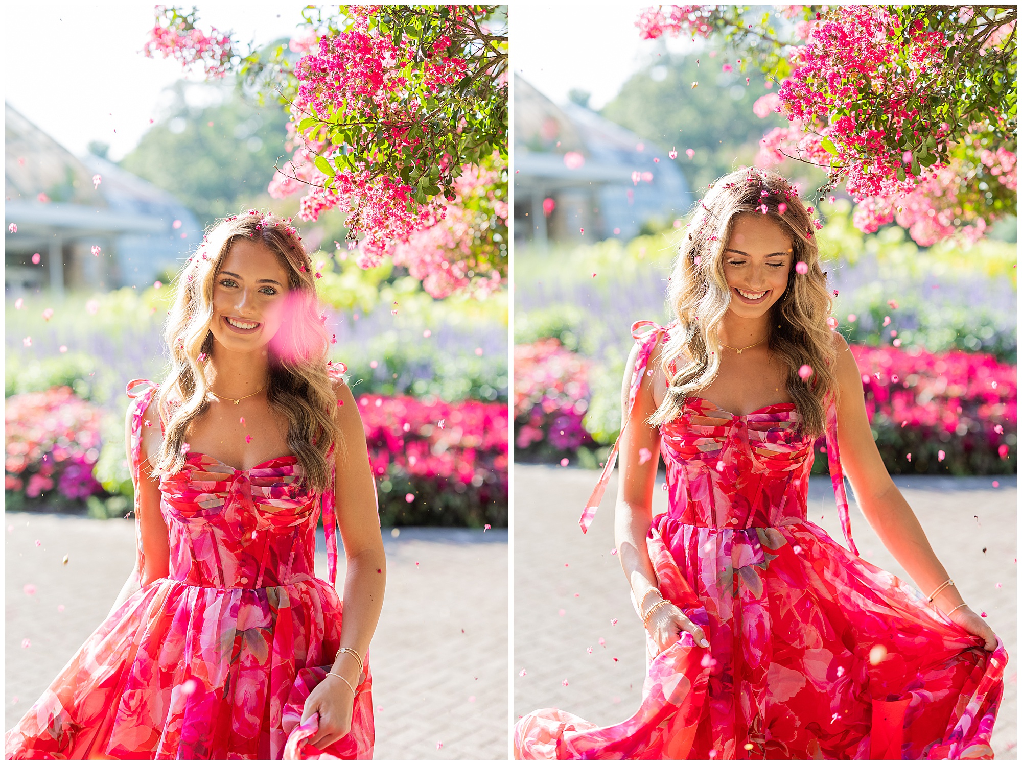 Hannah was stunning in her pink floral gown, and she brought the sweetest blue dress to change into. She perfectly matched all the garden vibes!