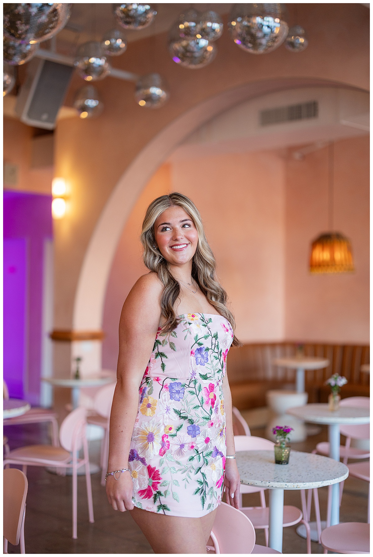 For Nora’s session, we headed to The Pink Lantern in downtown Birmingham, and it couldn’t have been a more perfect choice. This new, adorable pink coffee shop is full of personality! From colorful, creative drinks to the dreamiest aesthetic, Nora fit right into the vibe.