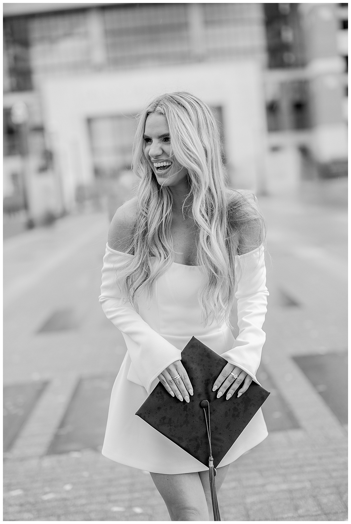 This session kept Paris and I on our toes. We had rain roll in, a champagne bottle quite literally explode out of nowhere, and at one point, a massive group of high schoolers walked right through our backdrop. It was one of those “you can’t make this up” kind of afternoons. But Paris handled it all with so much grace and laughter.