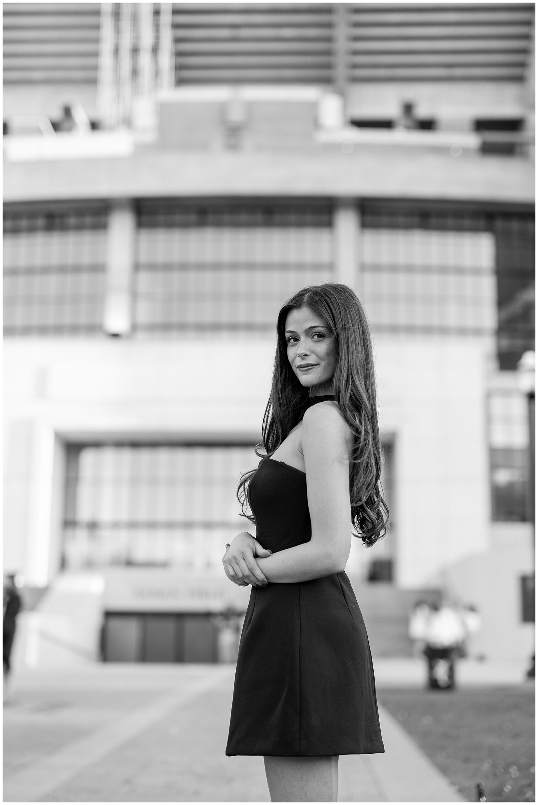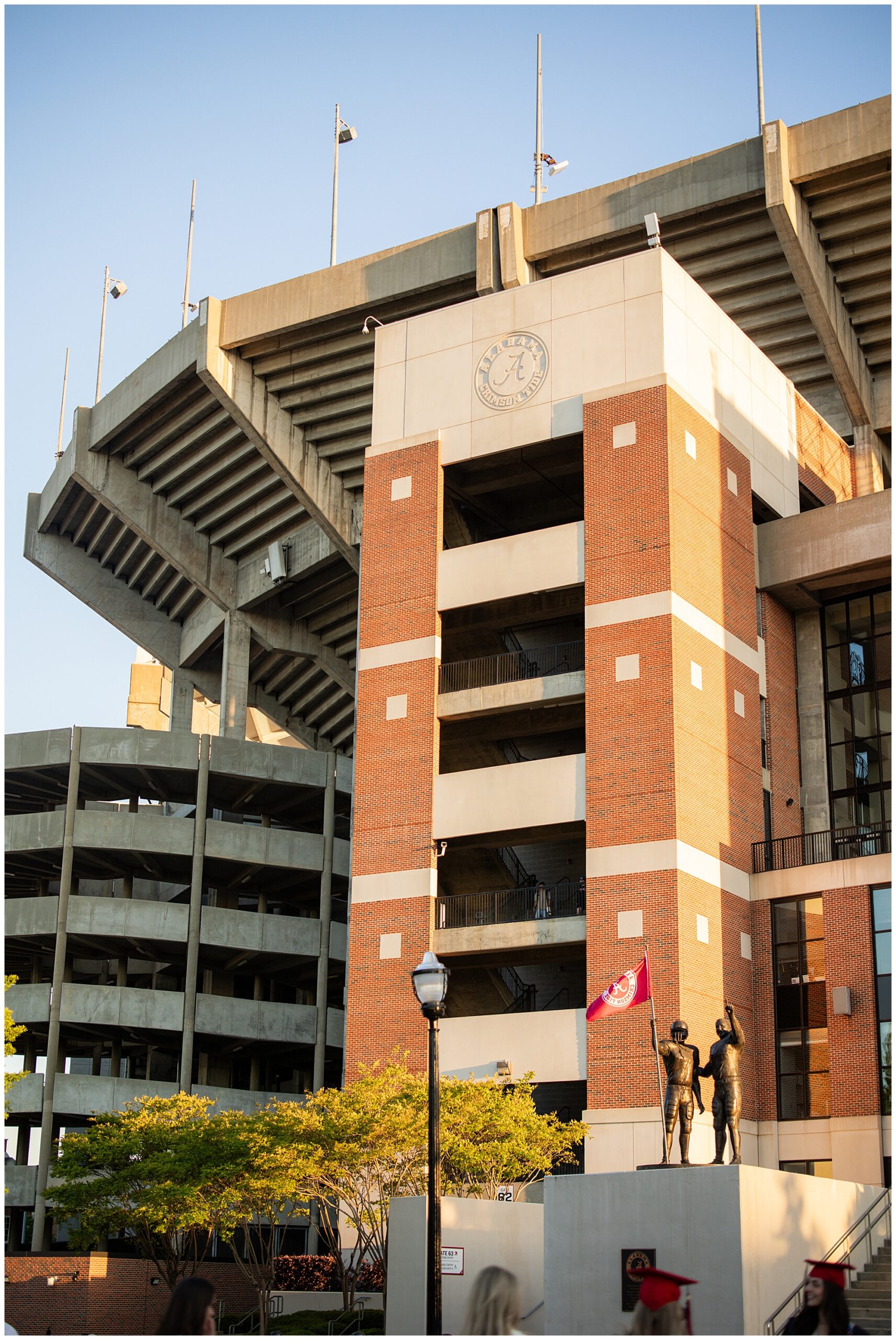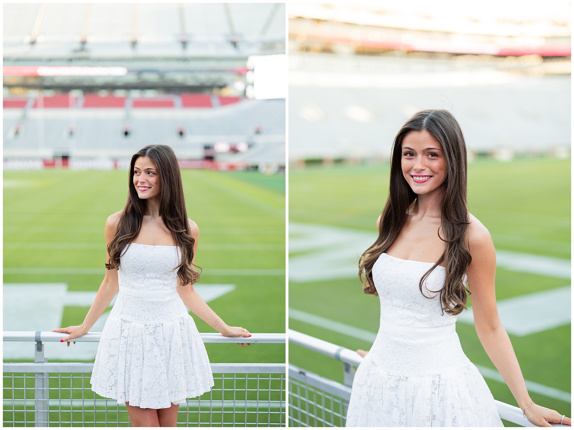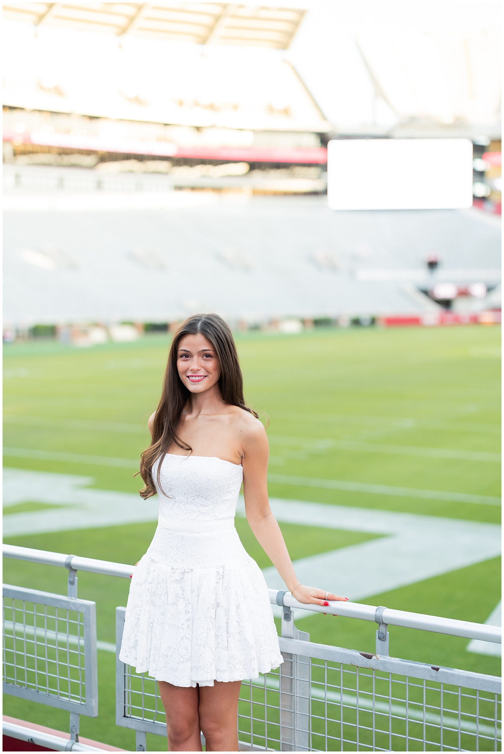 Paige Acker-Price, a past bride, friend, and future cousin-in-law (if that’s even a thing), is the director of University Programs at UA. Her team happened to be organizing a Senior Day event at the stadium while we were there! She allowed us to slip in, cut the line and take a few of Gianna’s photos in front of the field!