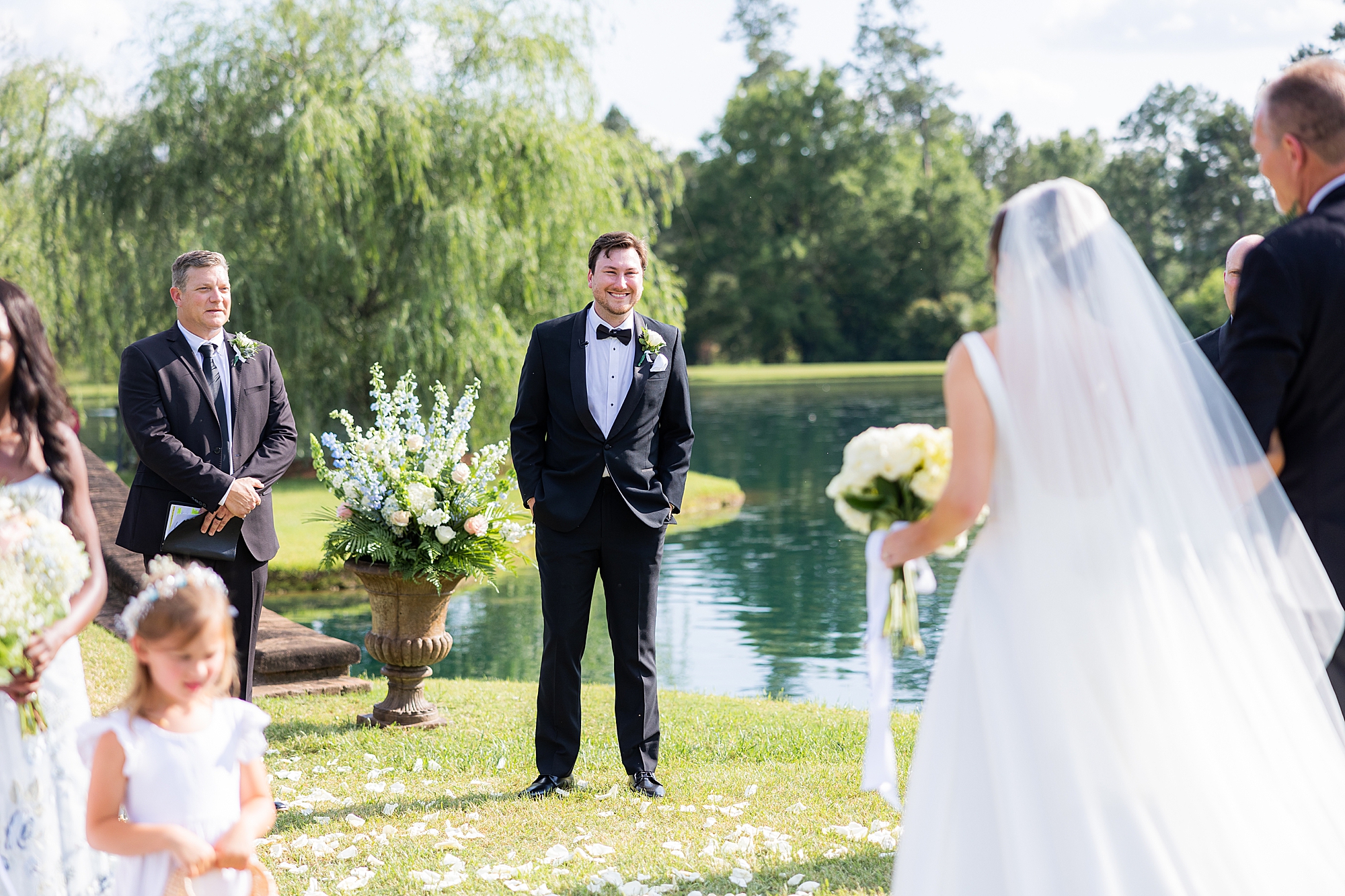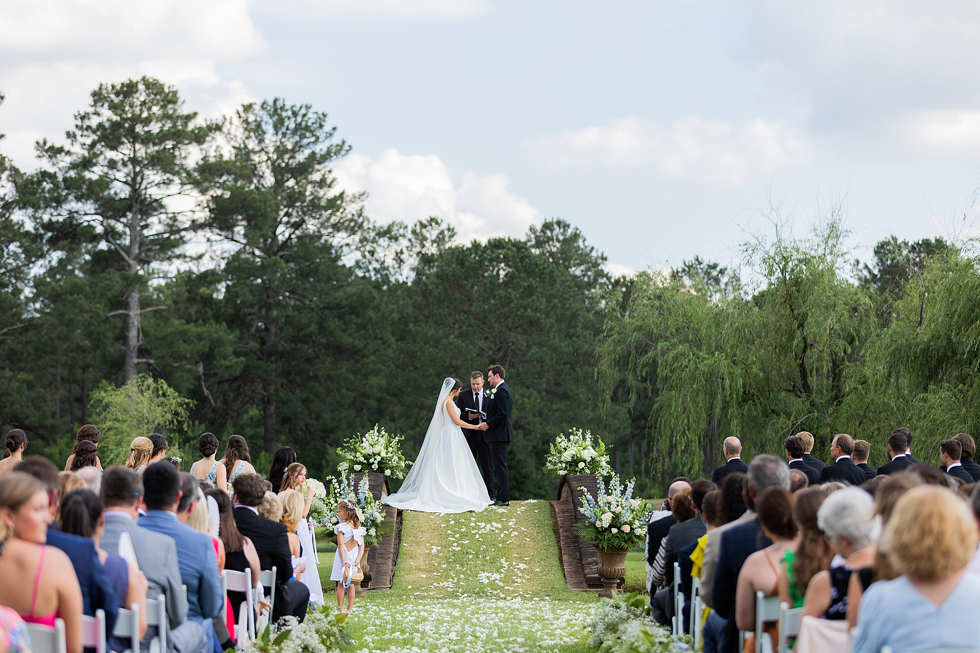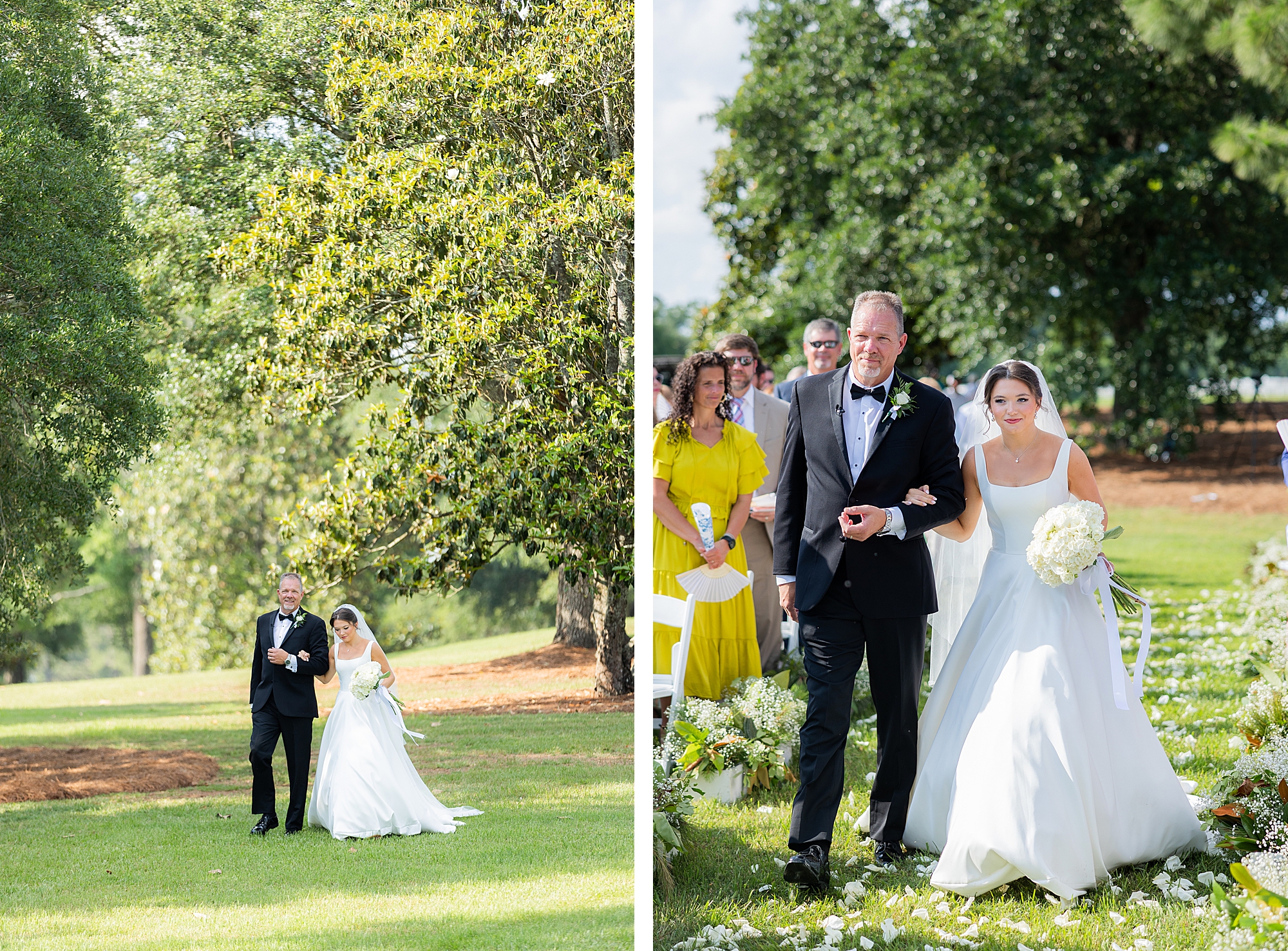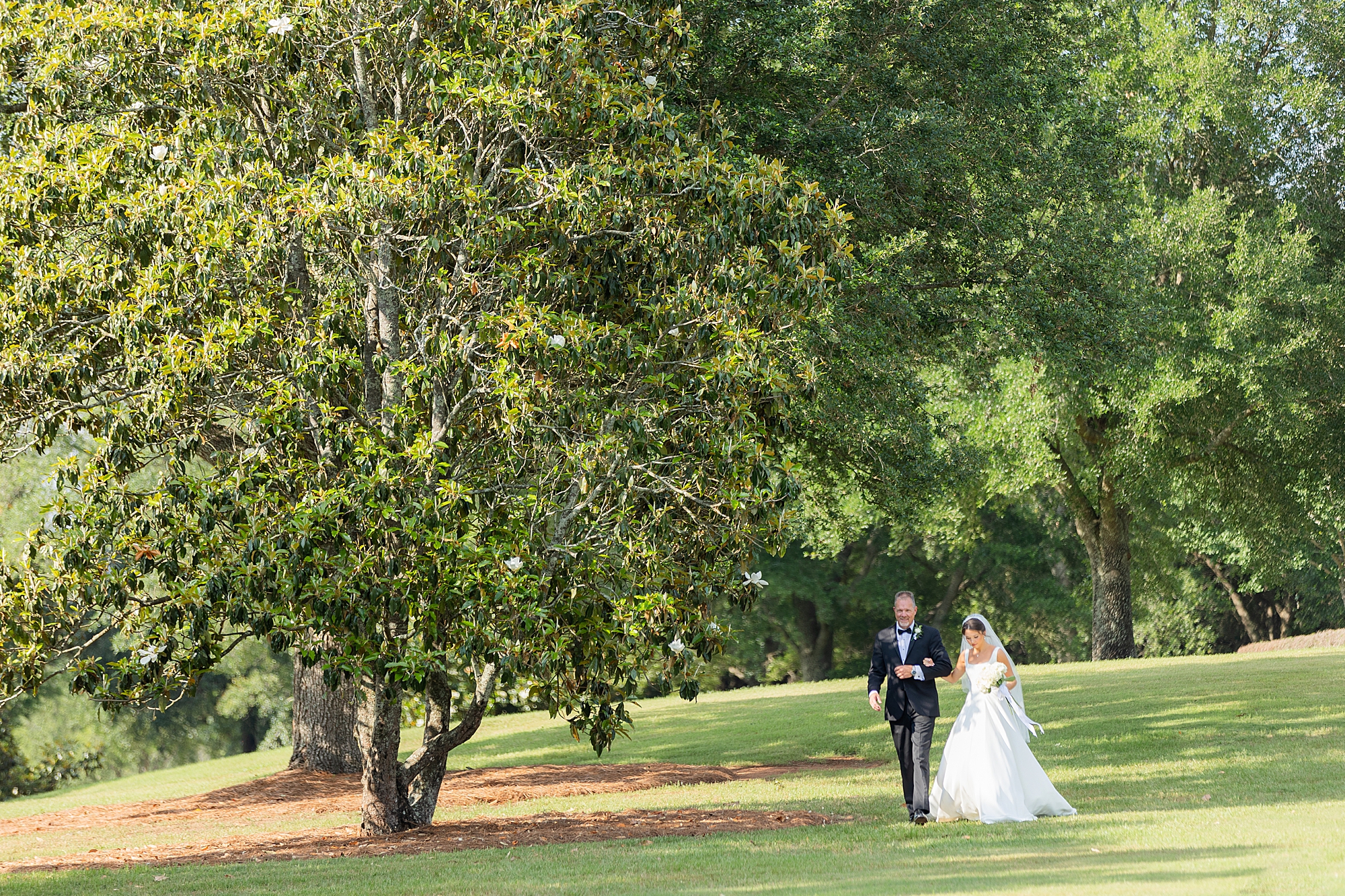 Taylor and Hunter didn’t do a first look, and I honestly loved it. Her walk down from the house was truly one of the most majestic views I’ve ever seen! She and her dad had a long walk down together, and it just felt like a beautiful picture of Christ’s bride walking towards their groom.