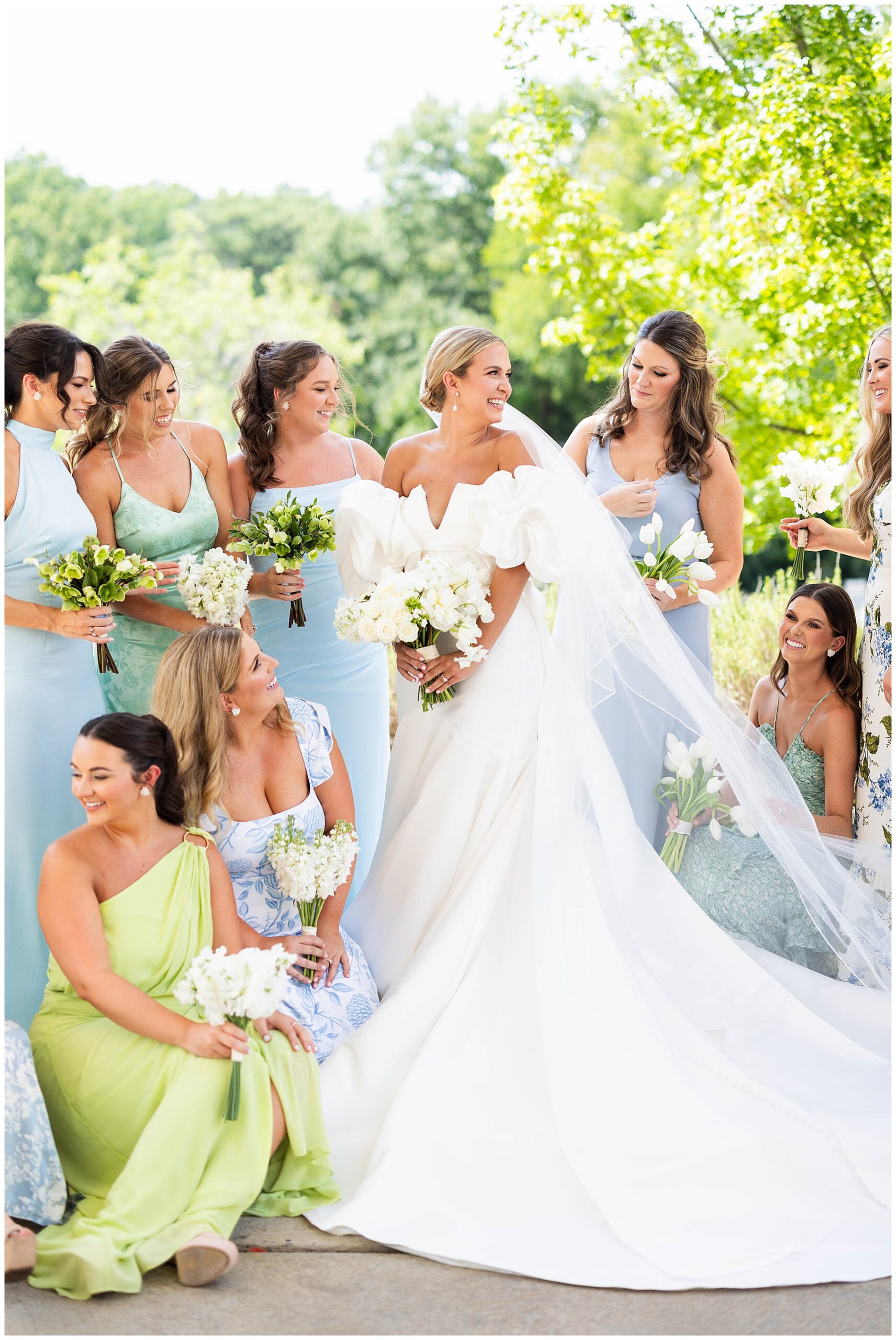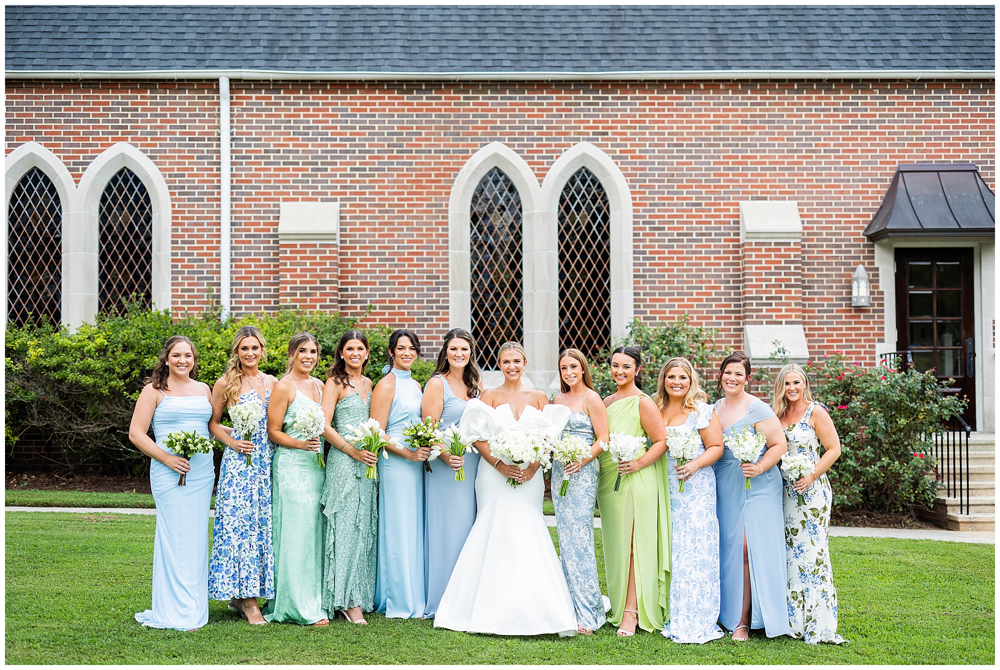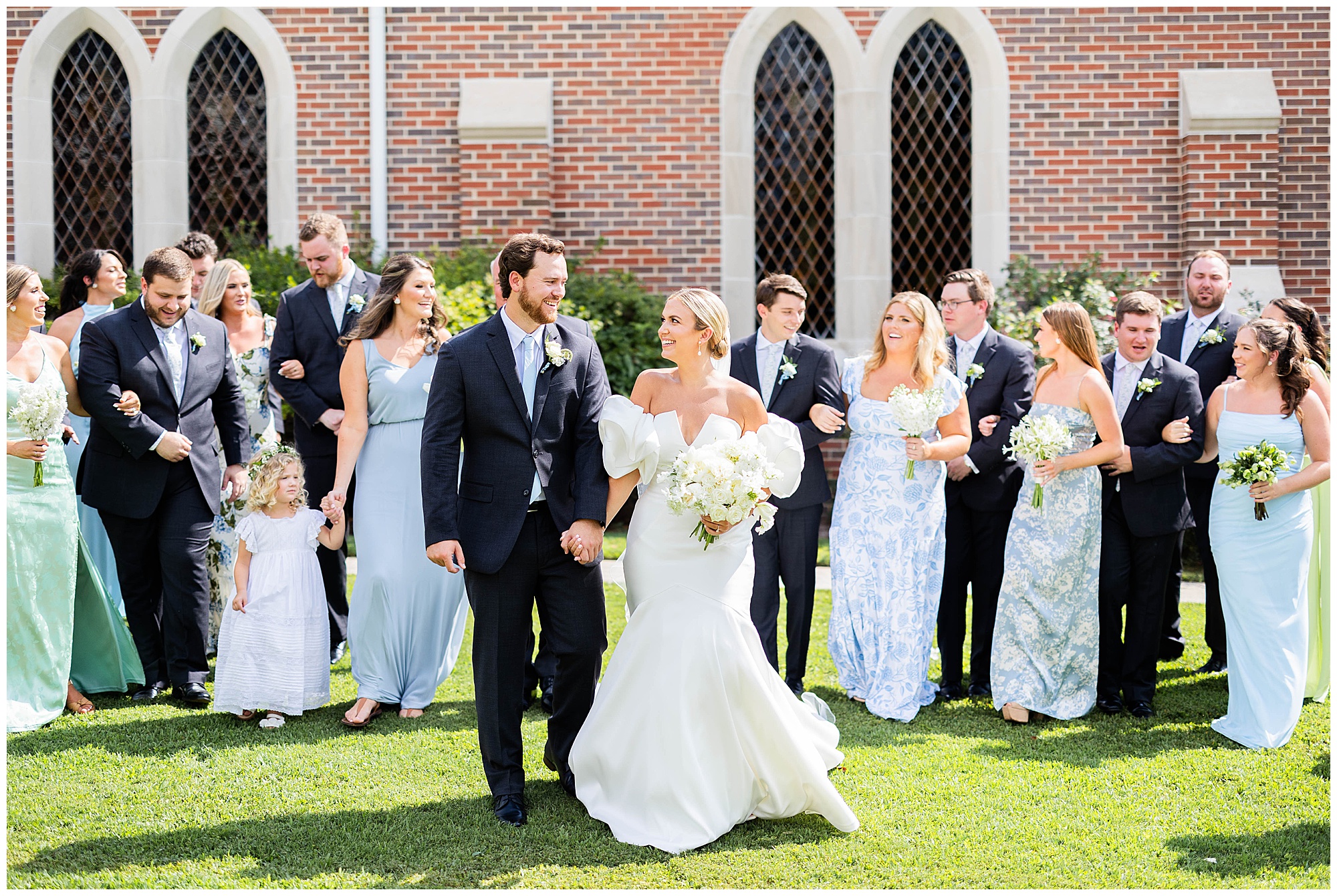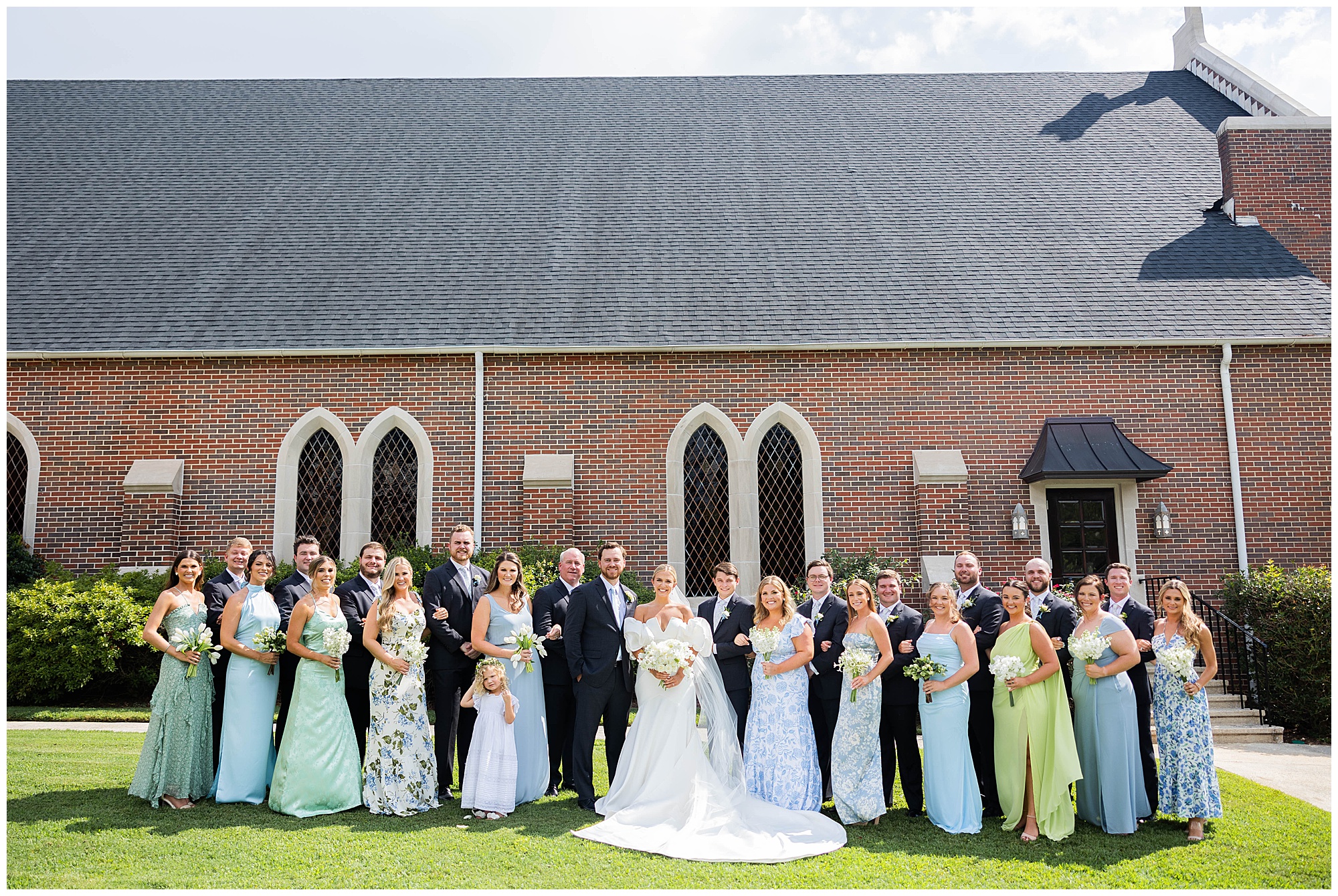 Despite the summer heat, the couple’s big bridal party remained in high spirits. They were a fantastic team, supporting Ben and Curran and sharing fans to beat the heat.