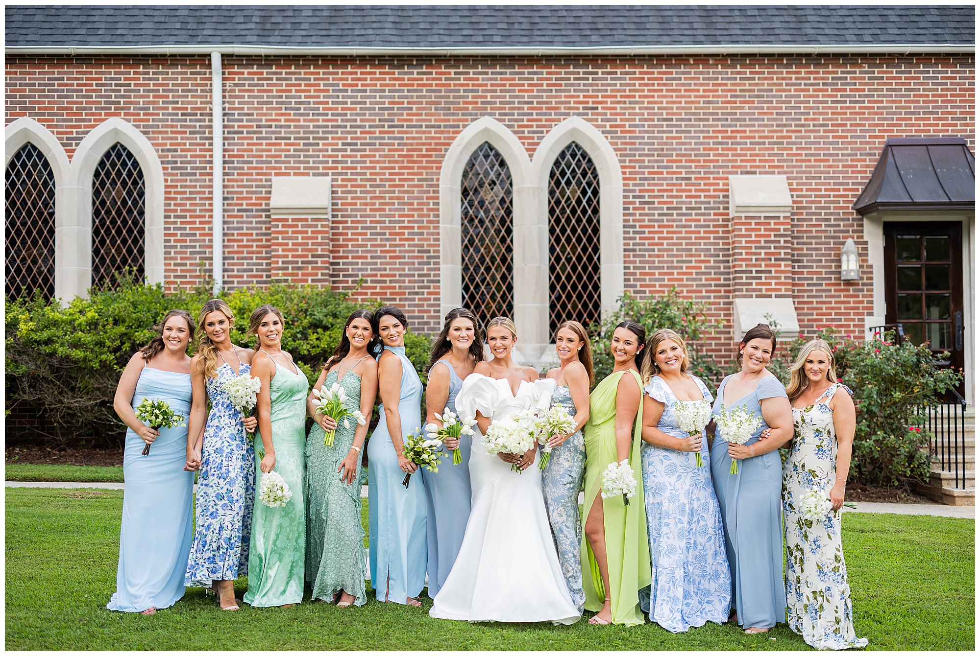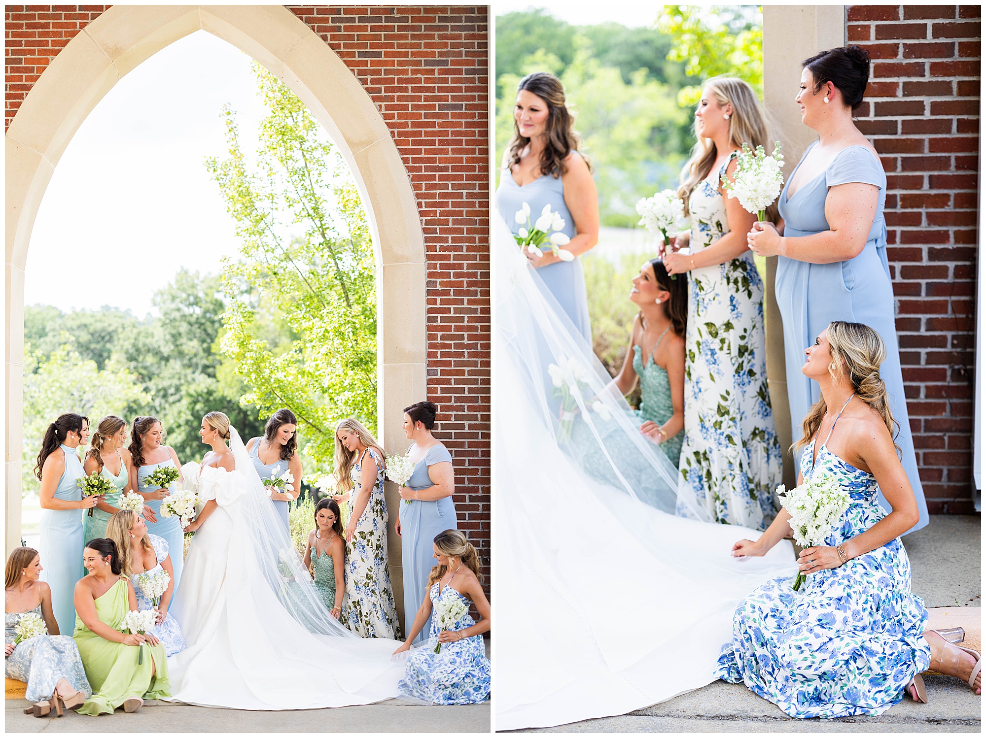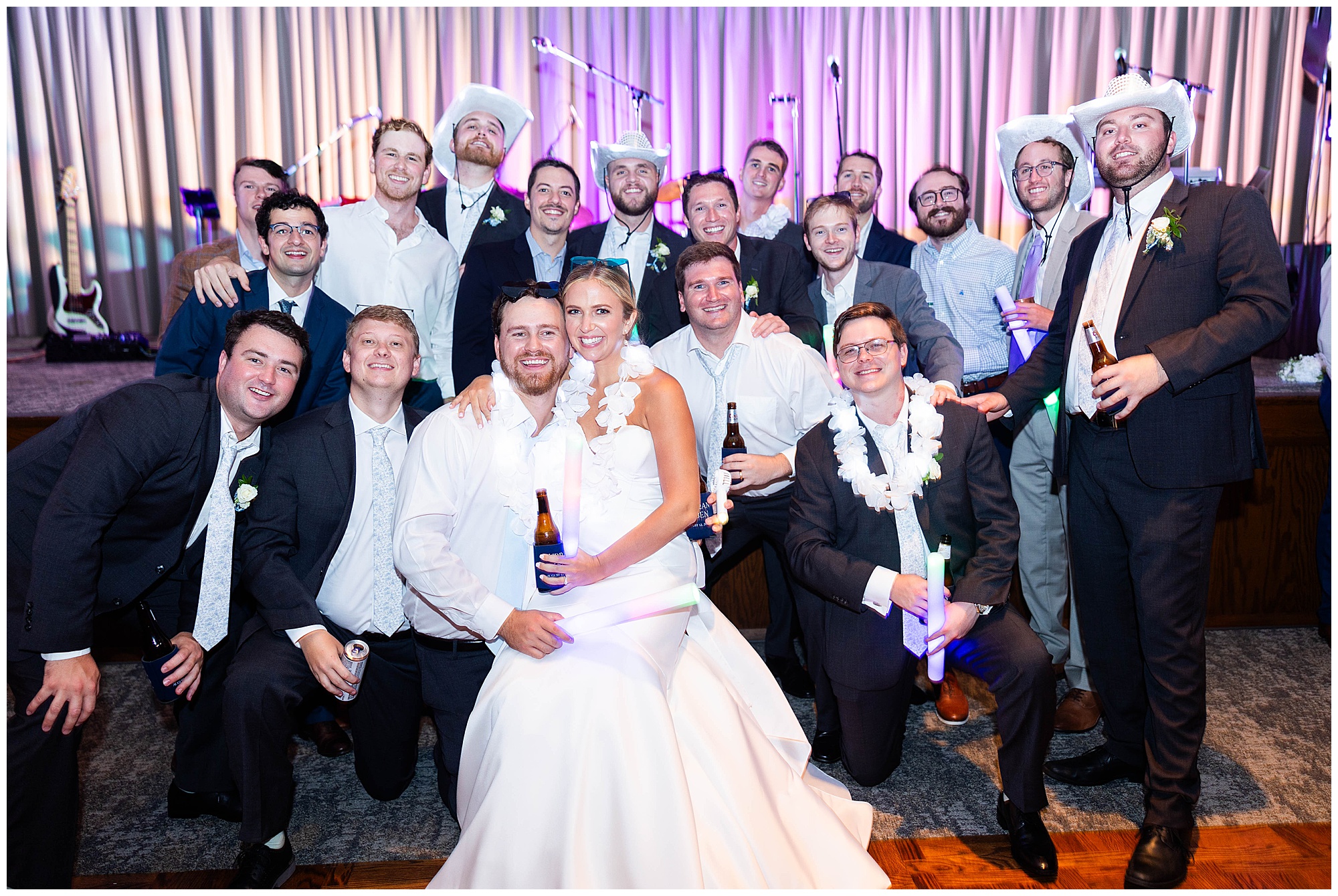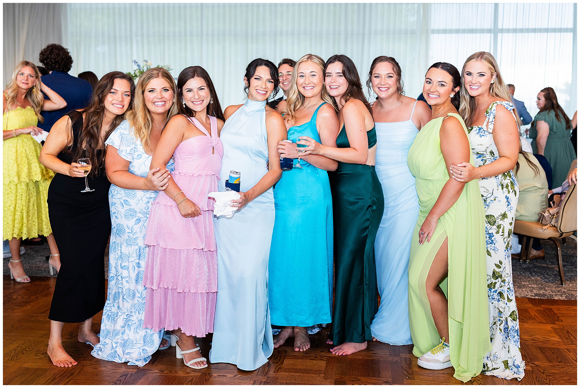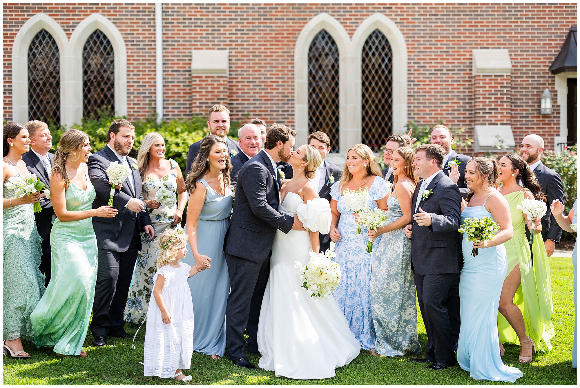 Despite the summer heat, the couple’s big bridal party remained in high spirits. They were a fantastic team, supporting Ben and Curran and sharing fans to beat the heat.