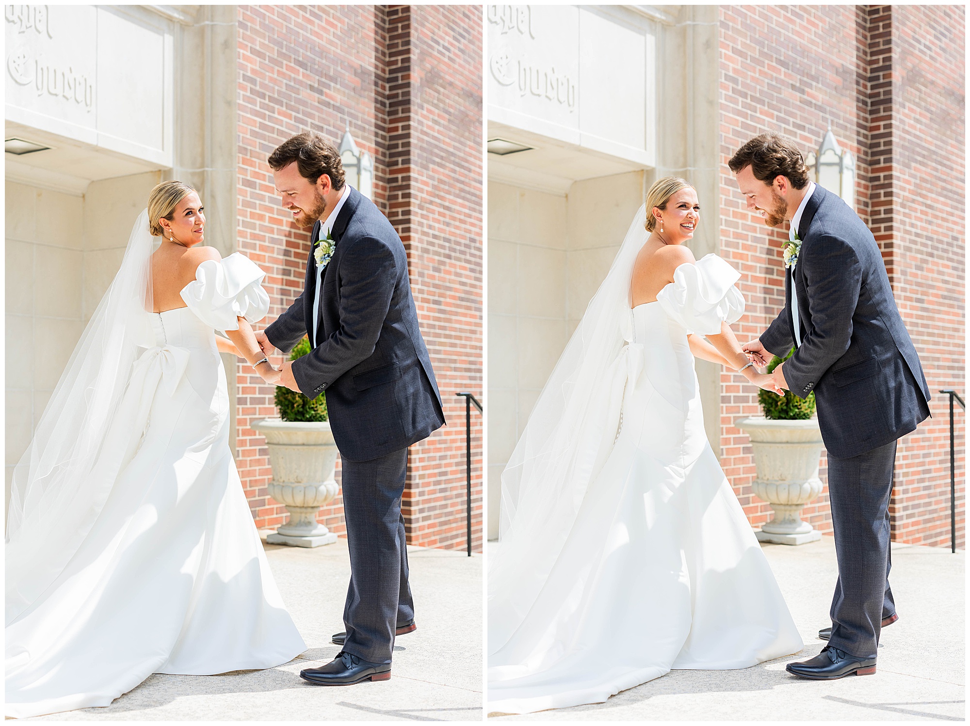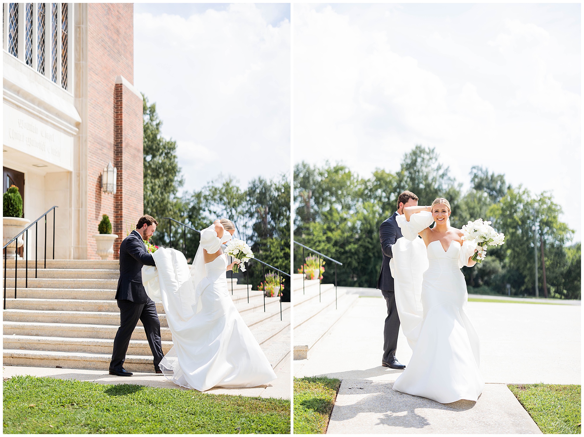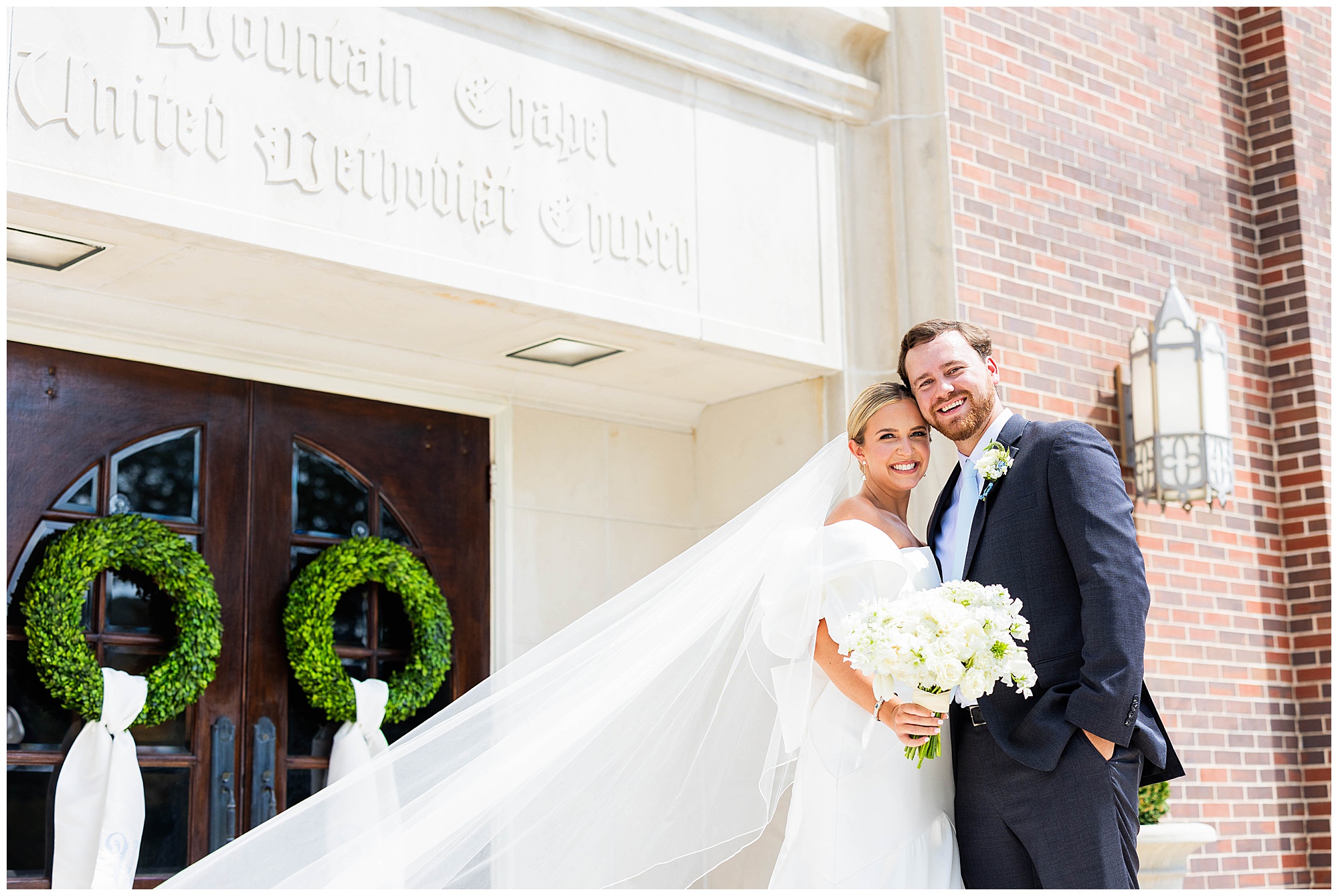 Next, we piled into cars and headed over to Mountain Chapel Methodist Church in Vestavia Hills. This ceremony venue is the church Curran grew up at, and still holds a special place in her heart. She and Ben exchanged their first look on the gorgeous front steps!