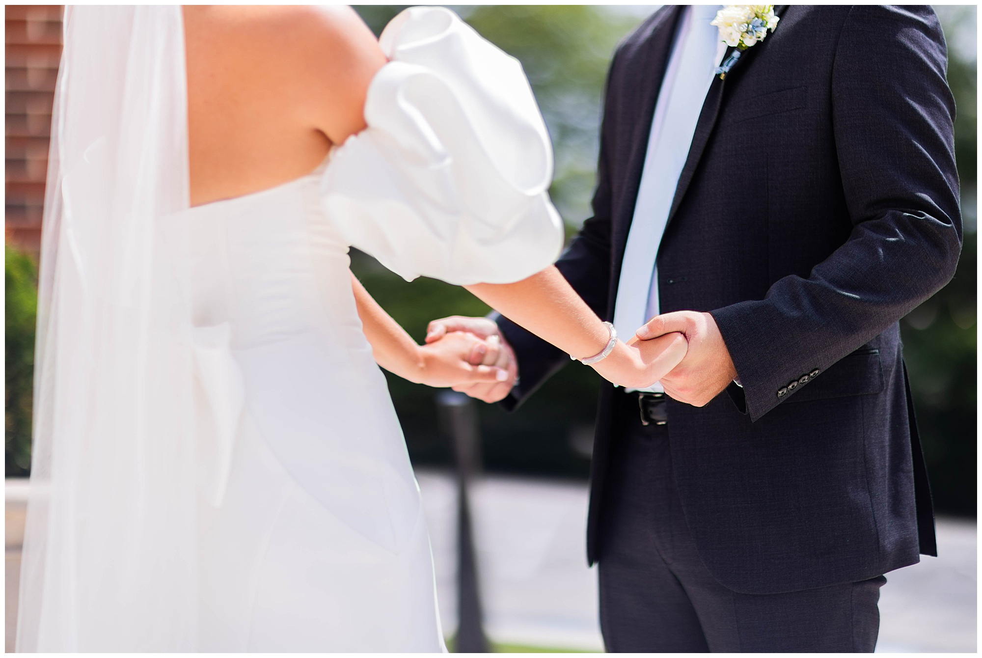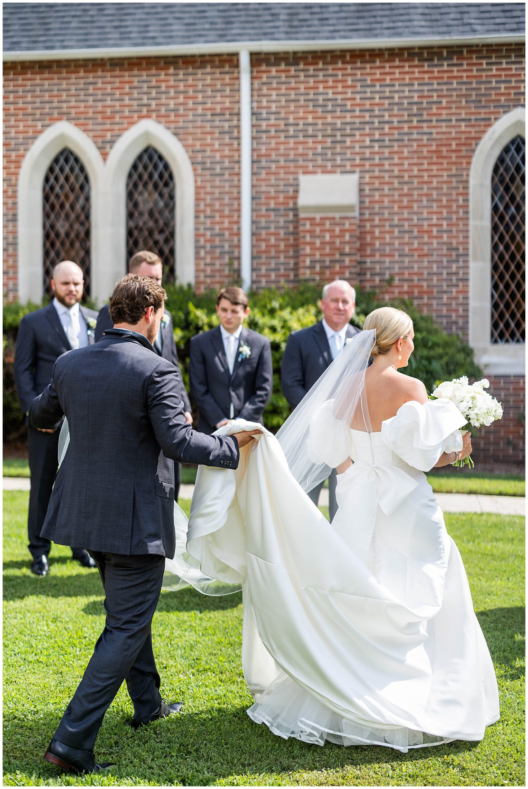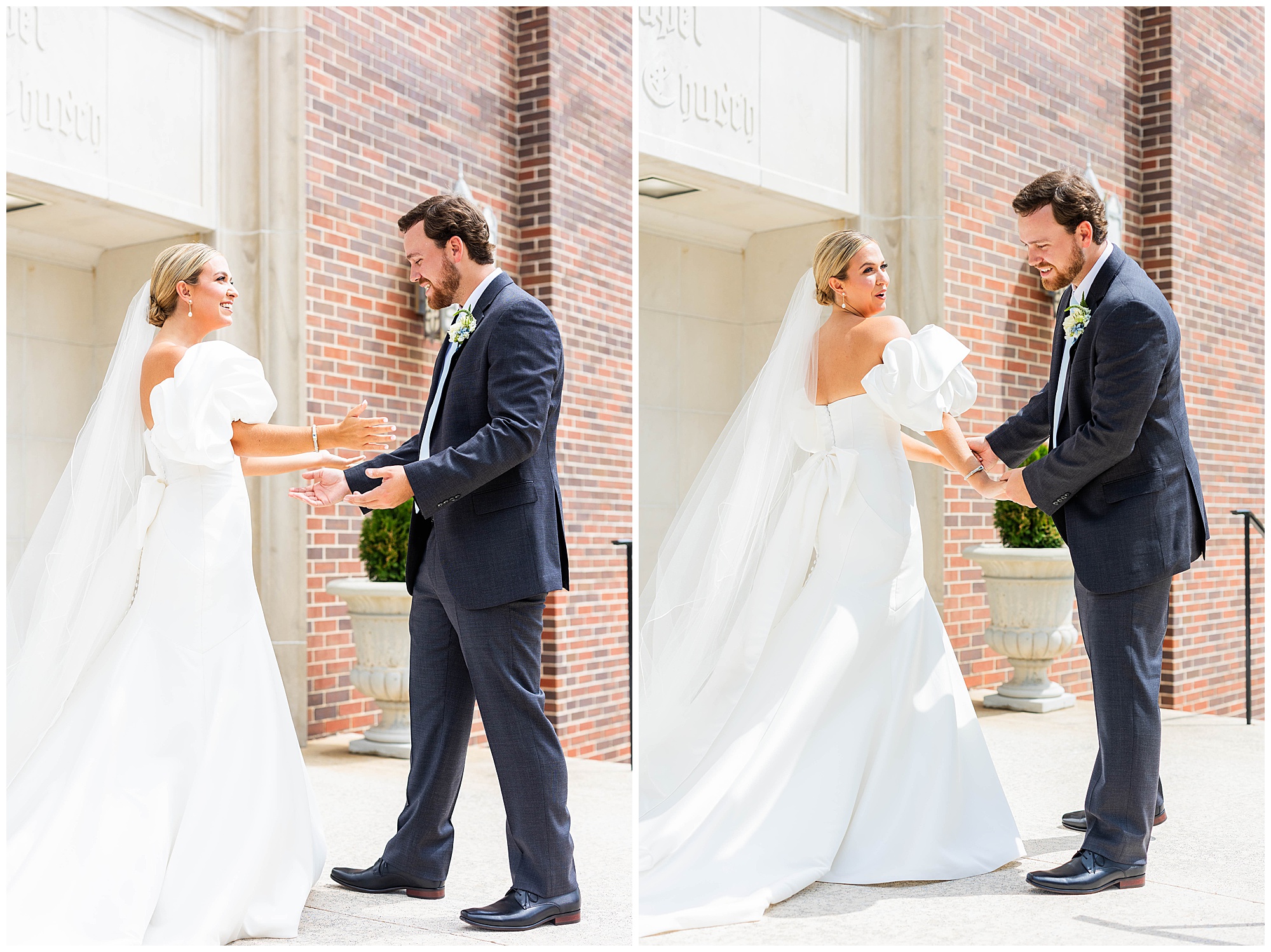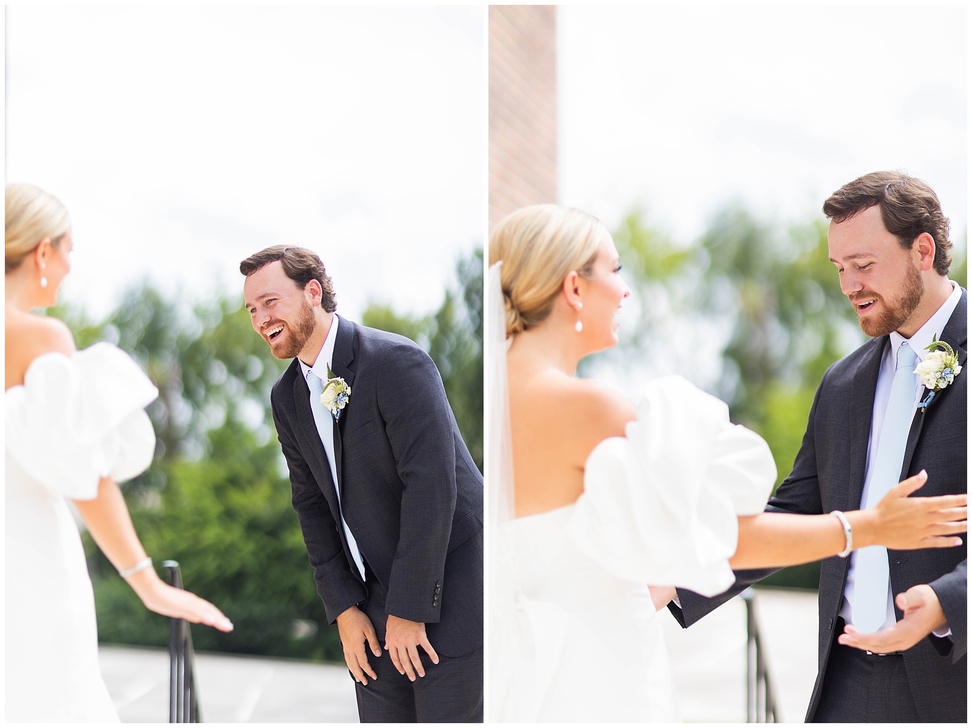 Next, we piled into cars and headed over to Mountain Chapel Methodist Church in Vestavia Hills. This ceremony venue is the church Curran grew up at, and still holds a special place in her heart. She and Ben exchanged their first look on the gorgeous front steps!