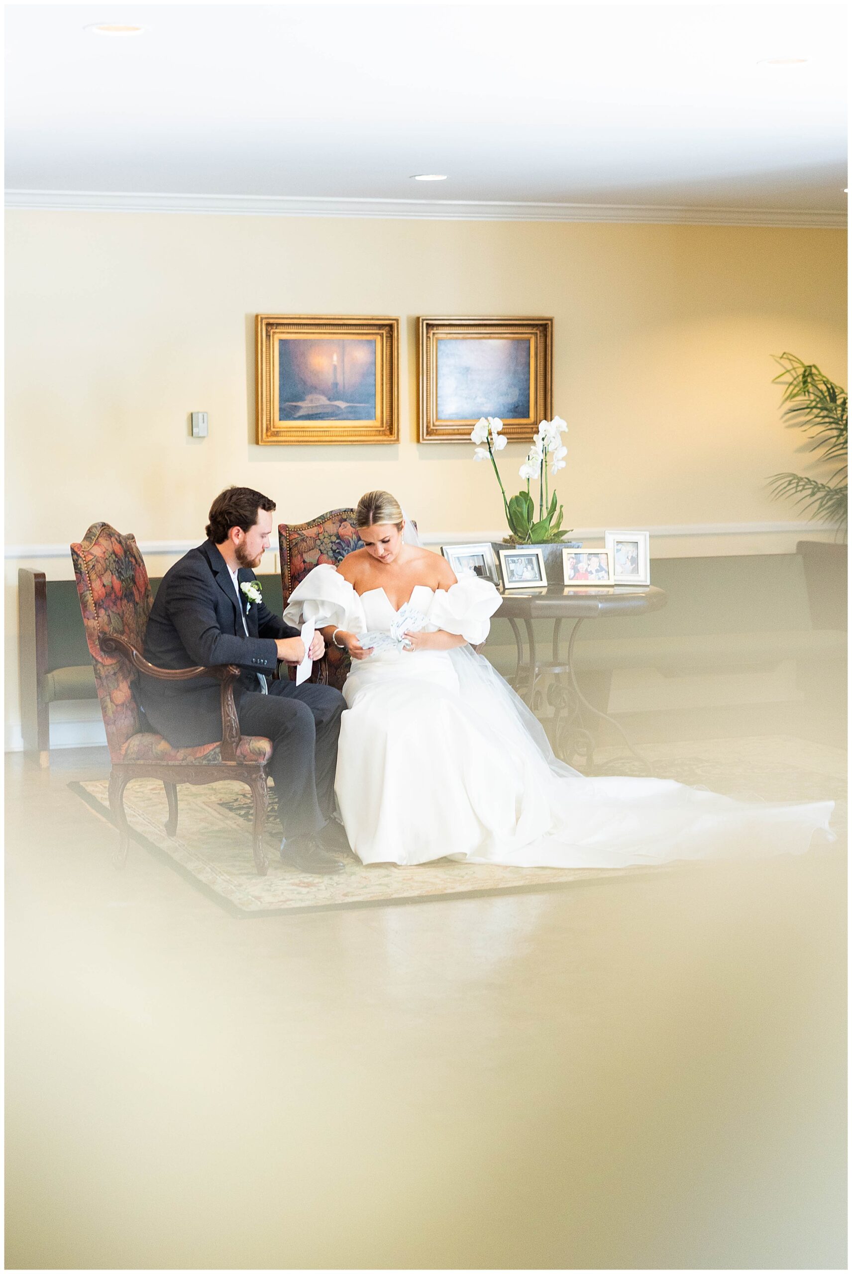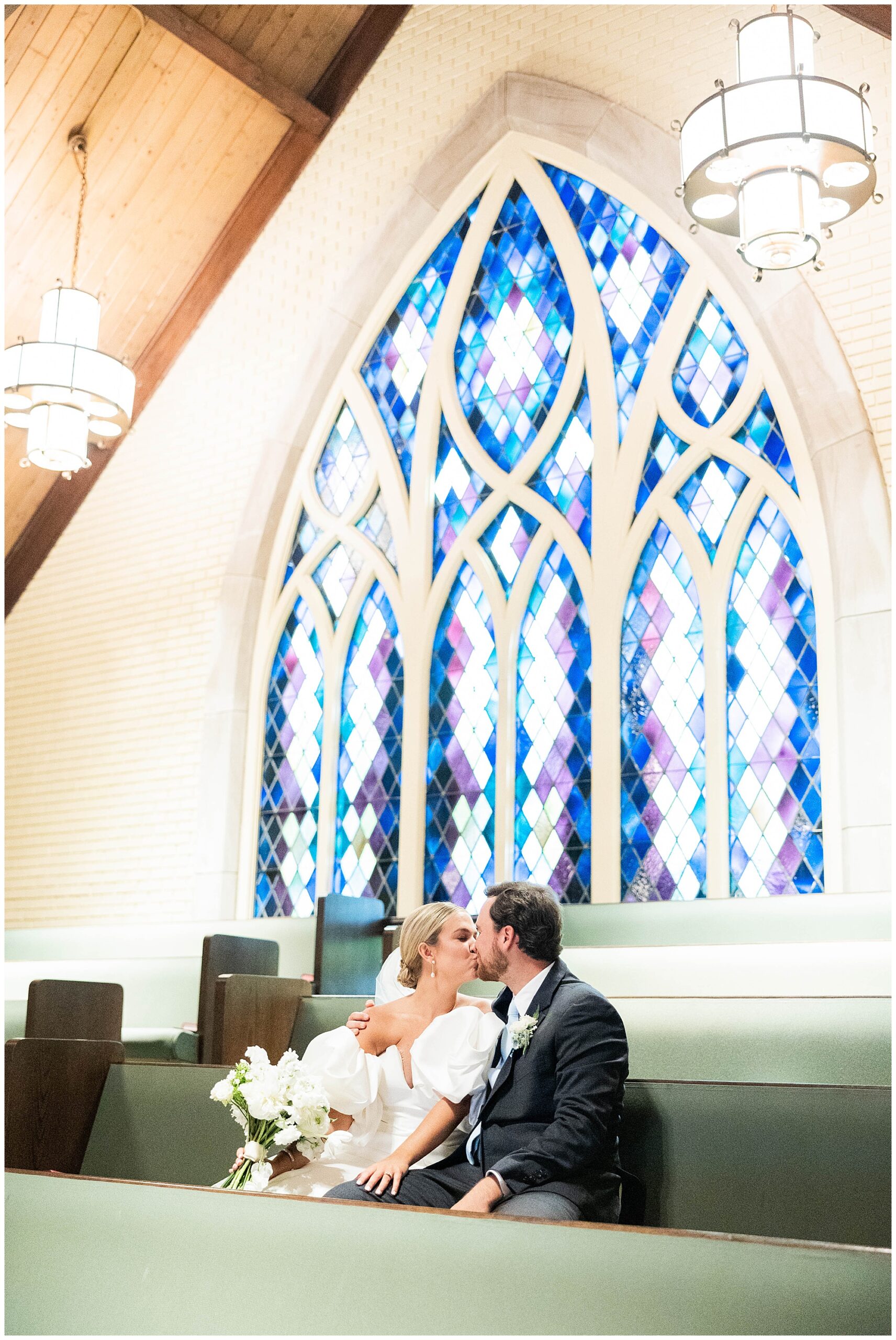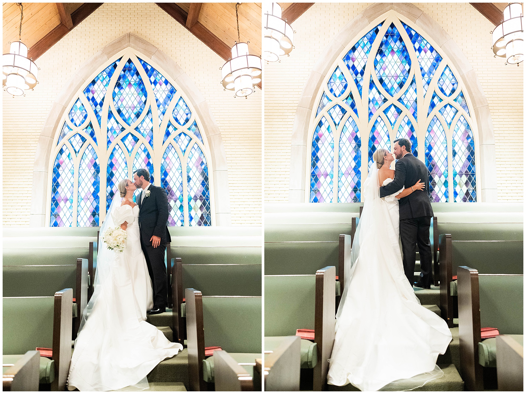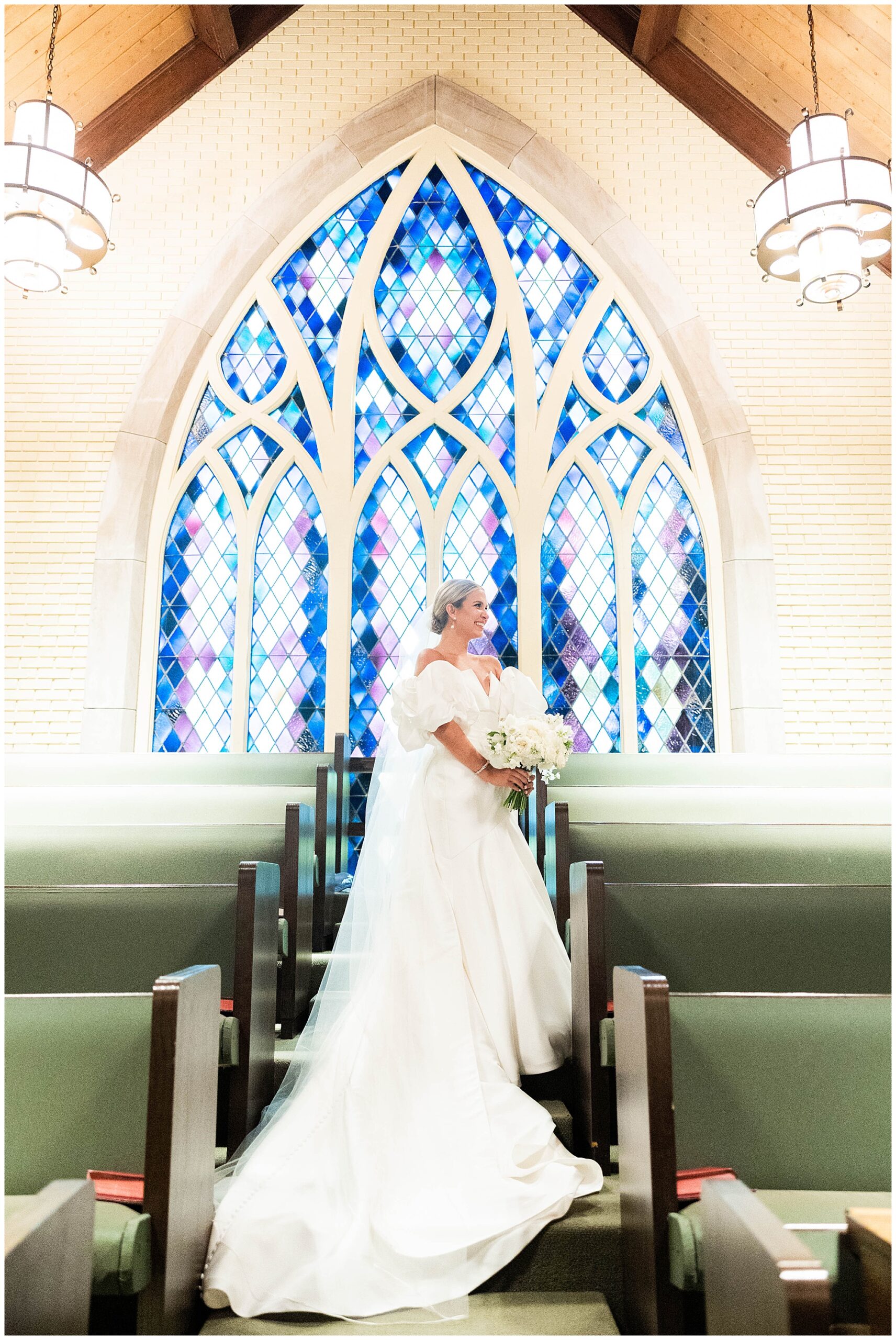 They hopped inside for a moment to exchange personal vows, then headed inside to take a few more quick photos in the sanctuary. One of the most enchanting moments of the day was Curran’s bridal portraits in front of the giant stained glass window. She had always dreamed of having her photos made in front of it, so we made those dreams come true!