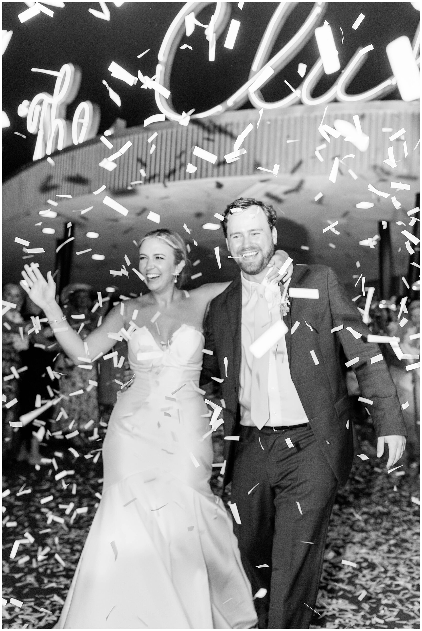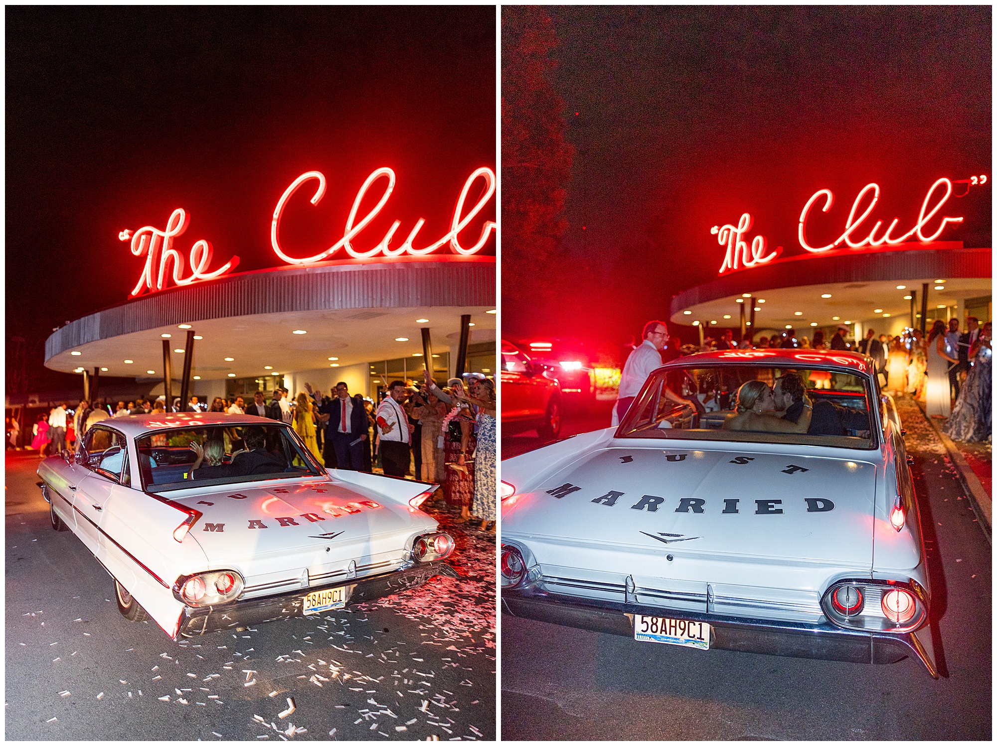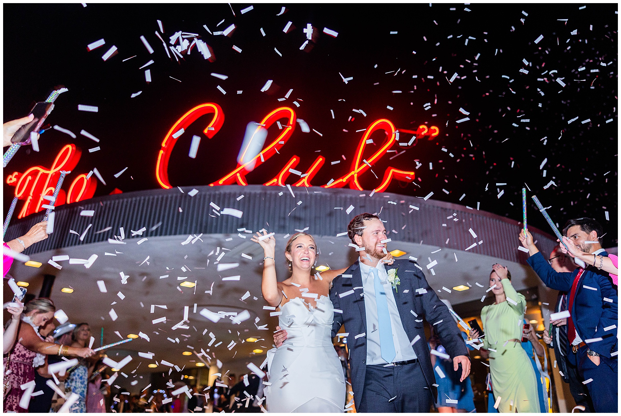 To top it all off, Ben and Curran’s grand exit was nothing short of iconic! With around 200 people still in attendance, they bid their guests farewell in a shower of confetti. The Club’s neon sign illuminated the night as a classic car whisked them away into the next chapter of their love story.