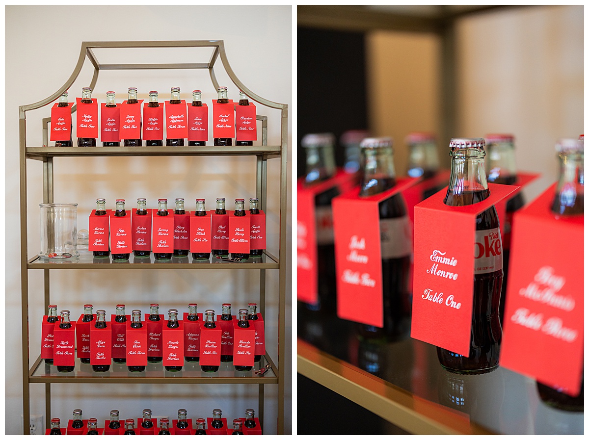 One of my favorite details was the seating chart made of personalized Coke and Diet Coke bottles for each guest. It was such a fun, thoughtful touch and so perfectly Camden and Olivia. Every corner of the venue felt curated and personal!