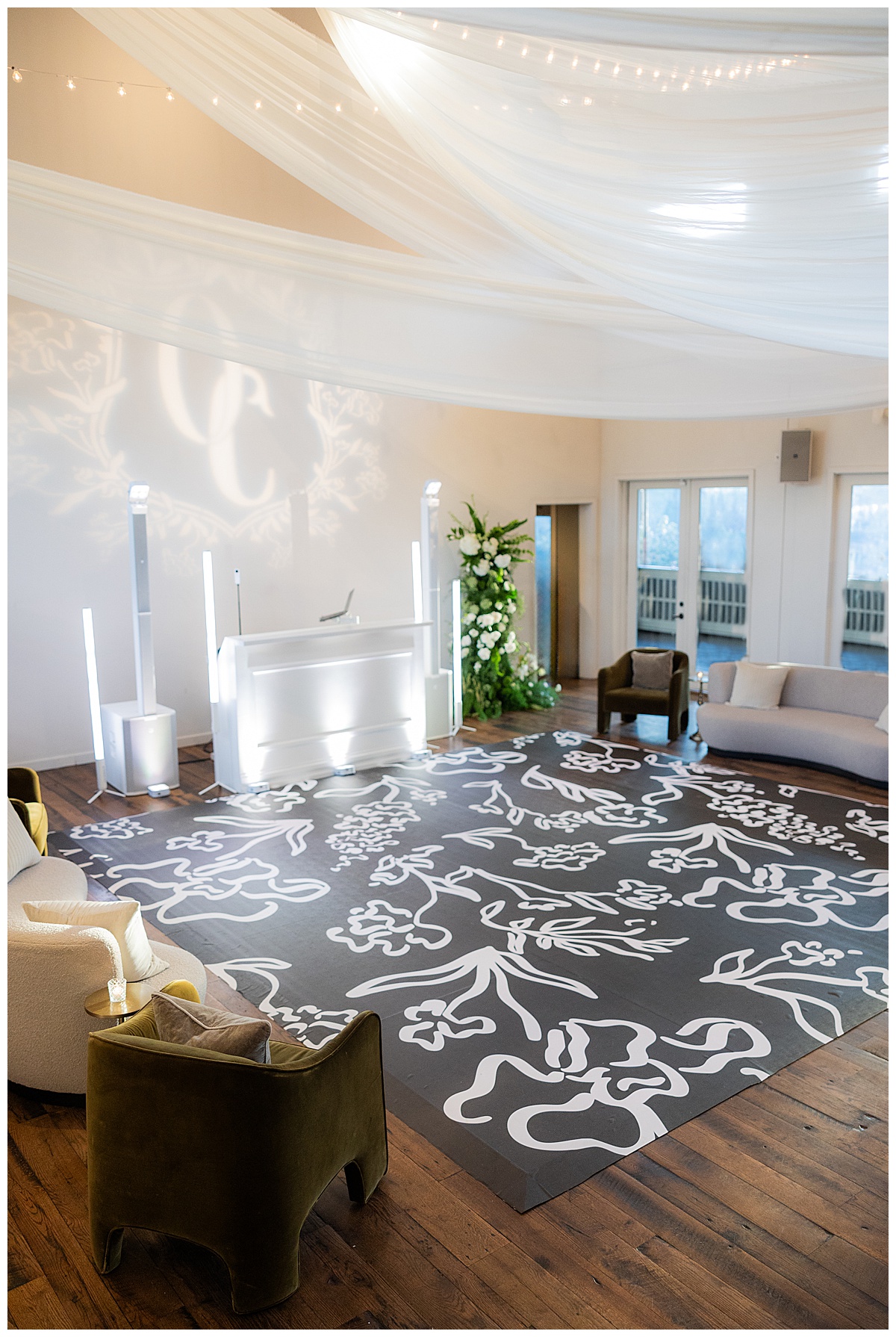 The celebration continued the coolest dance floor wrapped in a stunning custom design by Southern Event Wraps, creating such a fun and modern vibe.