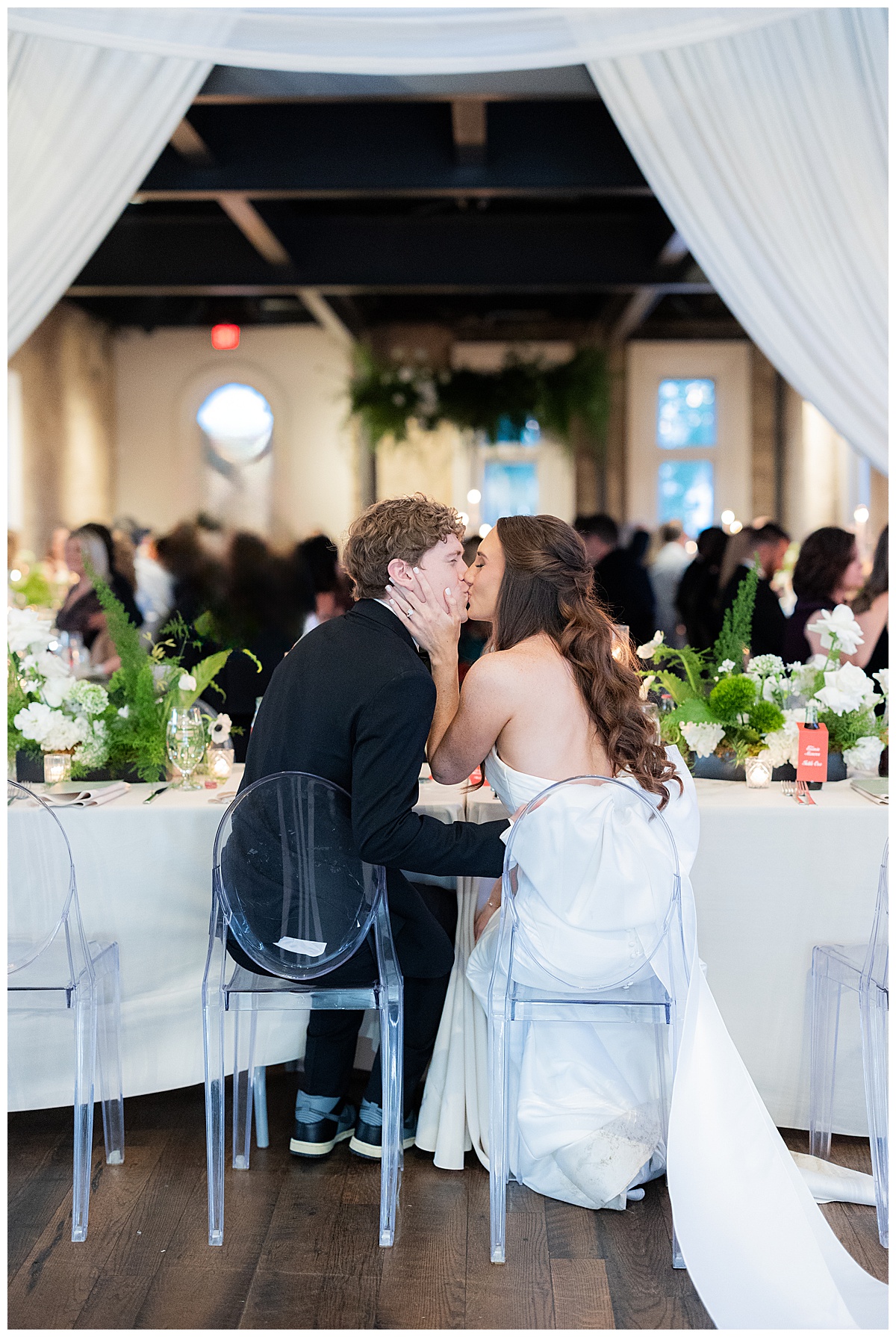 Camden and Olivia chose not to see each other until the ceremony, and the anticipation made that moment incredibly powerful. As Olivia walked down the aisle, her overskirt trailed gracefully behind her, adding so much drama and elegance as they met at the altar. The emotion in the room was palpable, full of wonder, excitement, and so much love.