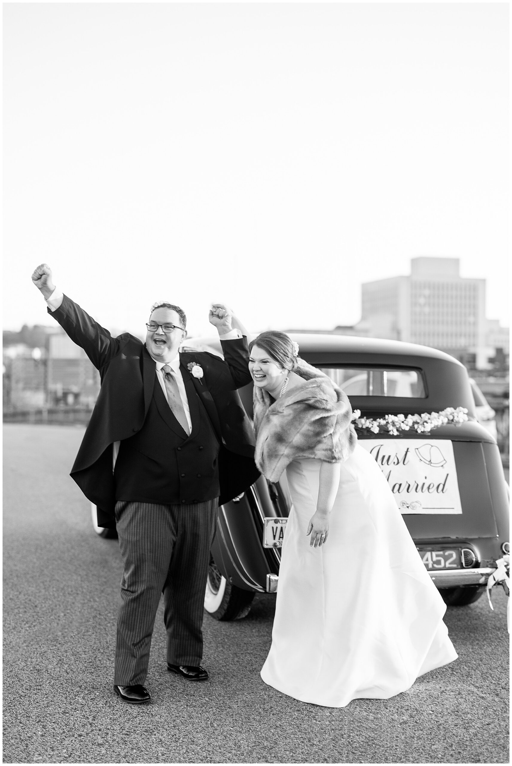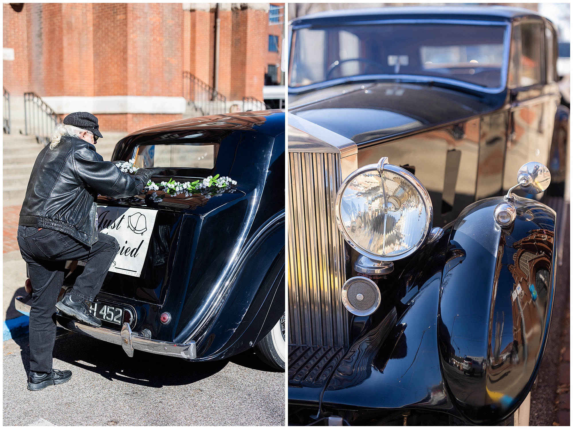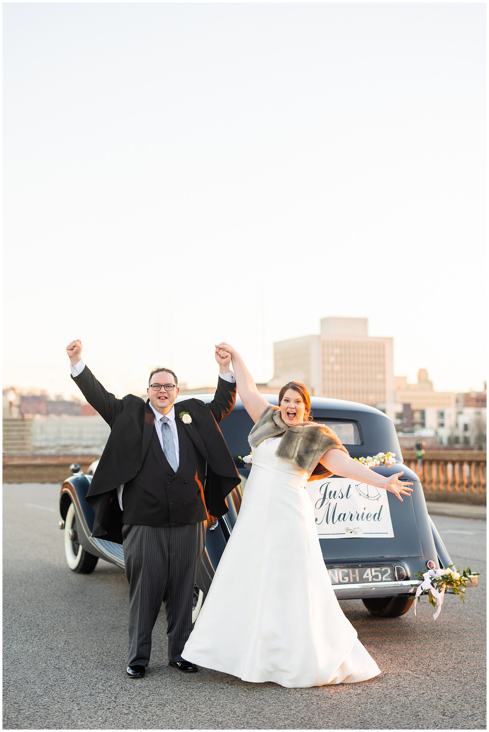 We hurried in from the cold as guests began to arrive for the 12:00pm ceremony. I took some time to set up so I’d have the perfect angle as Cameron took her first steps down the aisle. The ceremony was perfect, and the smiles on their faces couldn’t have been brighter as they exited the chapel, hopped in that classic car and sped off to The Florentine for their reception!