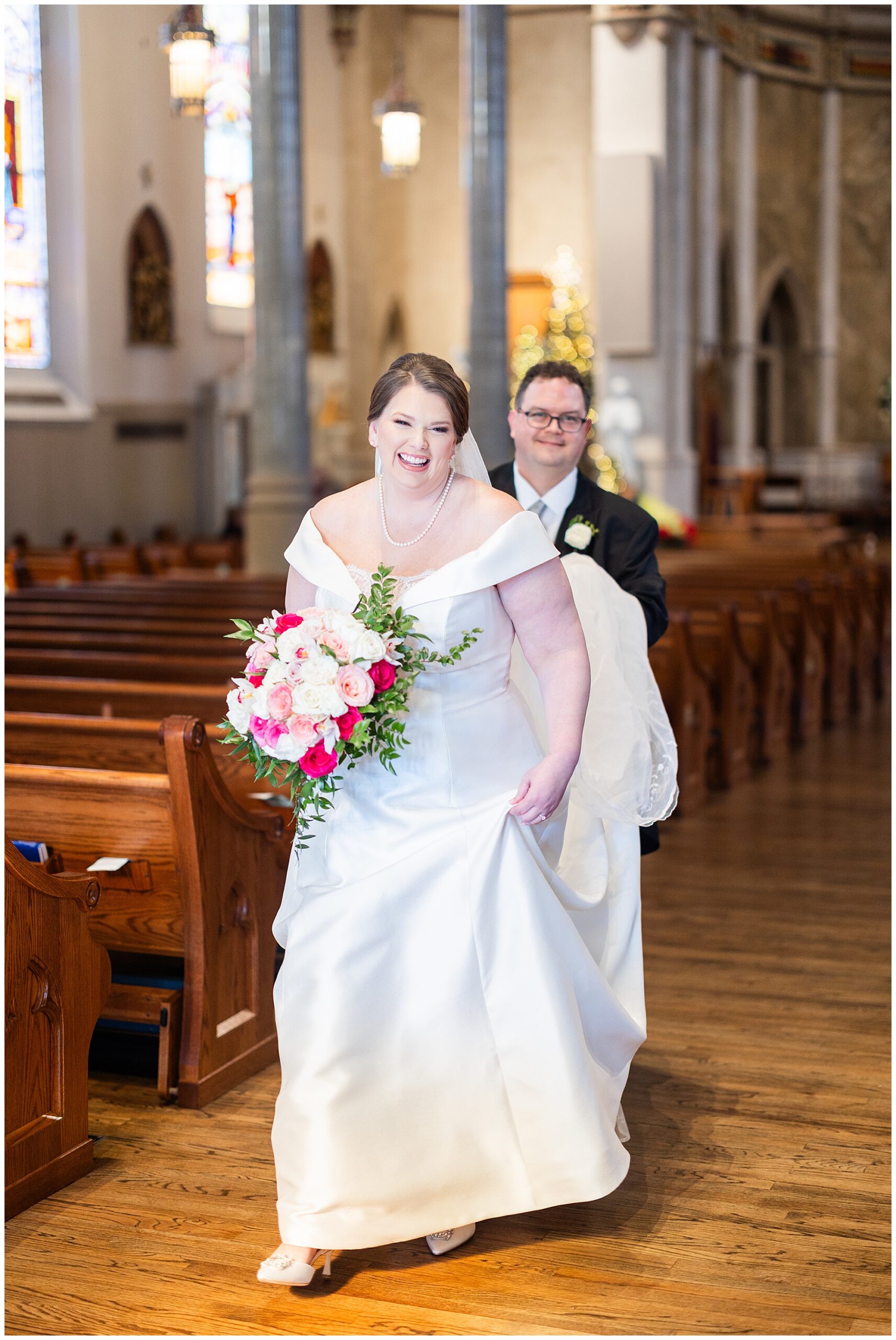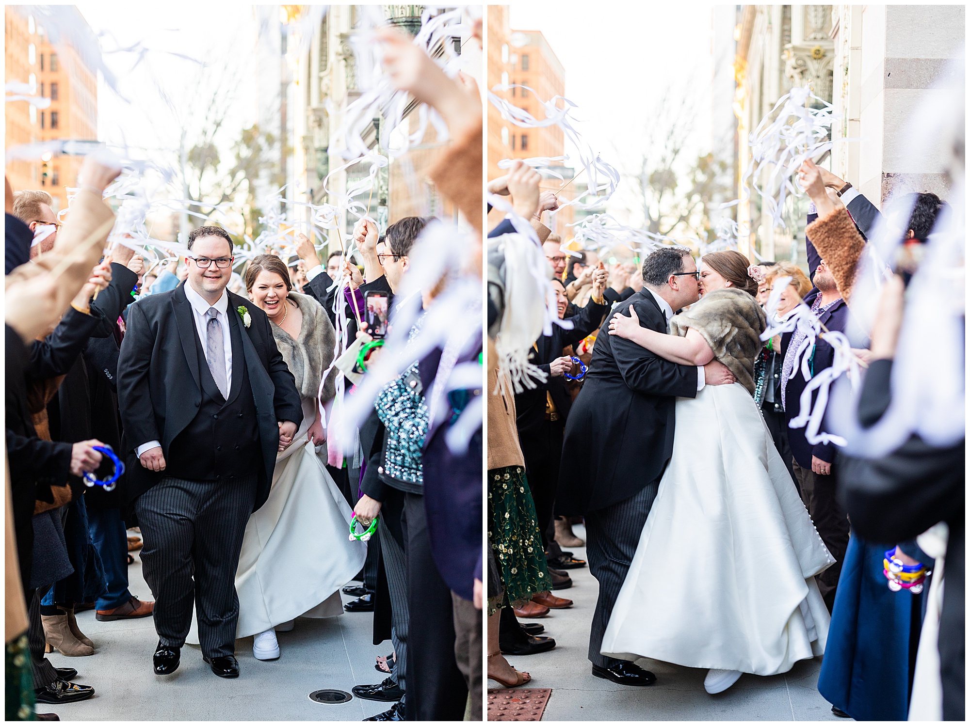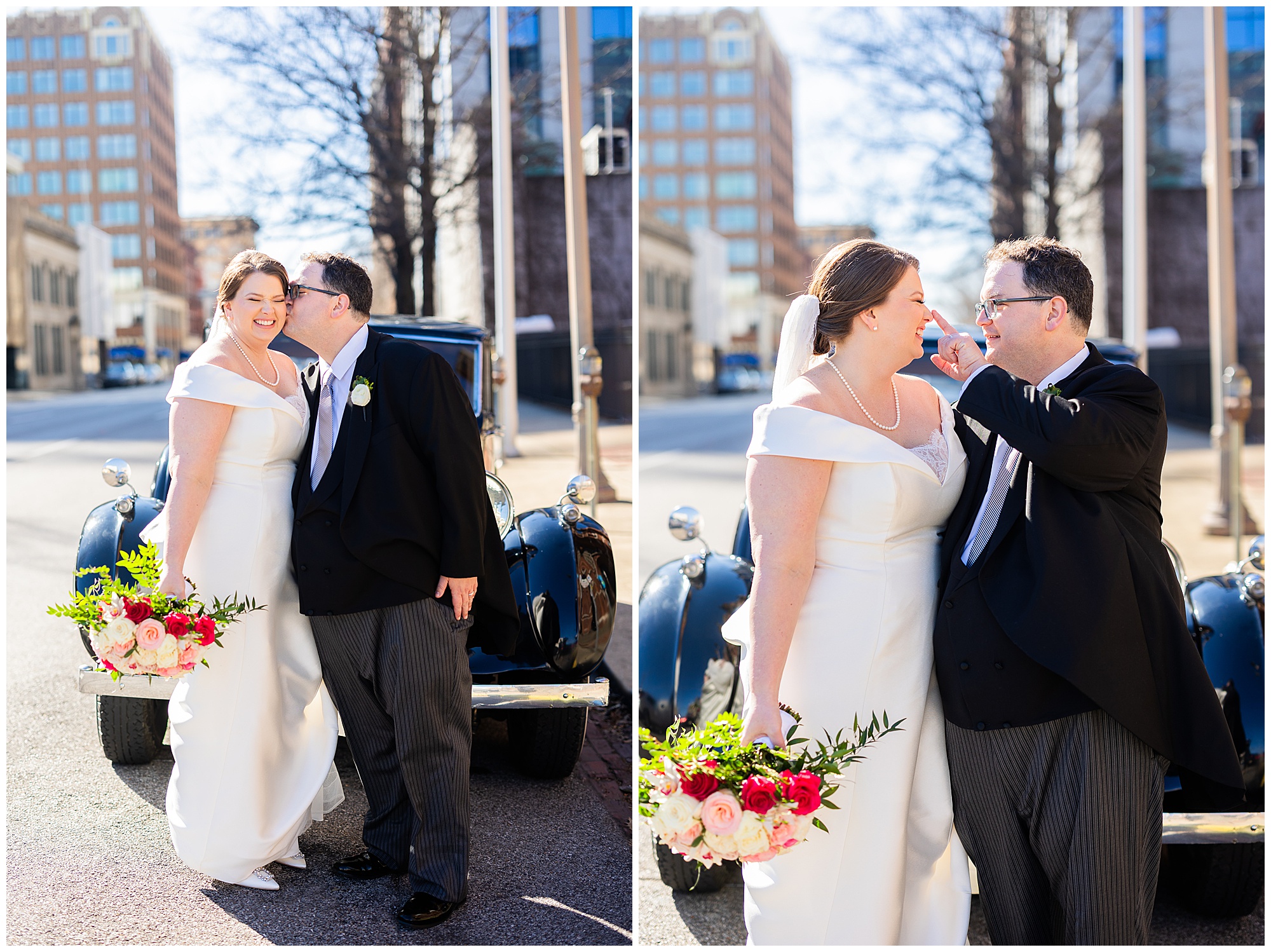 We hurried in from the cold as guests began to arrive for the 12:00pm ceremony. I took some time to set up so I’d have the perfect angle as Cameron took her first steps down the aisle. The ceremony was perfect, and the smiles on their faces couldn’t have been brighter as they exited the chapel, hopped in that classic car and sped off to The Florentine for their reception!