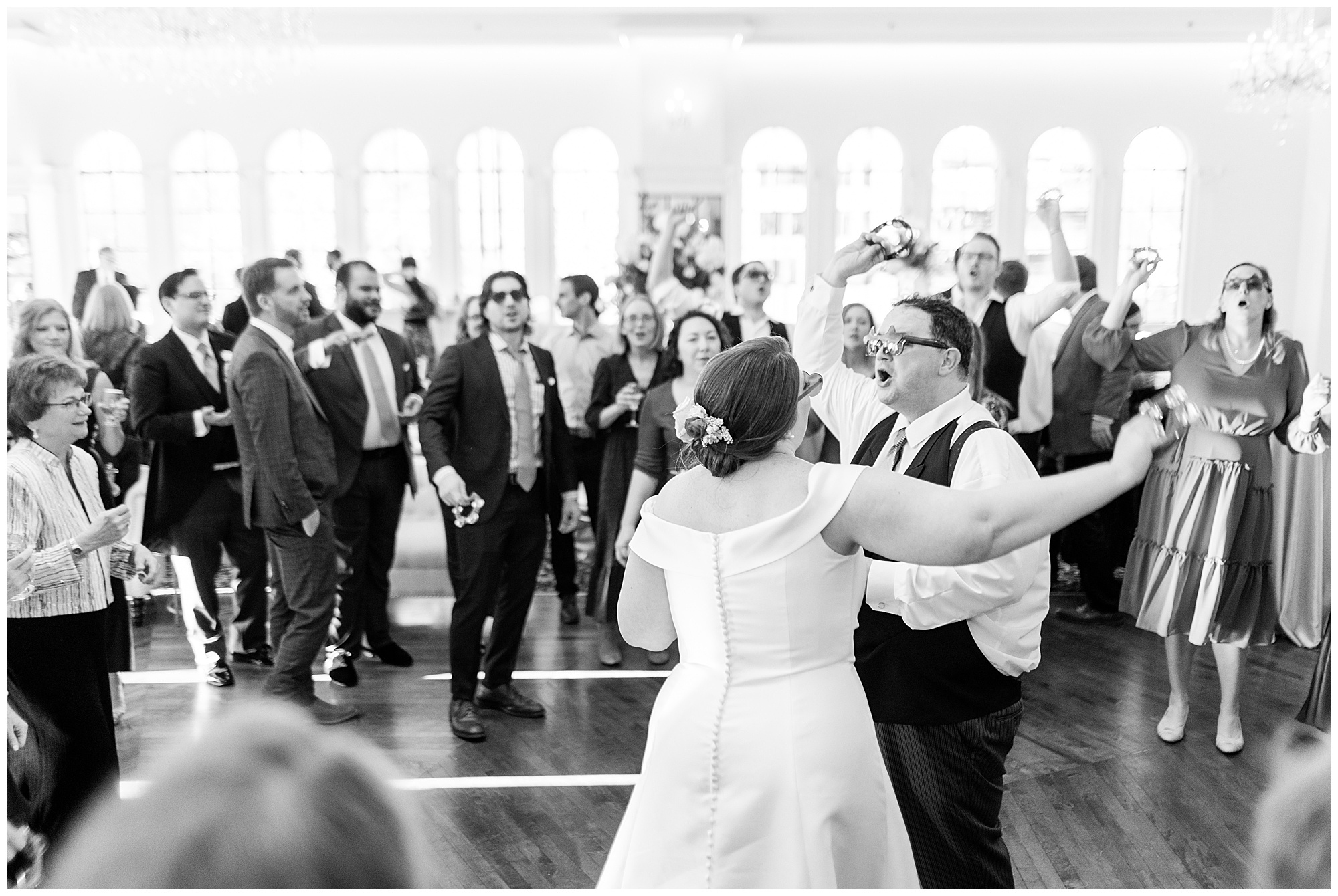 Every element at the reception reflected Cameron and Ben. The goblets on their cake table were from The Other Club, the organization that led the two to meet. The coconut cake, tambourines, fun sunglasses and Denny dog snack pass (hot dogs from Bryant Denny Stadium, in case you’re wondering) perfectly capture what those two are about: having fun and cherishing the people they love most!