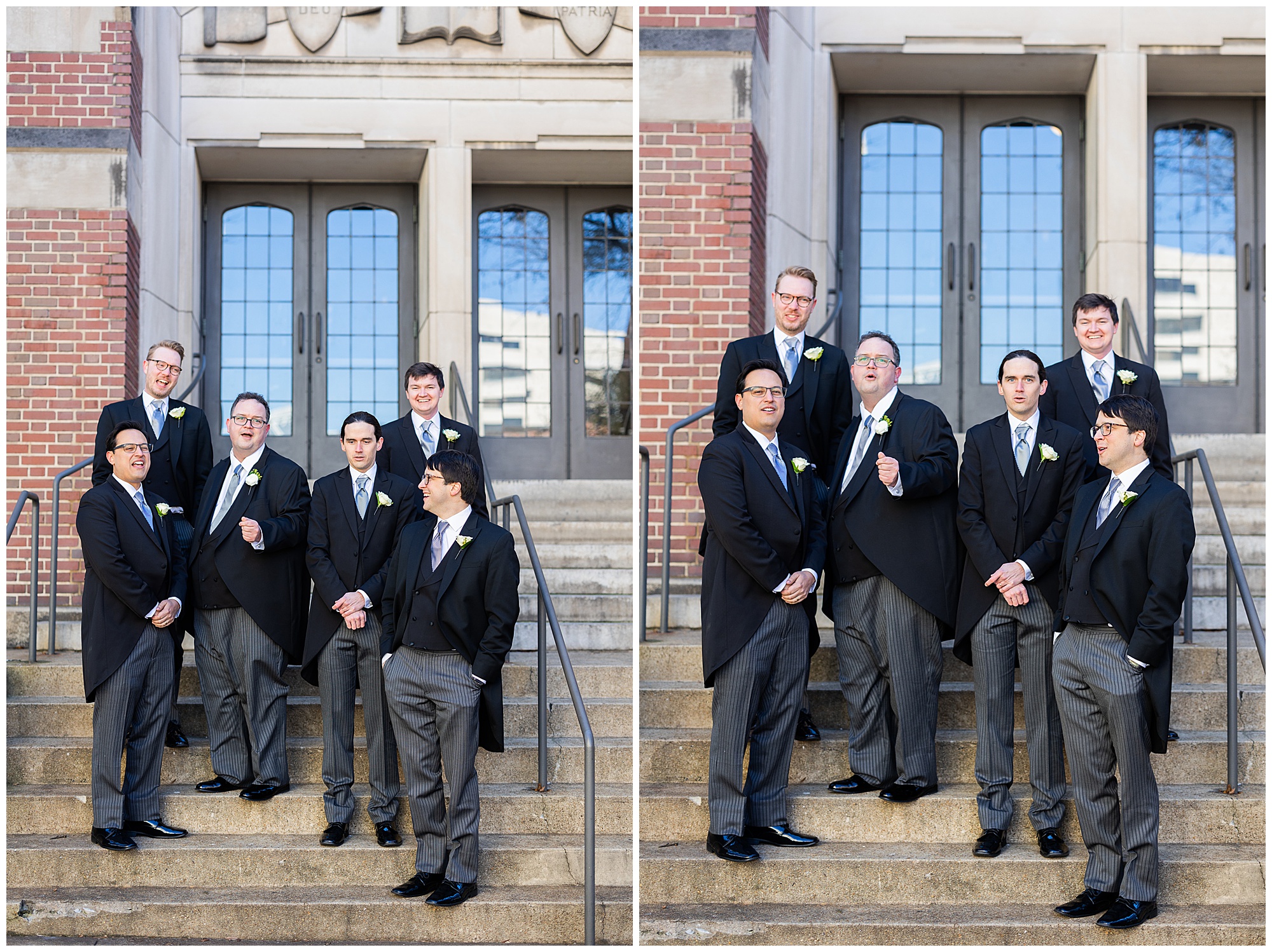 January 20th was a freezing cold day, so we did our best to keep our outdoor photos to a minimum. After warming up inside for a moment, we slipped out to the front steps for just a bit longer to snag some bridal party photos. They handled the weather like champs!
