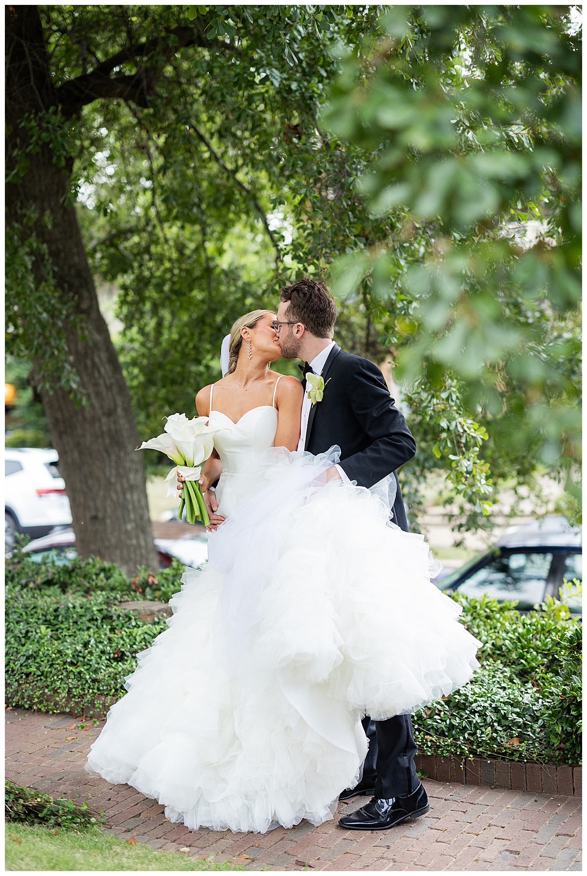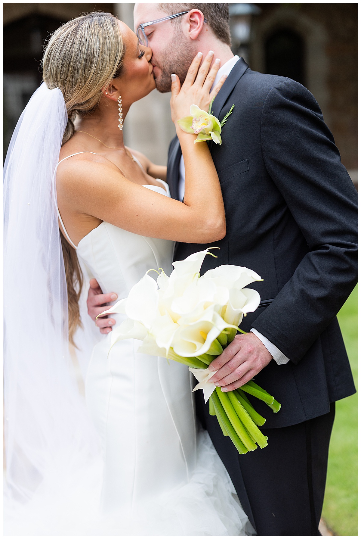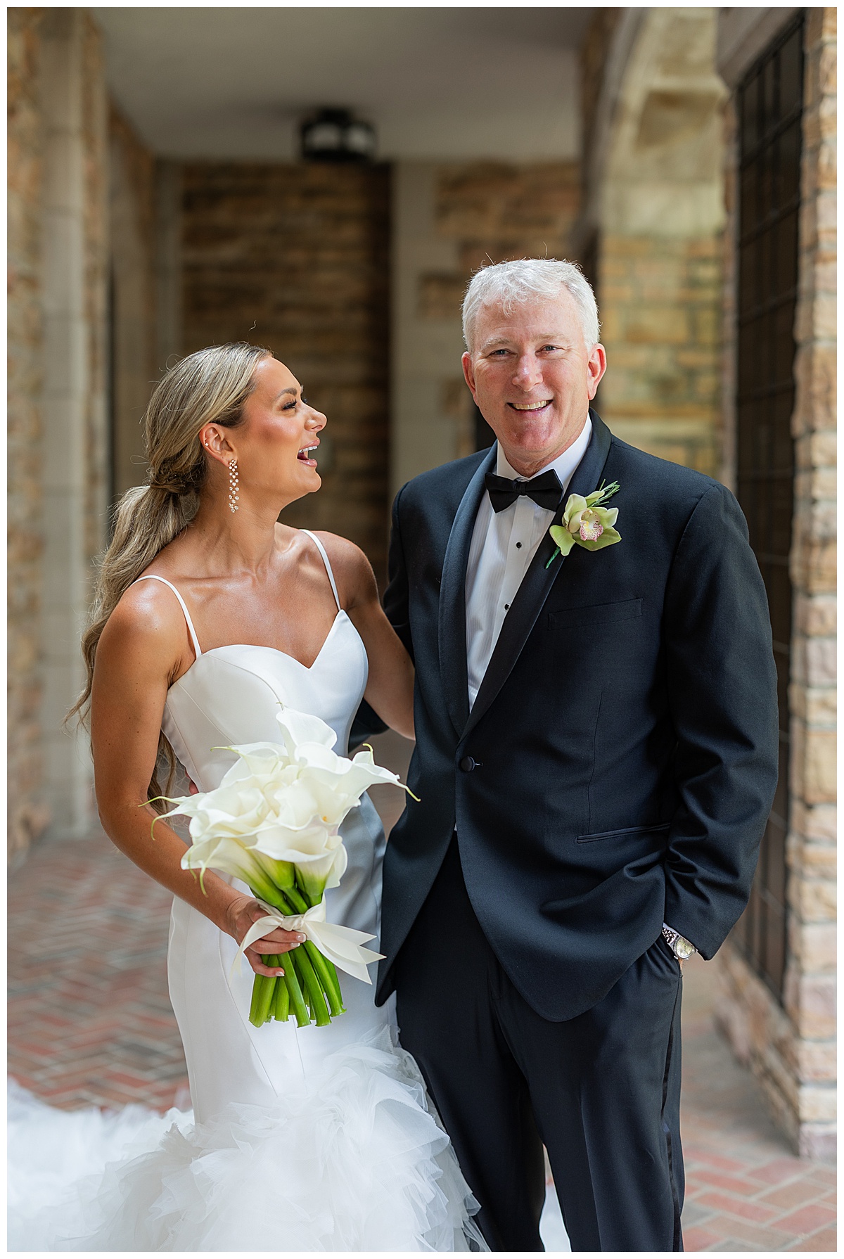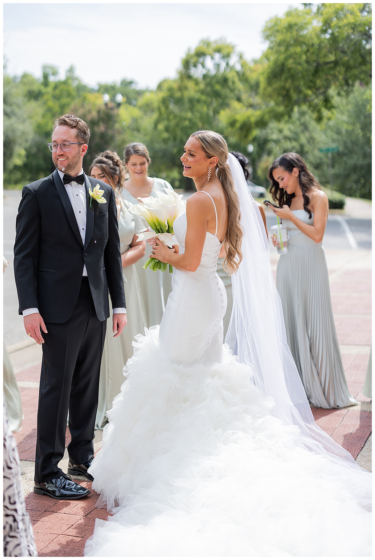 Catherine carried the most elegant bouquet of calla lilies, a perfect match for her chic satin gown and ruffled train. Will couldn’t take his eyes off her — and honestly, who could blame him? The way they smiled at each other made every moment feel effortless and full of joy.