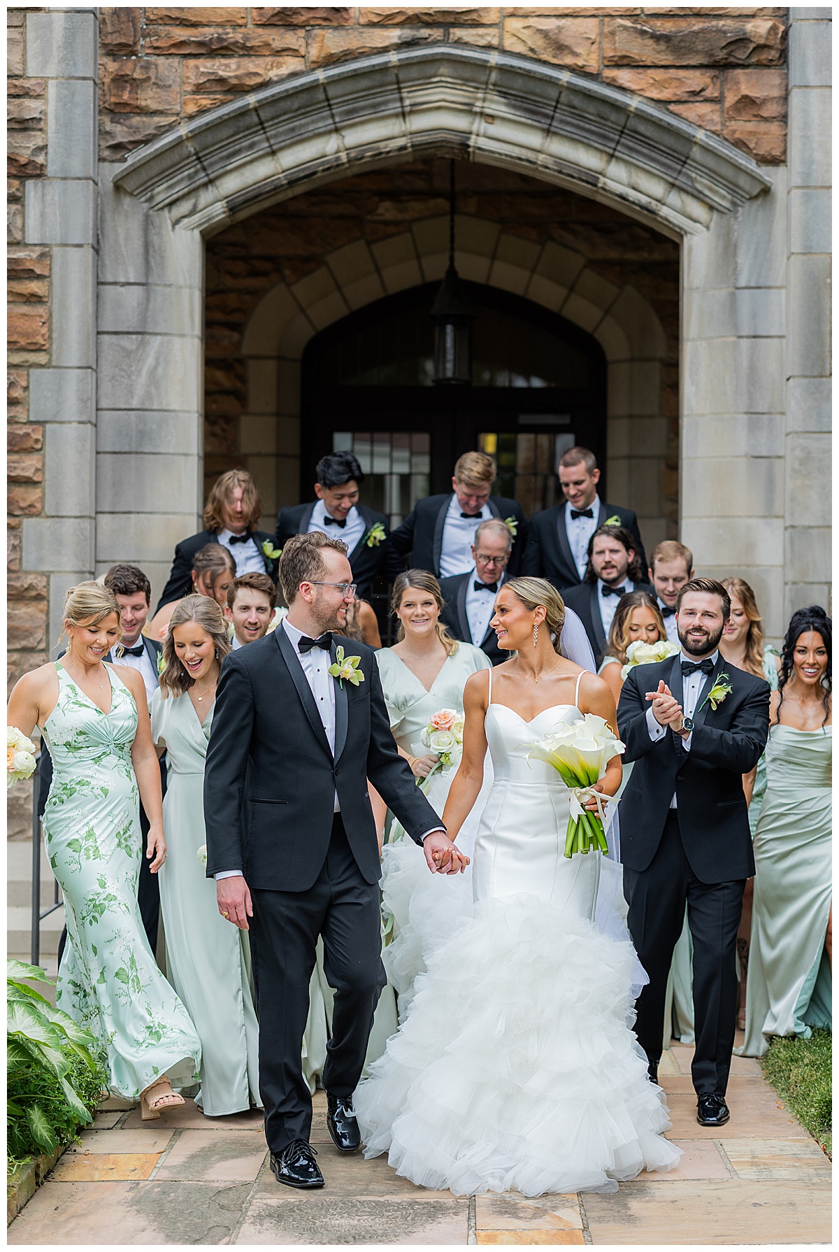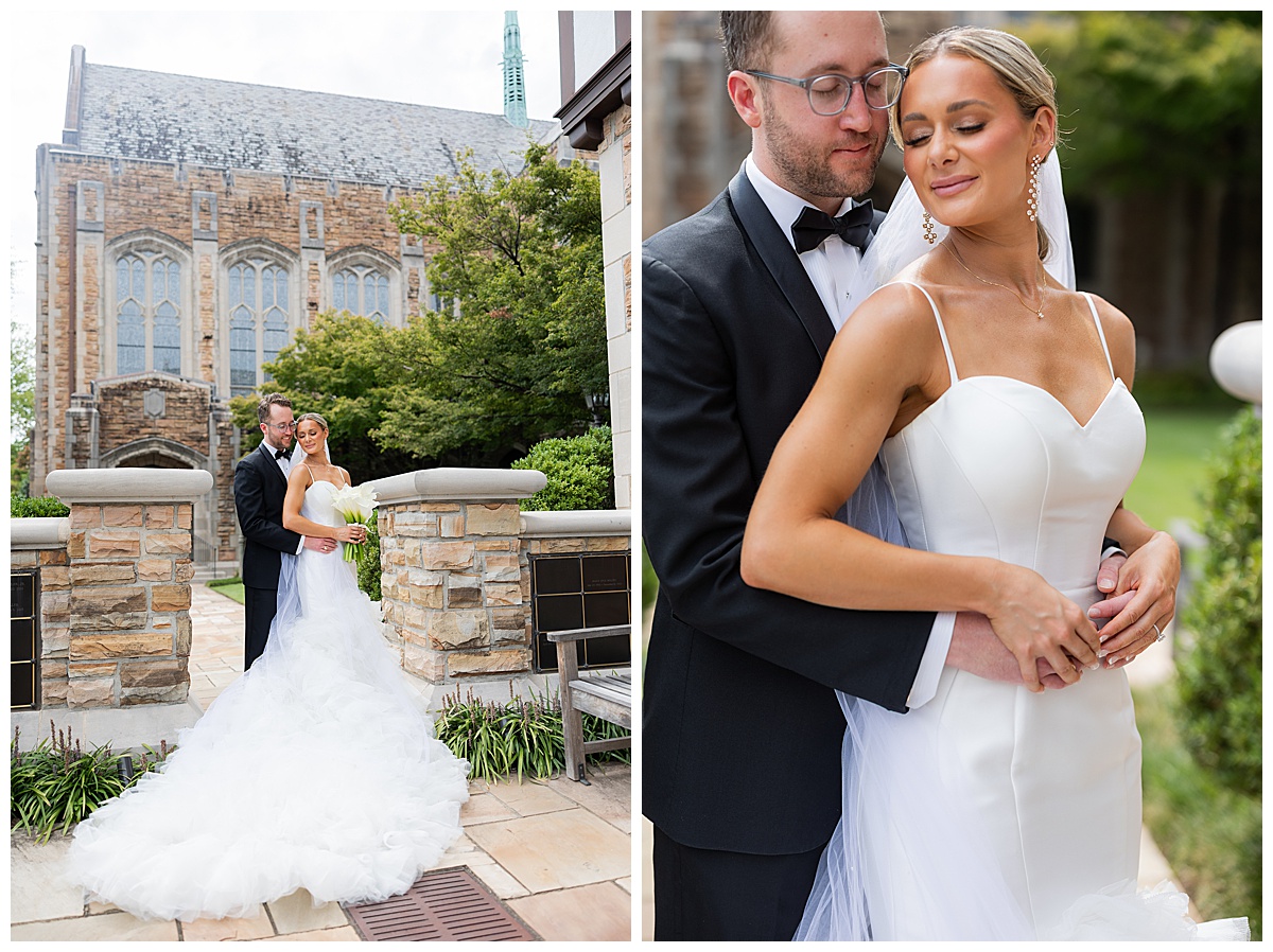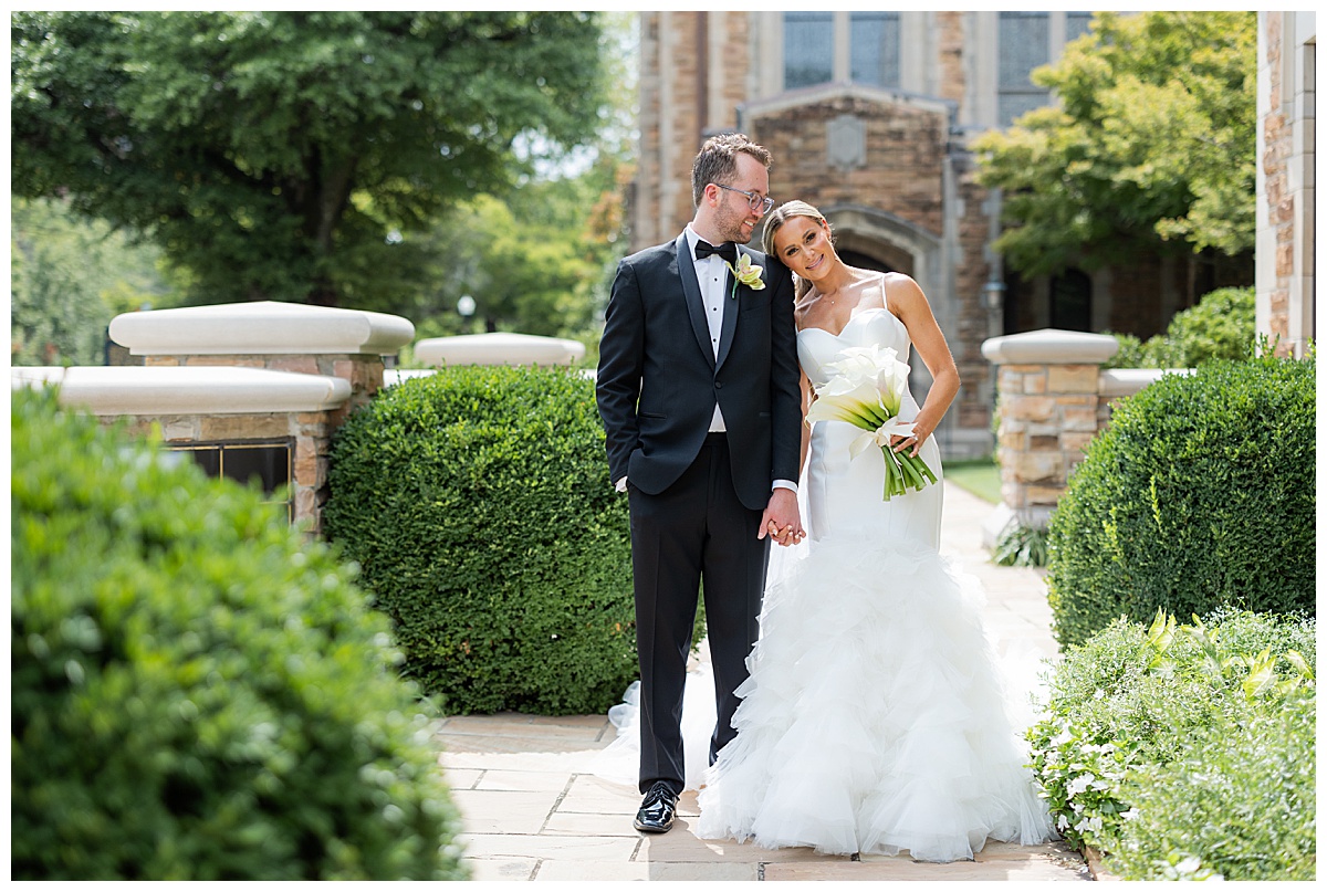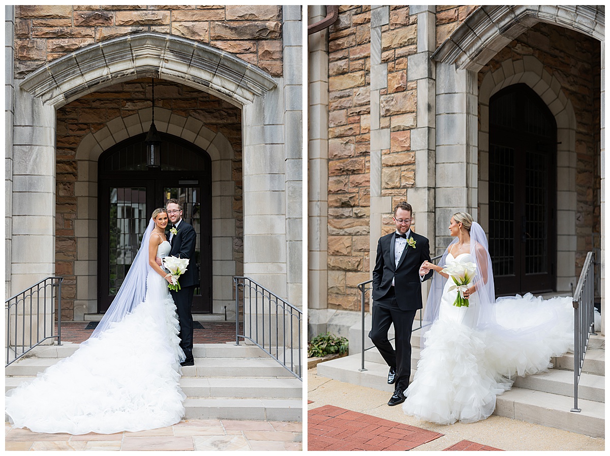 After the ceremony, we slipped away for portraits before heading to the reception. The stone arches and timeless architecture of Independent Presbyterian Church created the dreamiest backdrop. Hand in hand, laughing together, they looked like they were made for being married to each other.