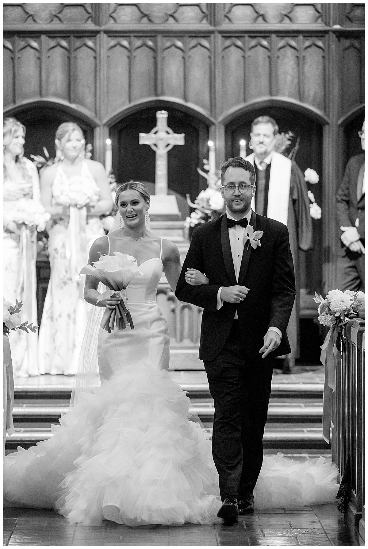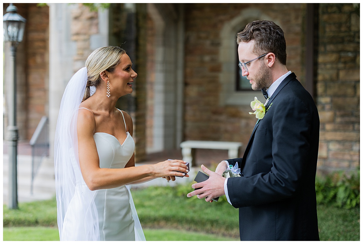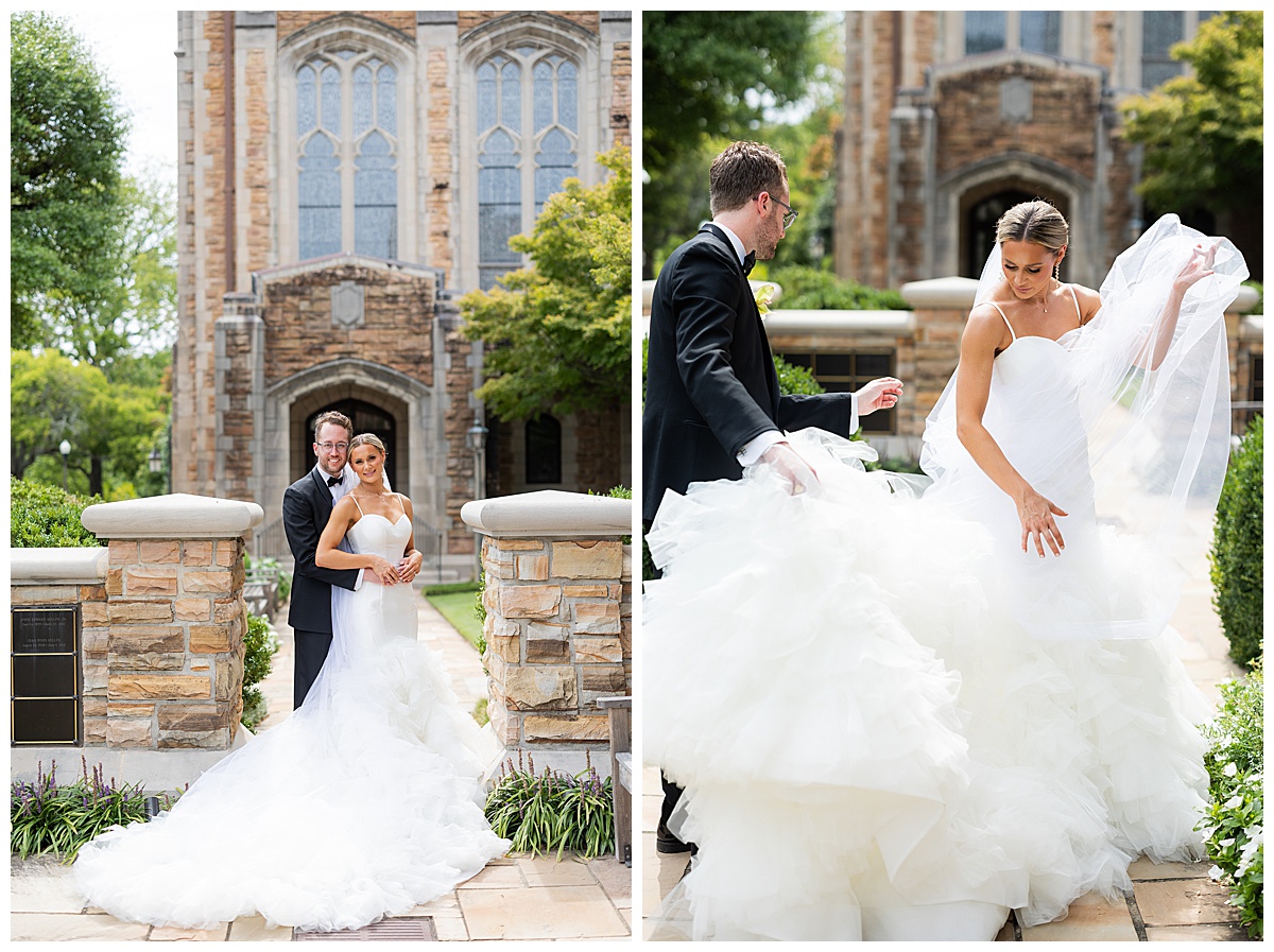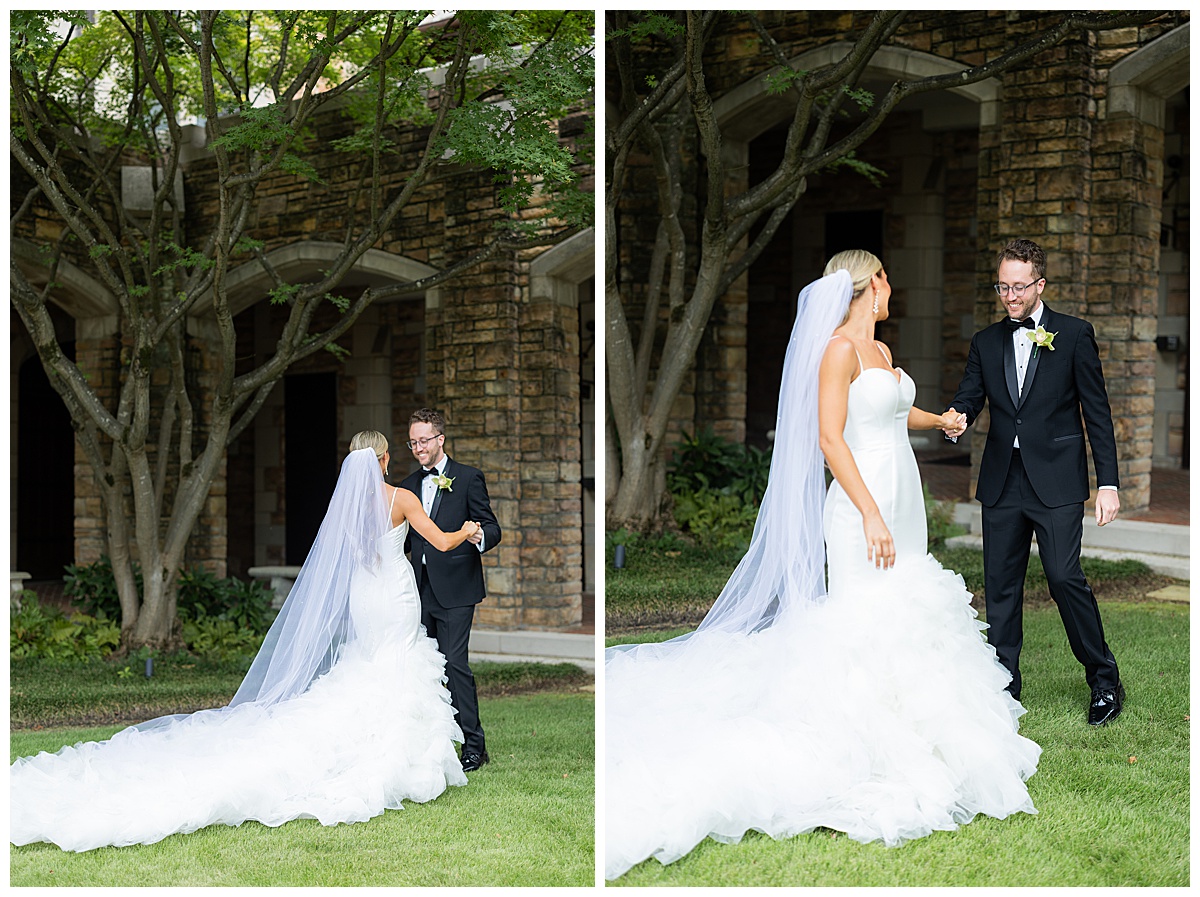 After the ceremony, we slipped away for portraits before heading to the reception. The stone arches and timeless architecture of Independent Presbyterian Church created the dreamiest backdrop. Hand in hand, laughing together, they looked like they were made for being married to each other.