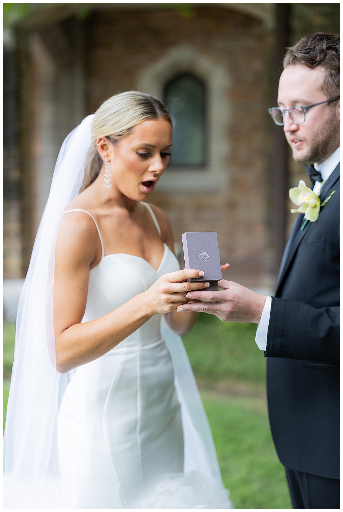 Catherine couldn’t have been more excited to see her groom. Little did she know, Will had a pretty sweet surprise up his sleeve. During their first look, he gifted Catherine a necklace featuring a family diamond, a piece she wore proudly for the rest of the day! The shock on her face said everything — it was a moment they’ll never forget.