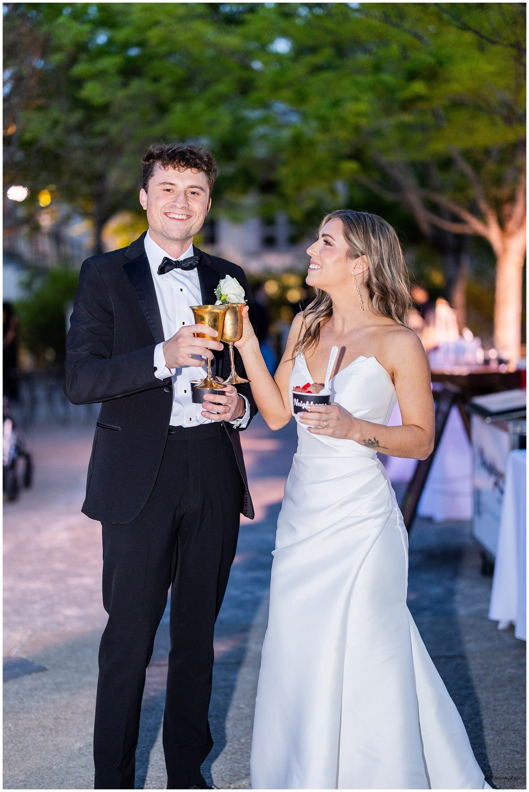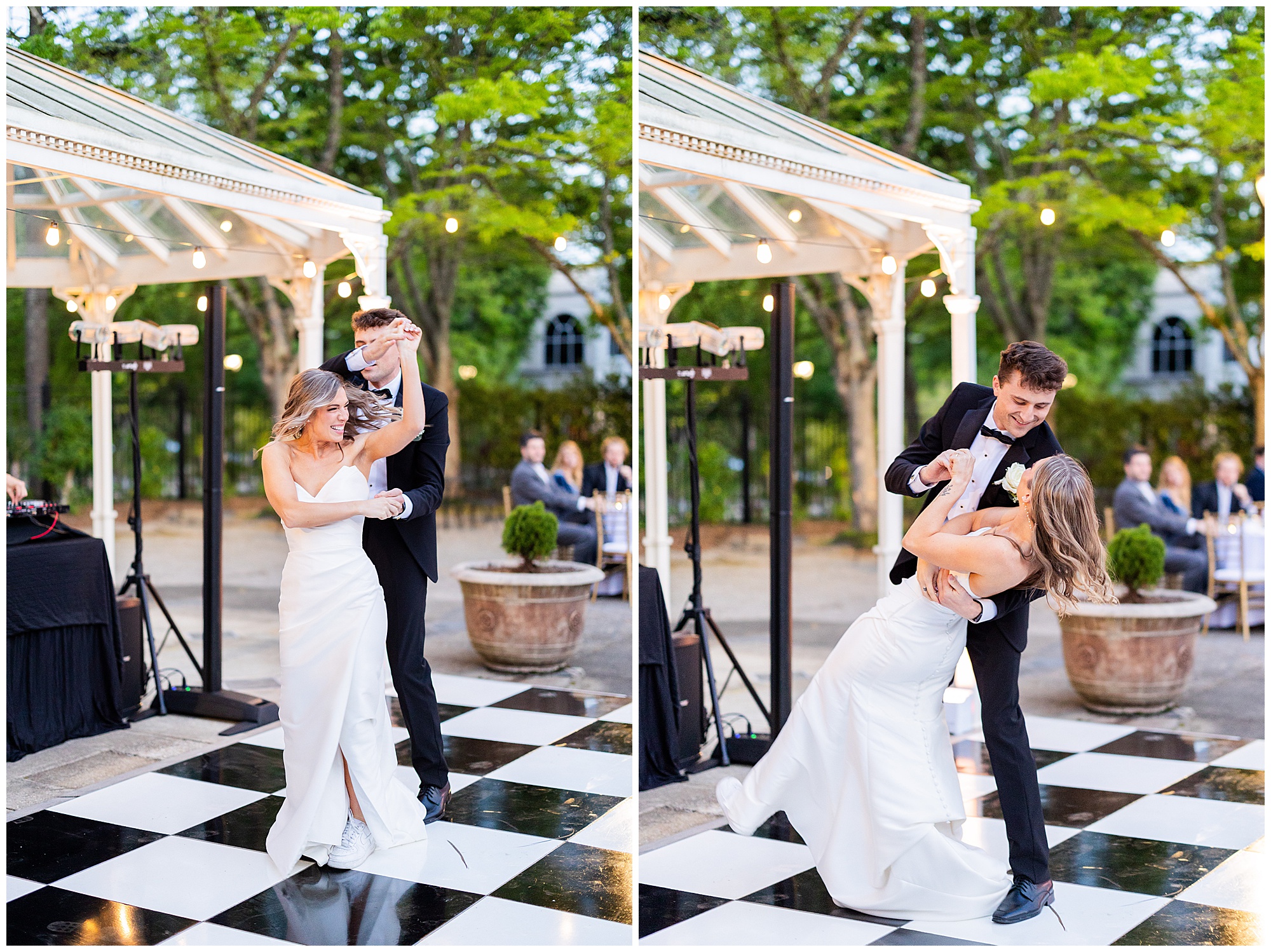 As the sun set, the reception came alive with gorgeous string lights and a lively atmosphere. Jack and Jo both know how to swing dance, and they showed their talent off during their first dance together! It was the perfect way to kick off a night filled with laughter and beautiful memories.