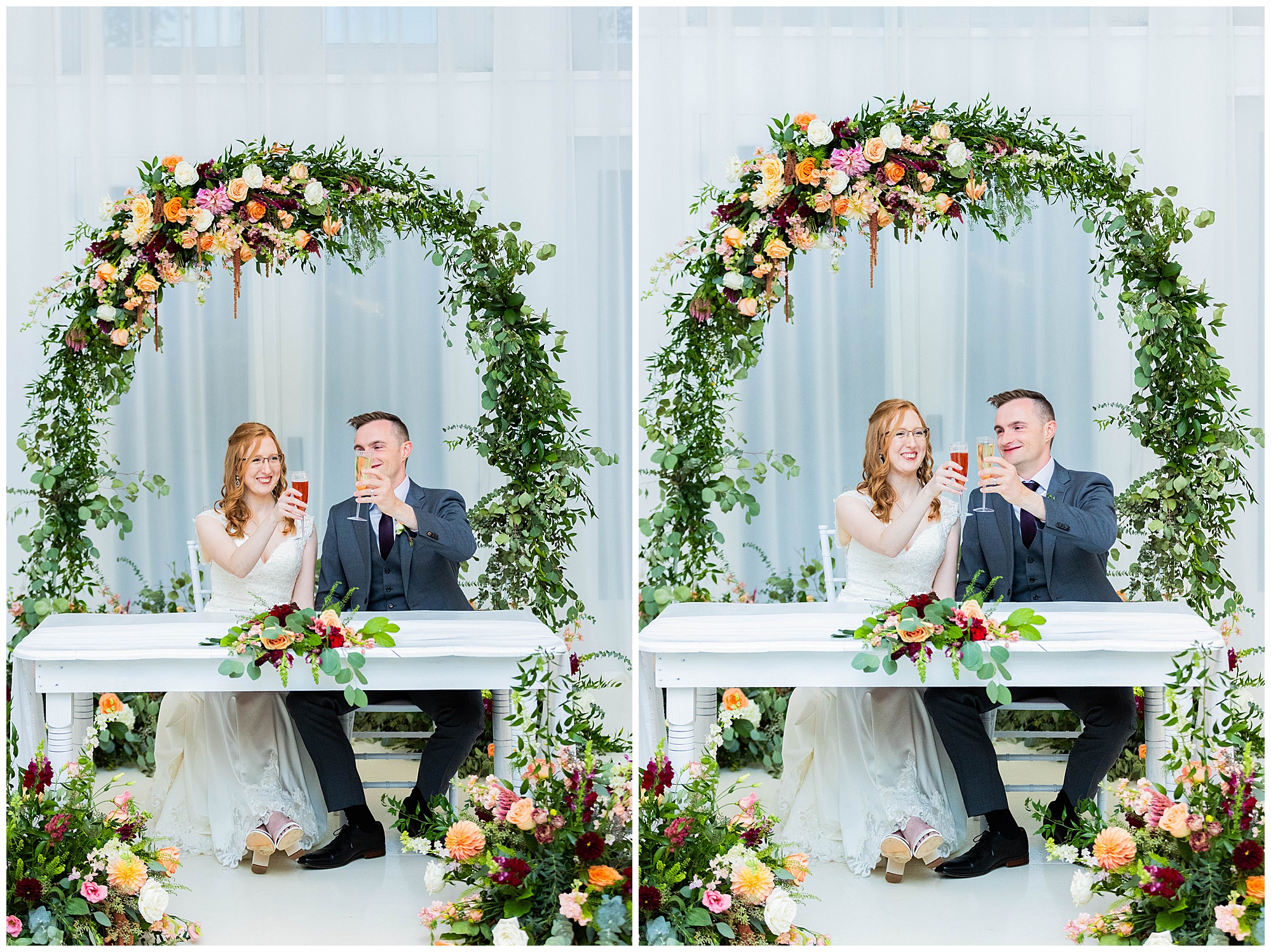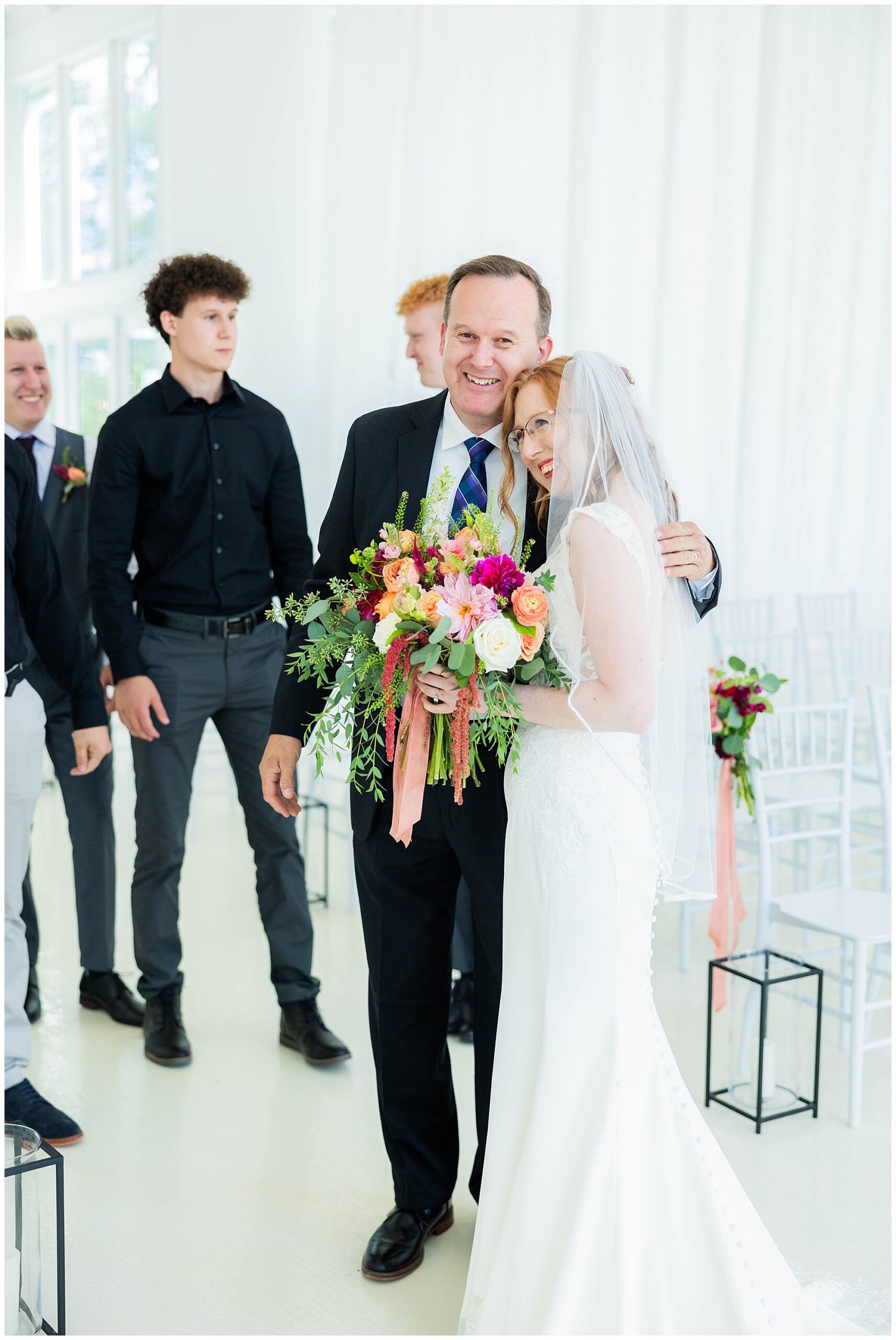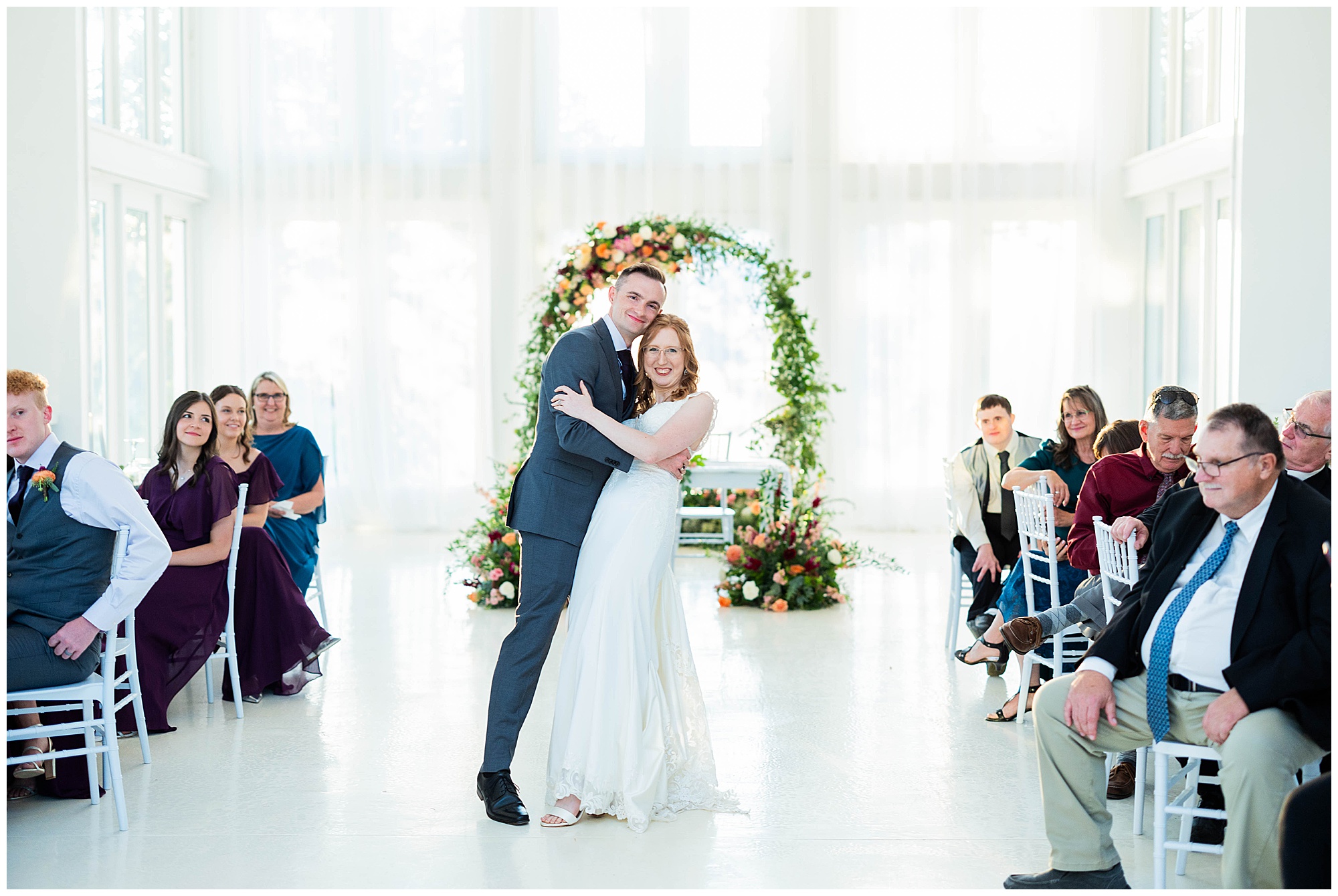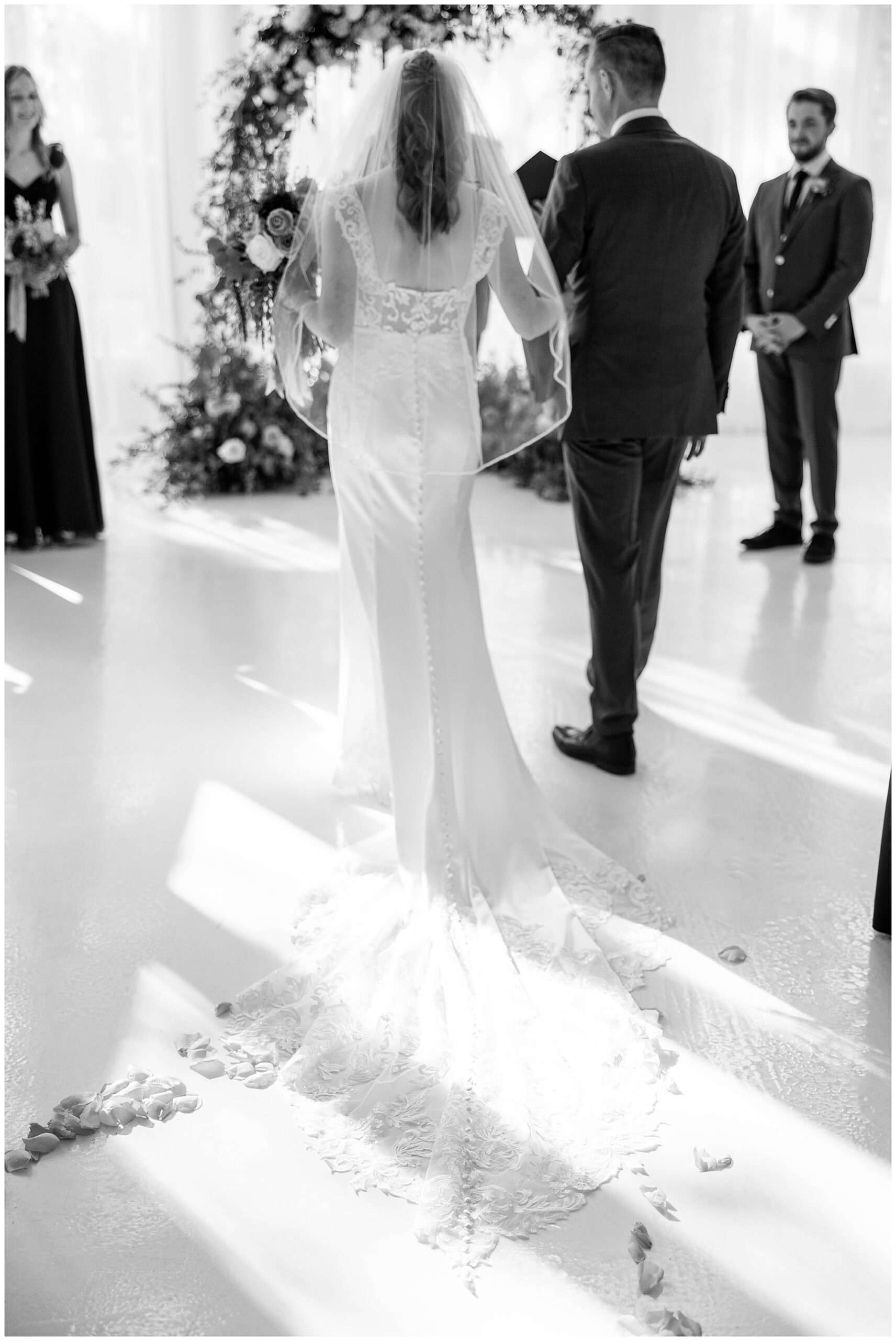 The Glass House looked stunning with the sheer, ethereal white draping and all that light streaming through the windows. And the florals!!! Oh, the florals were absolutely breathtaking. This wedding couldn’t have been more beautiful!