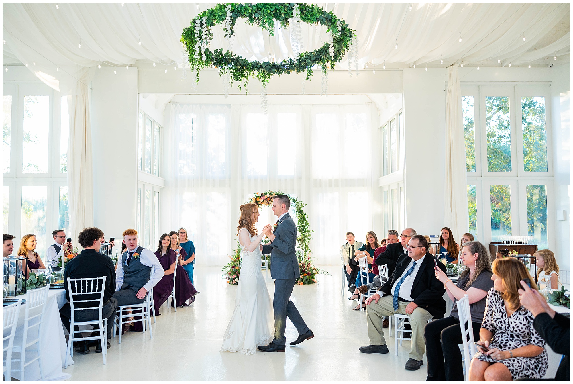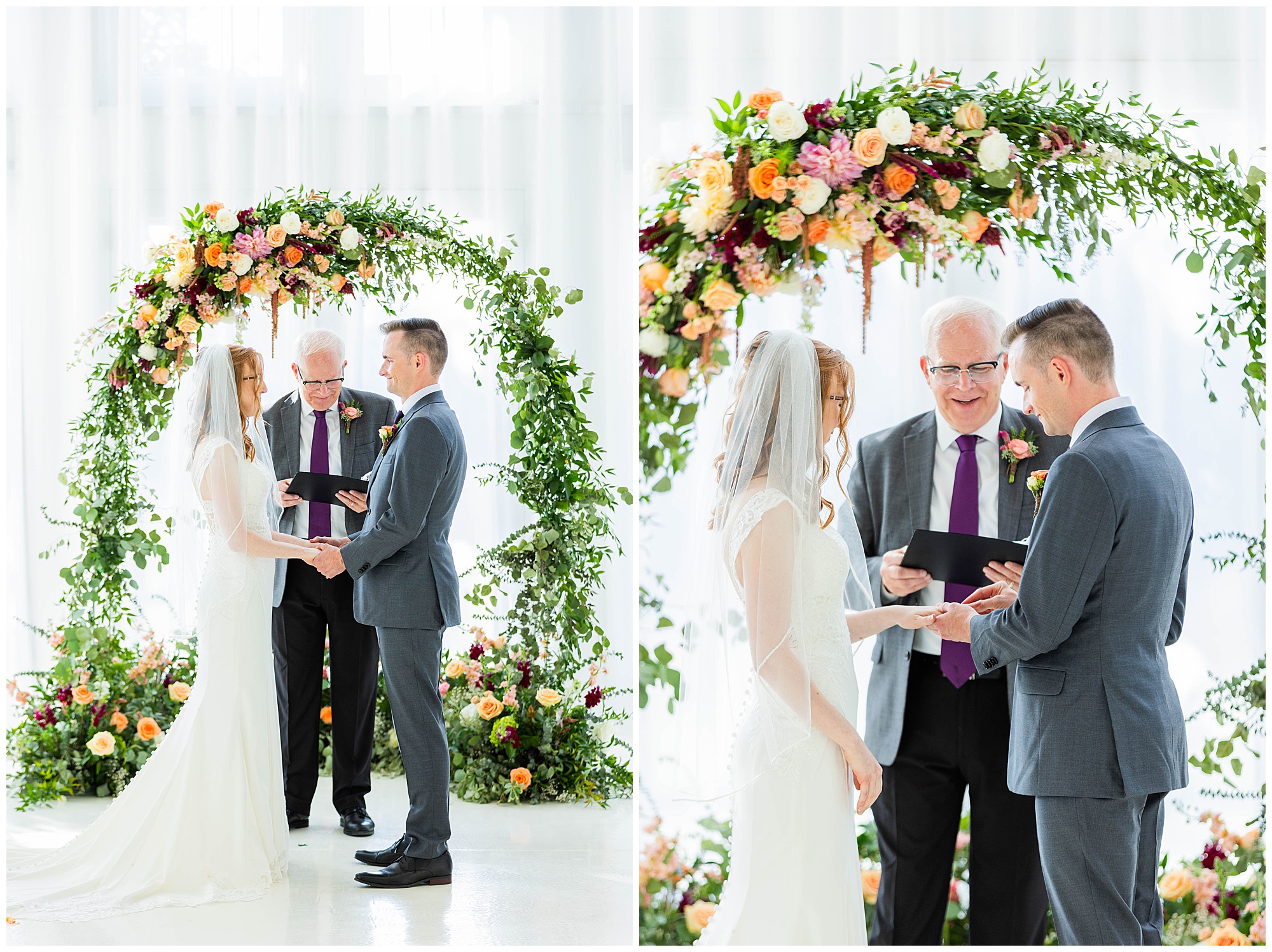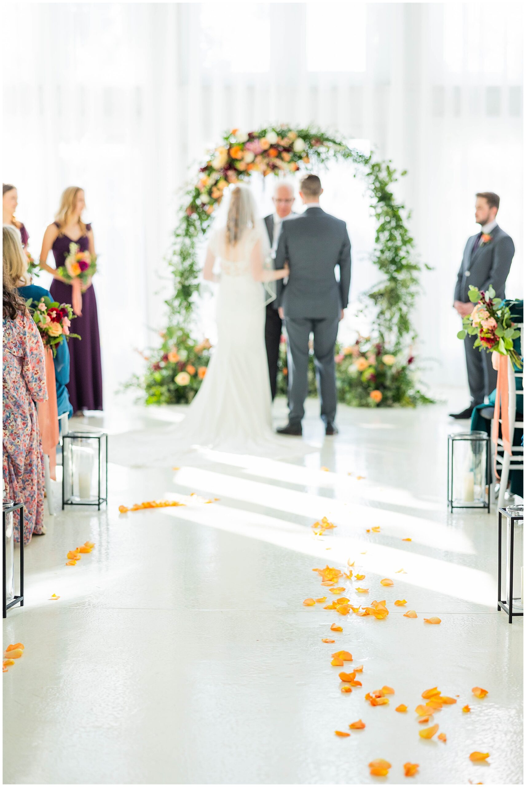 The Glass House looked stunning with the sheer, ethereal white draping and all that light streaming through the windows. And the florals!!! Oh, the florals were absolutely breathtaking. This wedding couldn’t have been more beautiful!