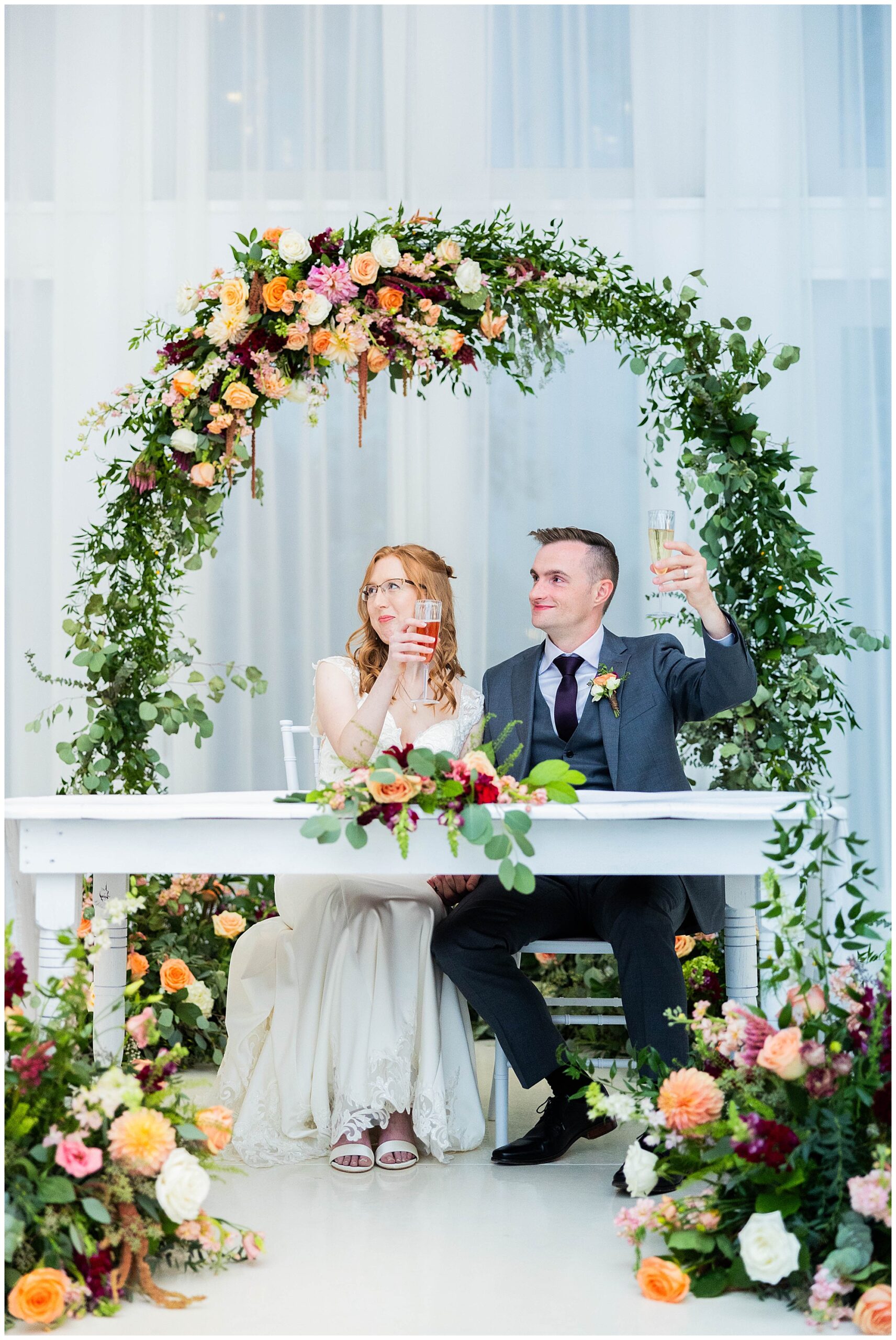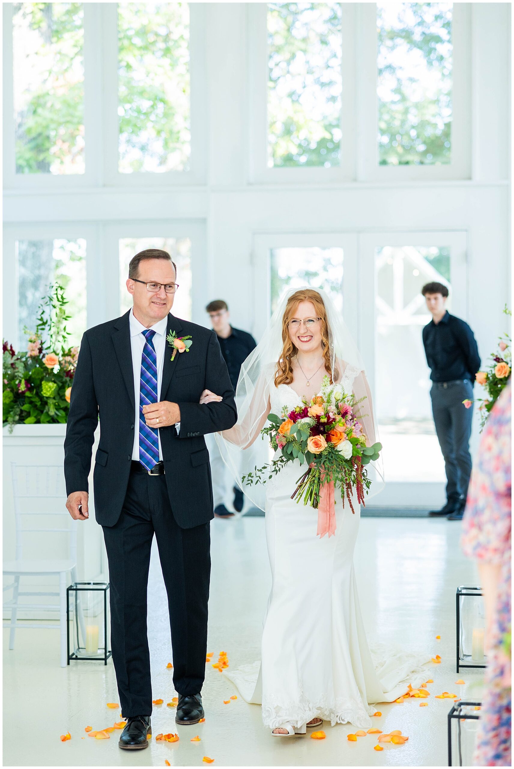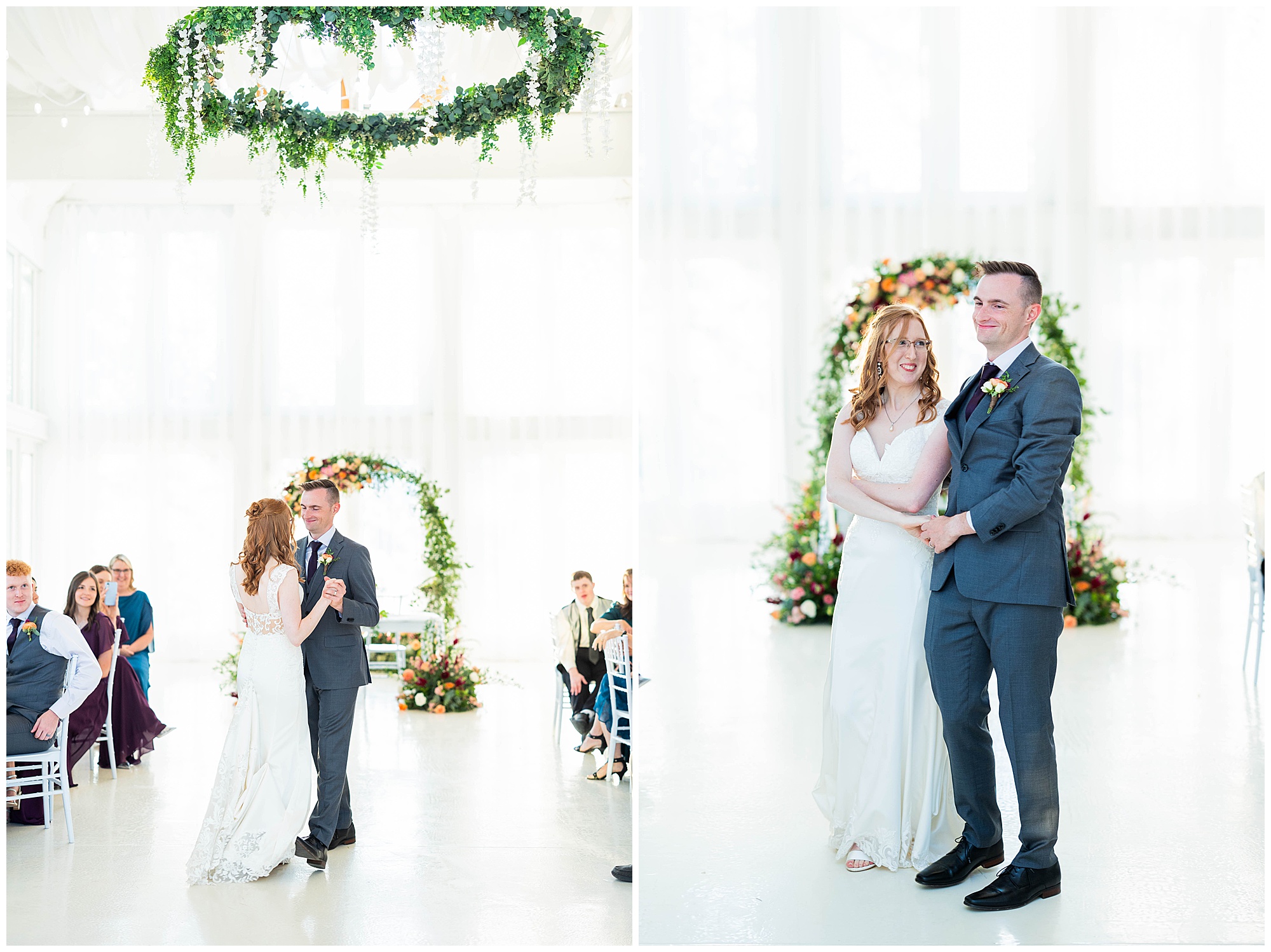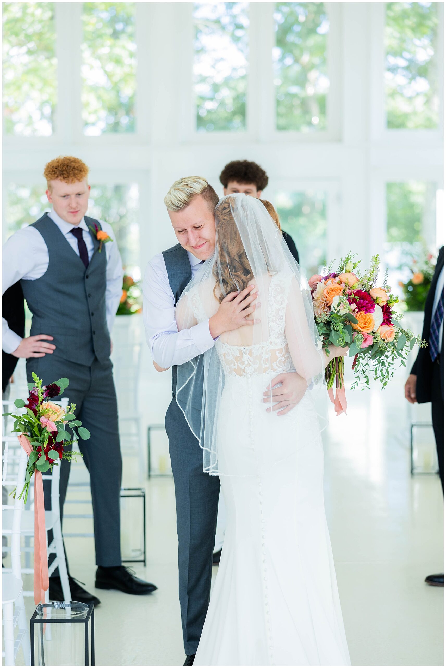 The Glass House looked stunning with the sheer, ethereal white draping and all that light streaming through the windows. And the florals!!! Oh, the florals were absolutely breathtaking. This wedding couldn’t have been more beautiful!