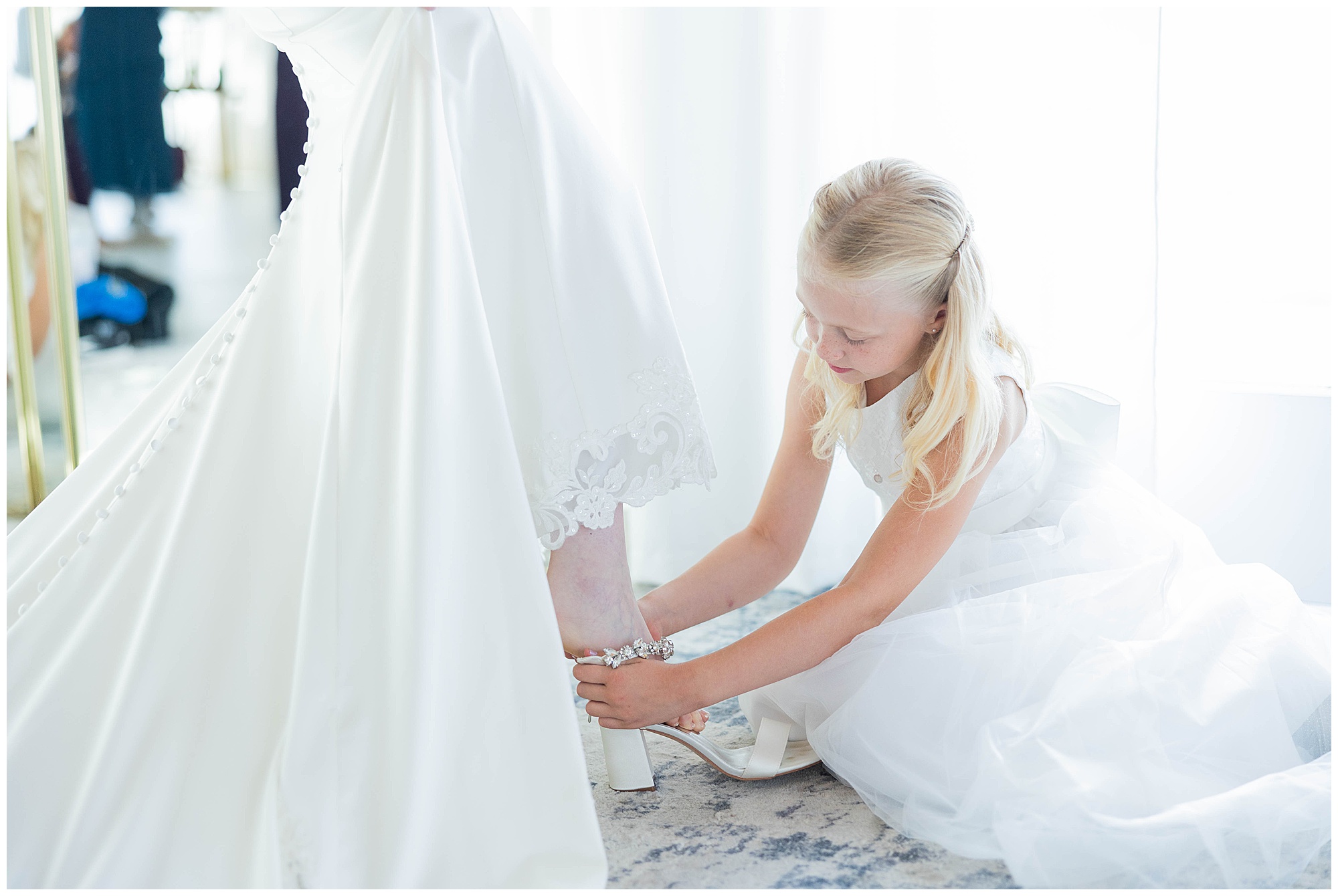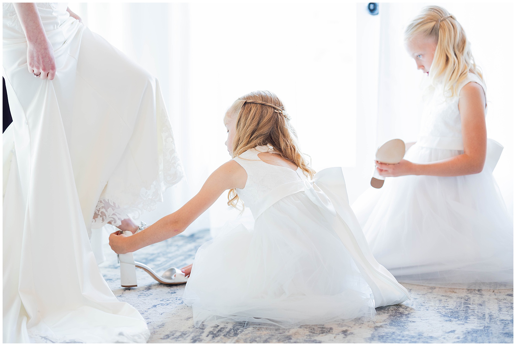 Lorraine and her bridesmaids got ready together throughout the morning and were later joined by her flower girls. The two young girls were entranced by Lorraine’s dress, and I got some of the sweetest photos of them tending to it before Lorraine put it on!