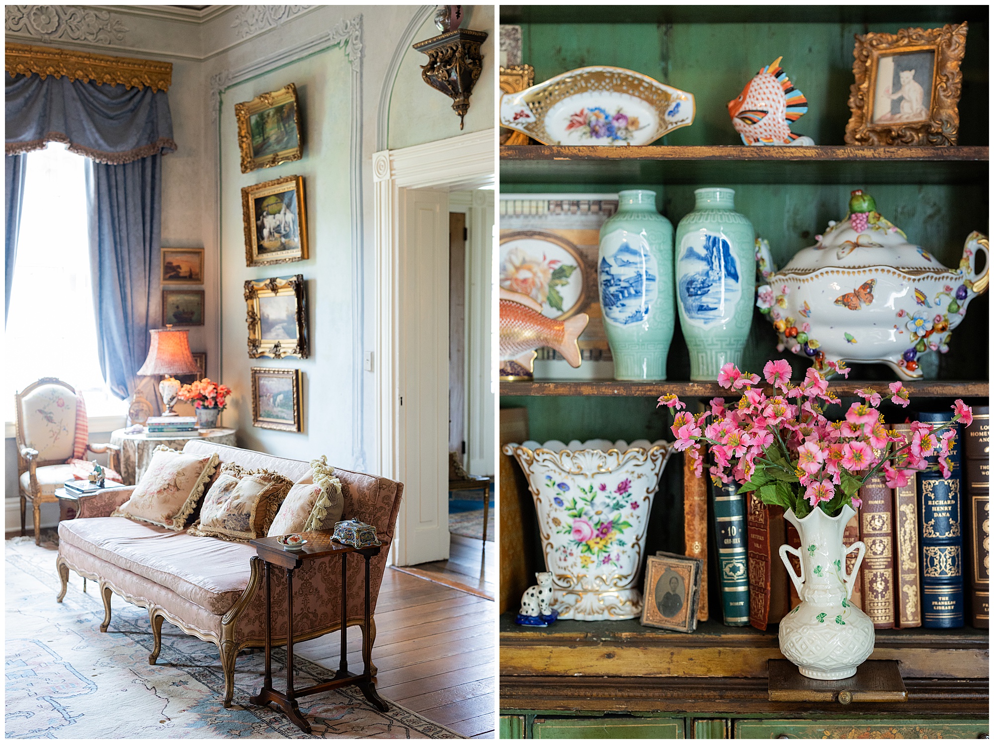 Would you believe me if I told you that all the interior doors of the home are made of trees from the backyard? That’s just a taste of how much intentionality and care Mary Katherine’s grandmother put into crafting this incredible home. Antiques, family heirlooms and gorgeous paintings adorned each and every surface, and it was this photographer’s dream to capture it all so meaningfully for Mary Katherine.