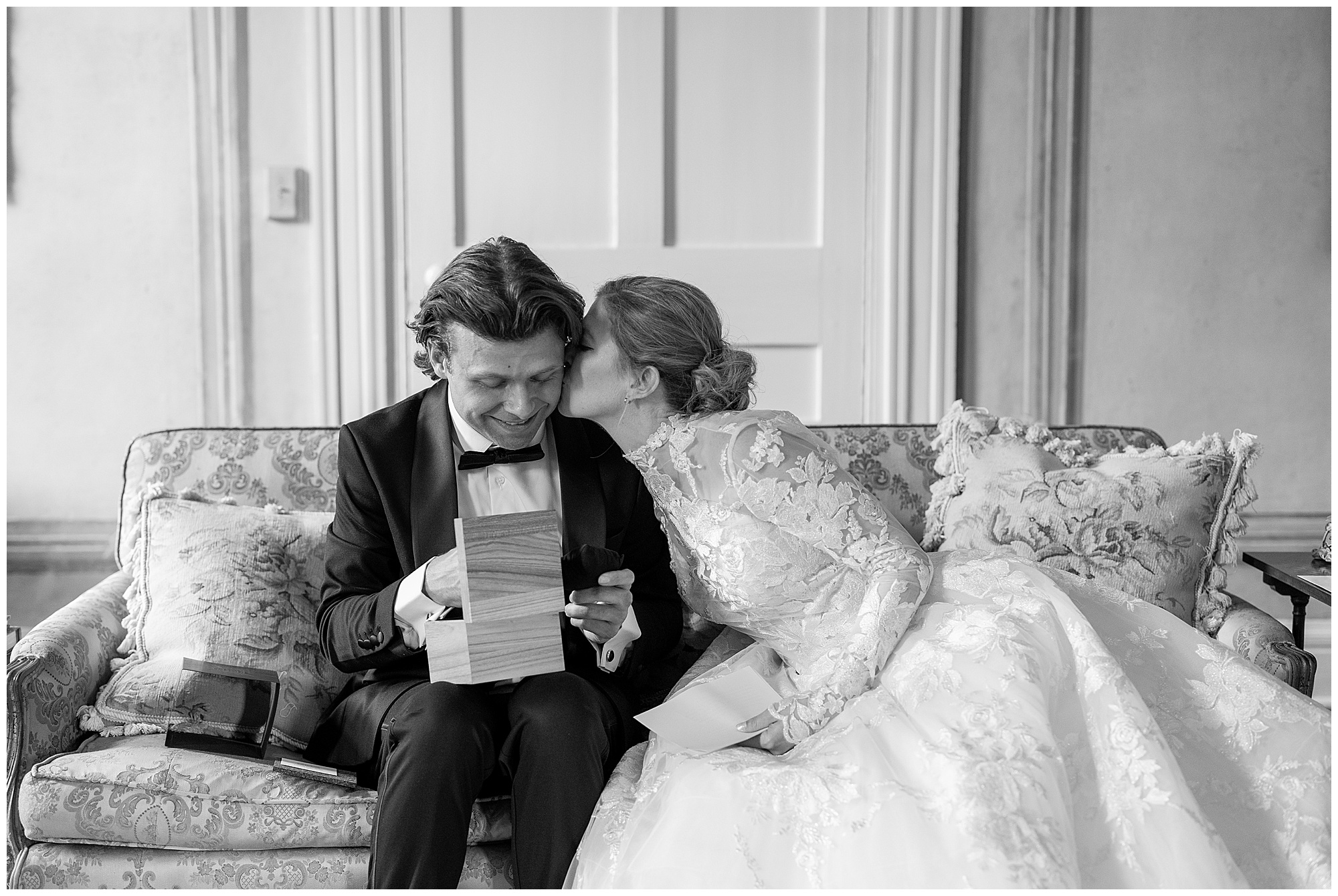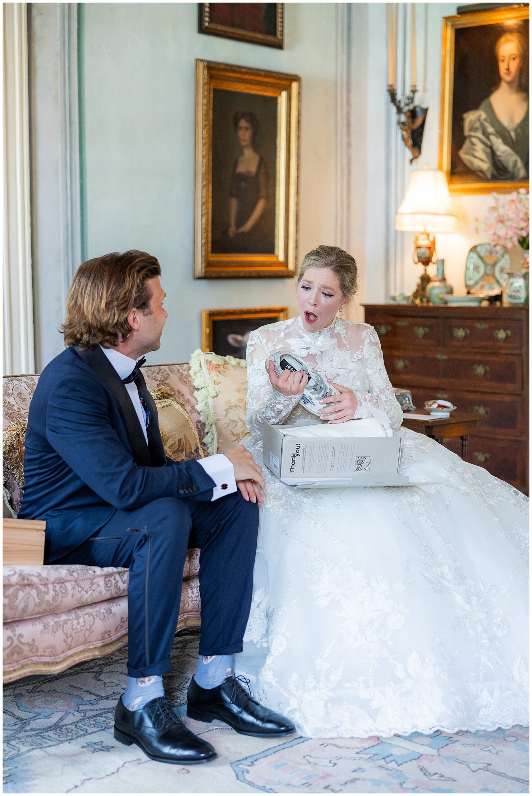 Michael and Mary Katherine’s first look was full of gushing compliments to one another. These two are in love, and it shows! Mary Katherine gifted Michael an Italian watch, and he gifted her a pair of custom Golden Goose Shoes, complete with paintings of her grandmother’s home on the sides. They were such a sweet way to memorialize that detail of their wedding day.