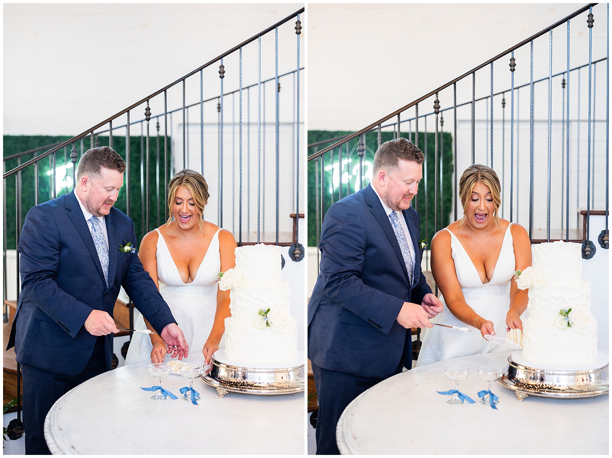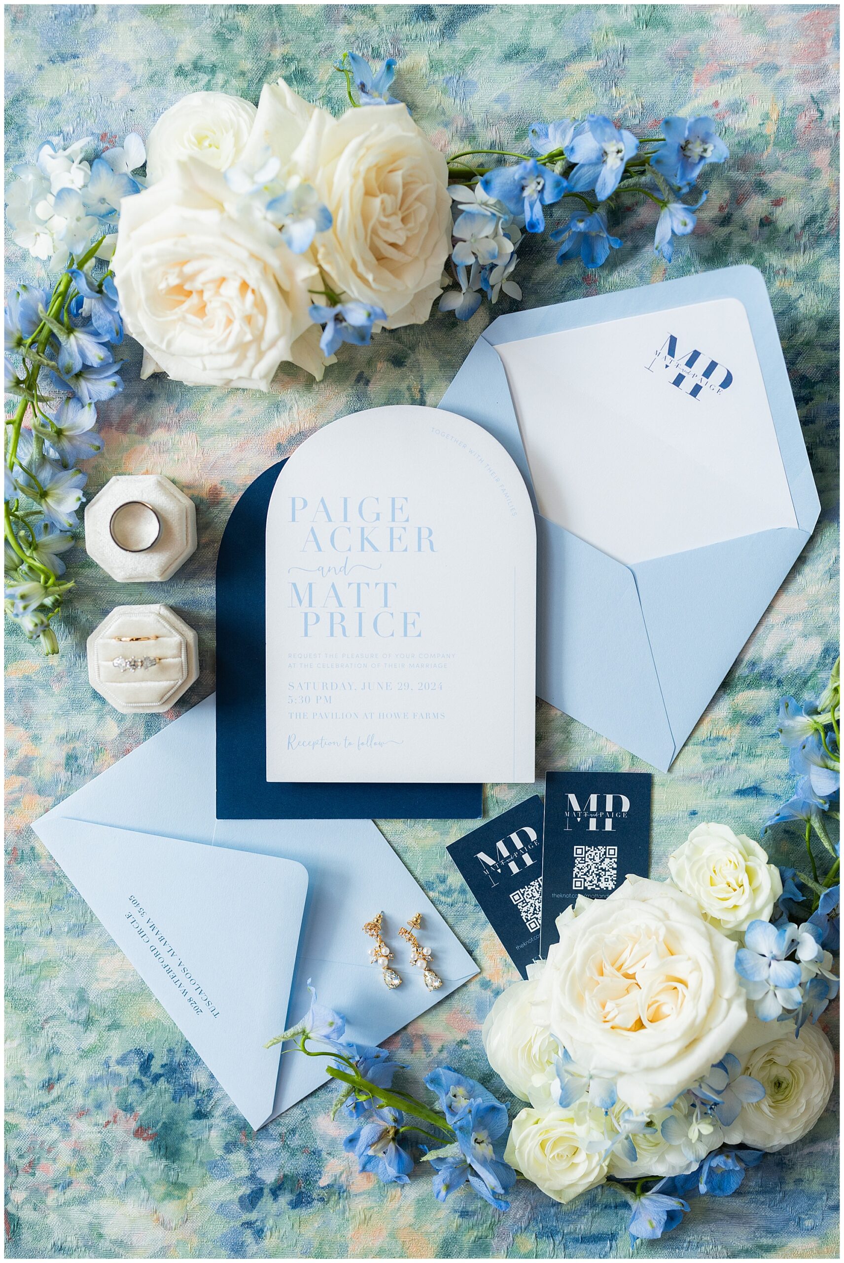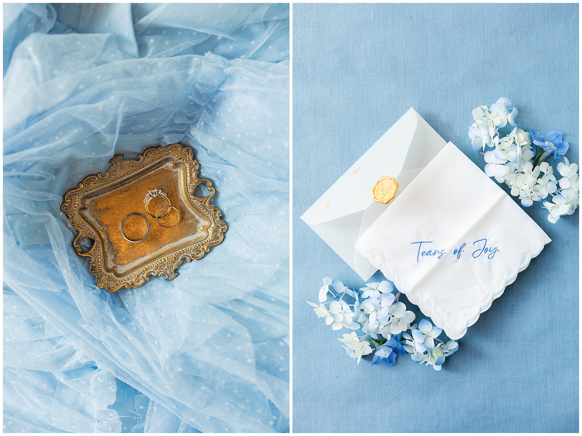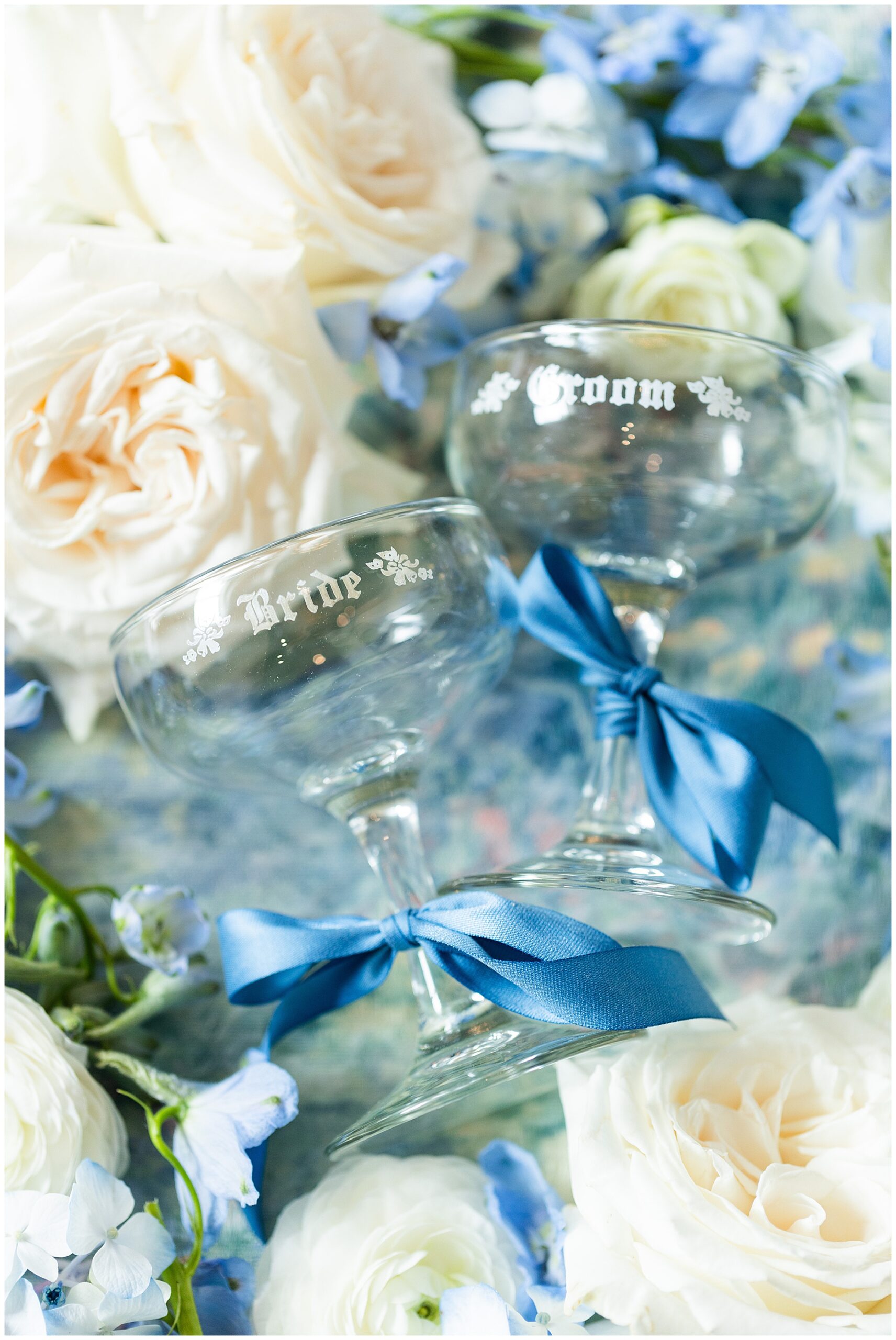 Paige and Matt’s love story spans five beautiful years, culminating in a wedding day filled with personal touches. Paige infused her day with a stunning blue theme, evident in every detail from her shoe attire to the Bridesmaid dresses to décor. One of the sweetest details was the adorable “Bride” and “Groom” engraved glass coupes that sat on their cake table. Paige’s parents used them at their own wedding 40 years ago – sentimental and adorable!