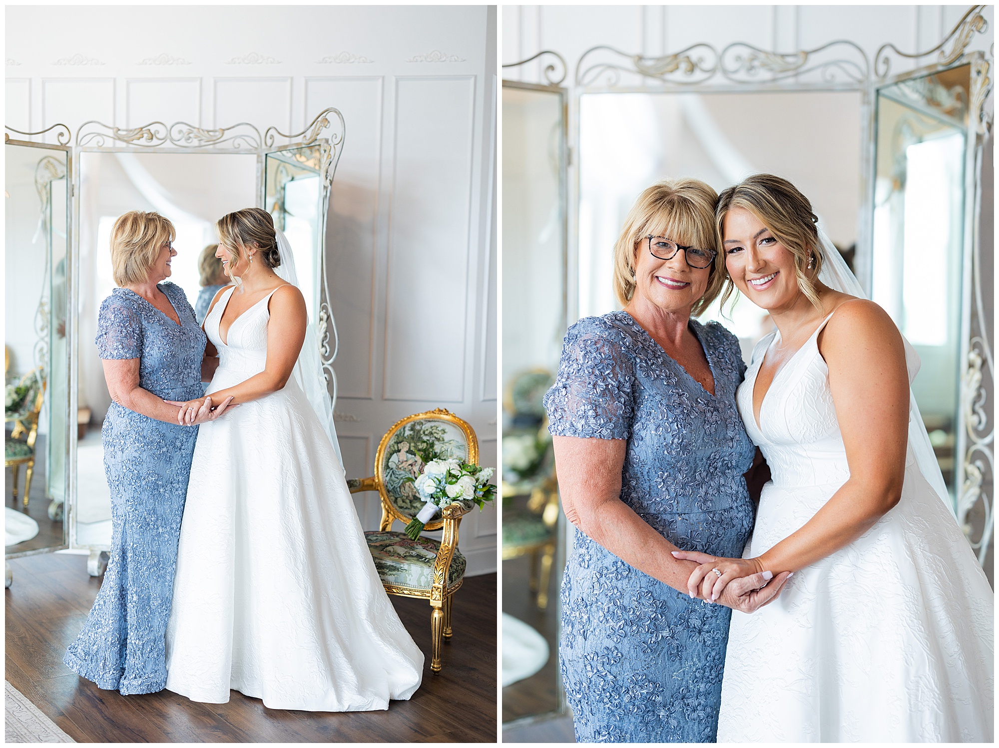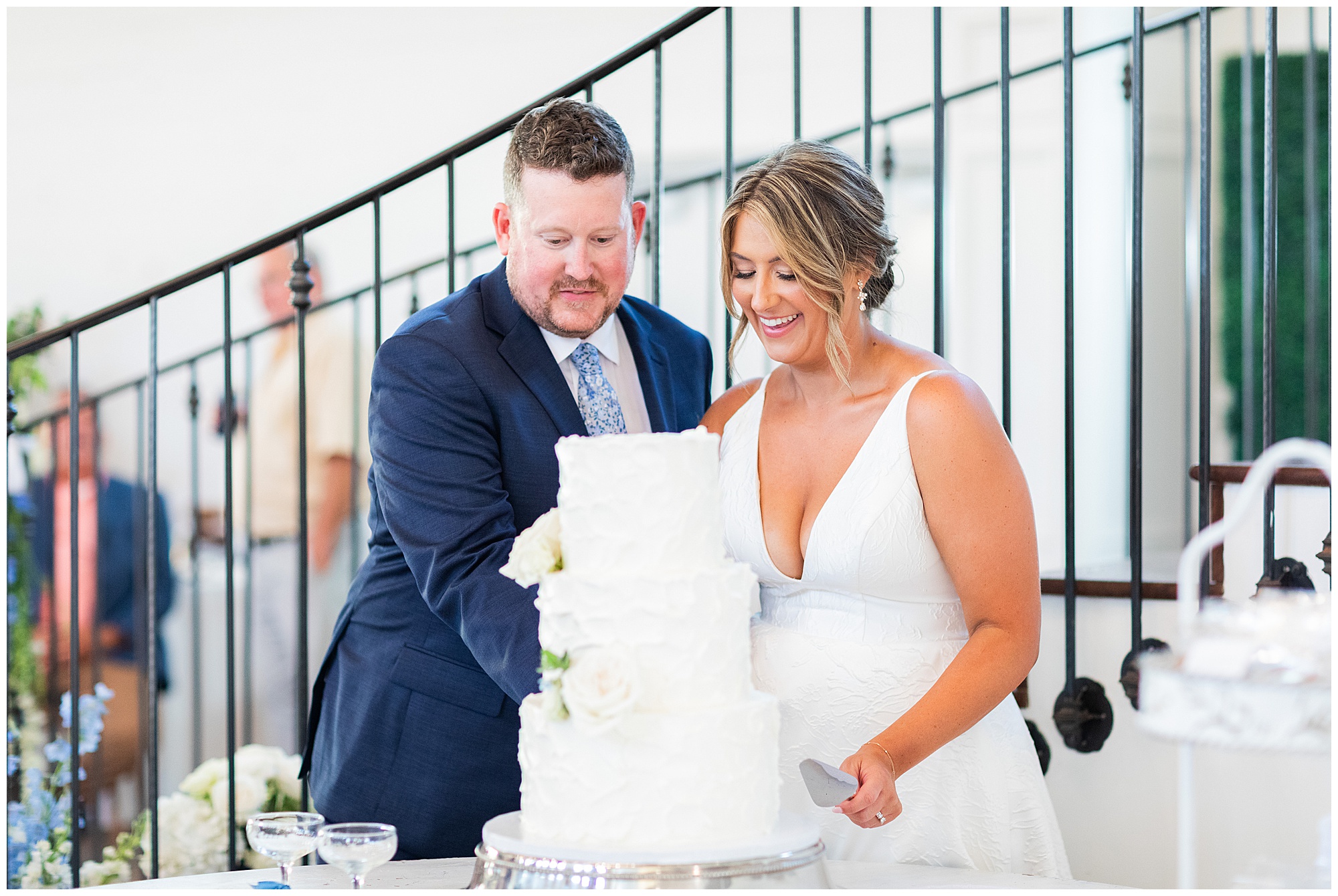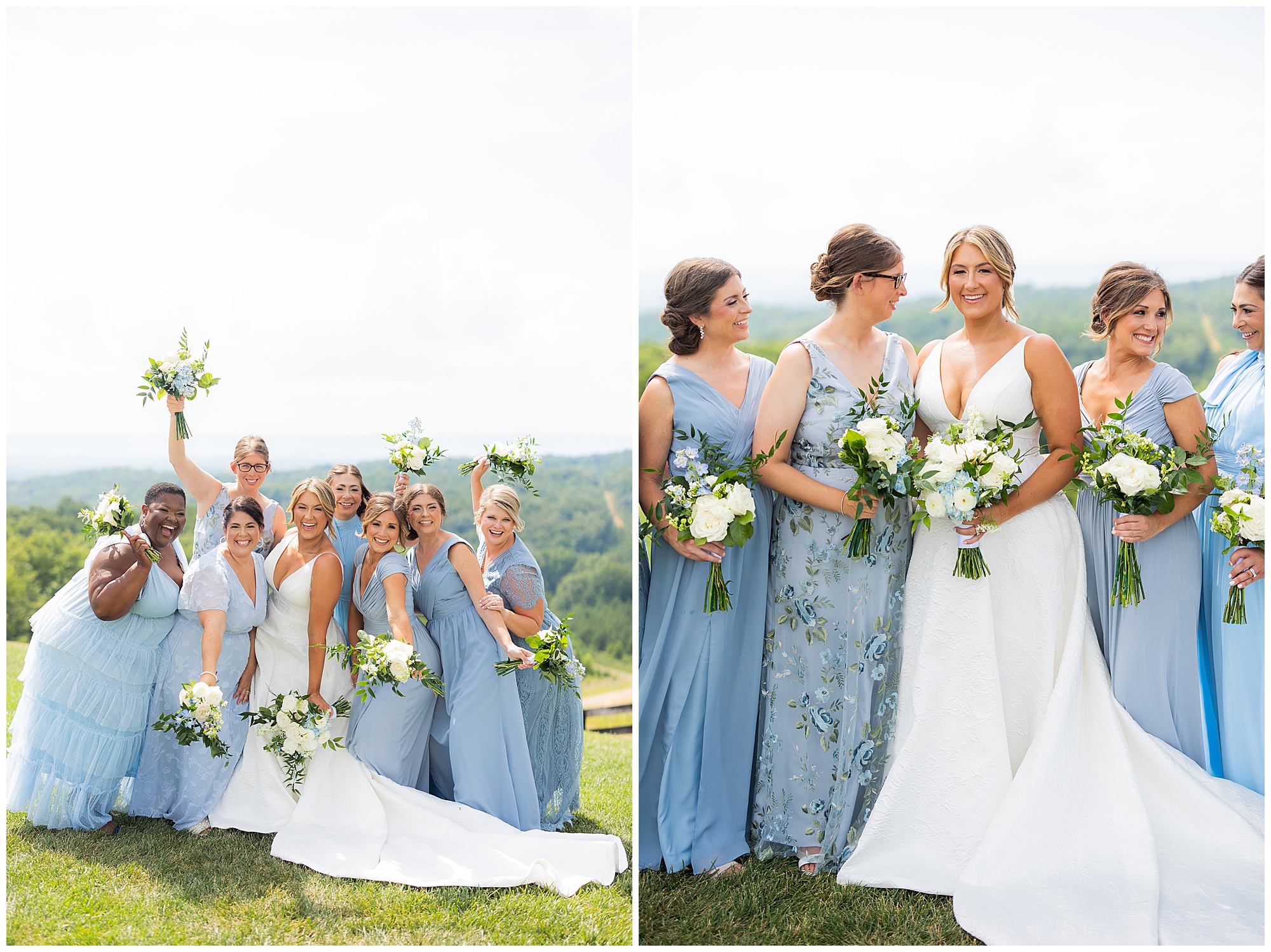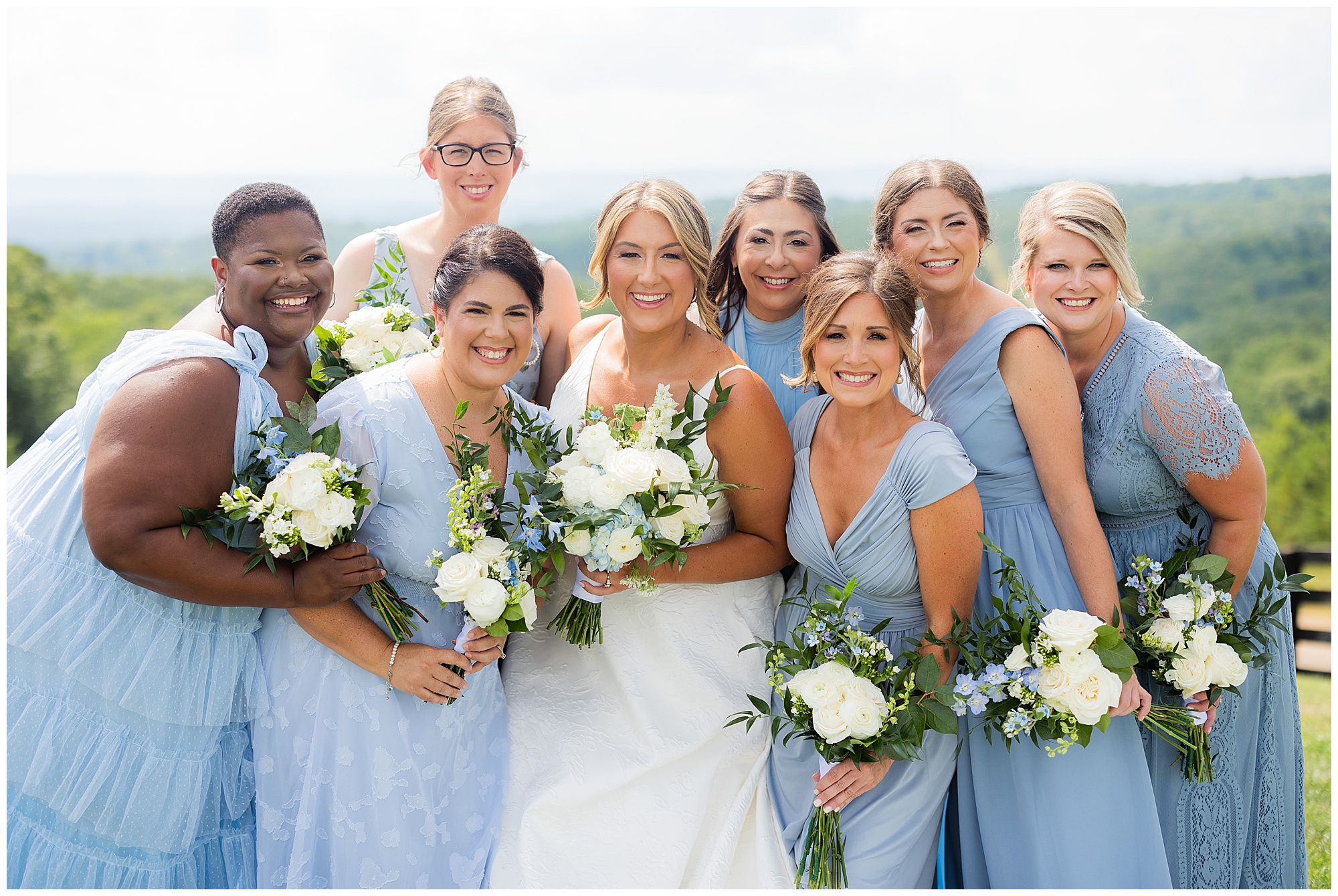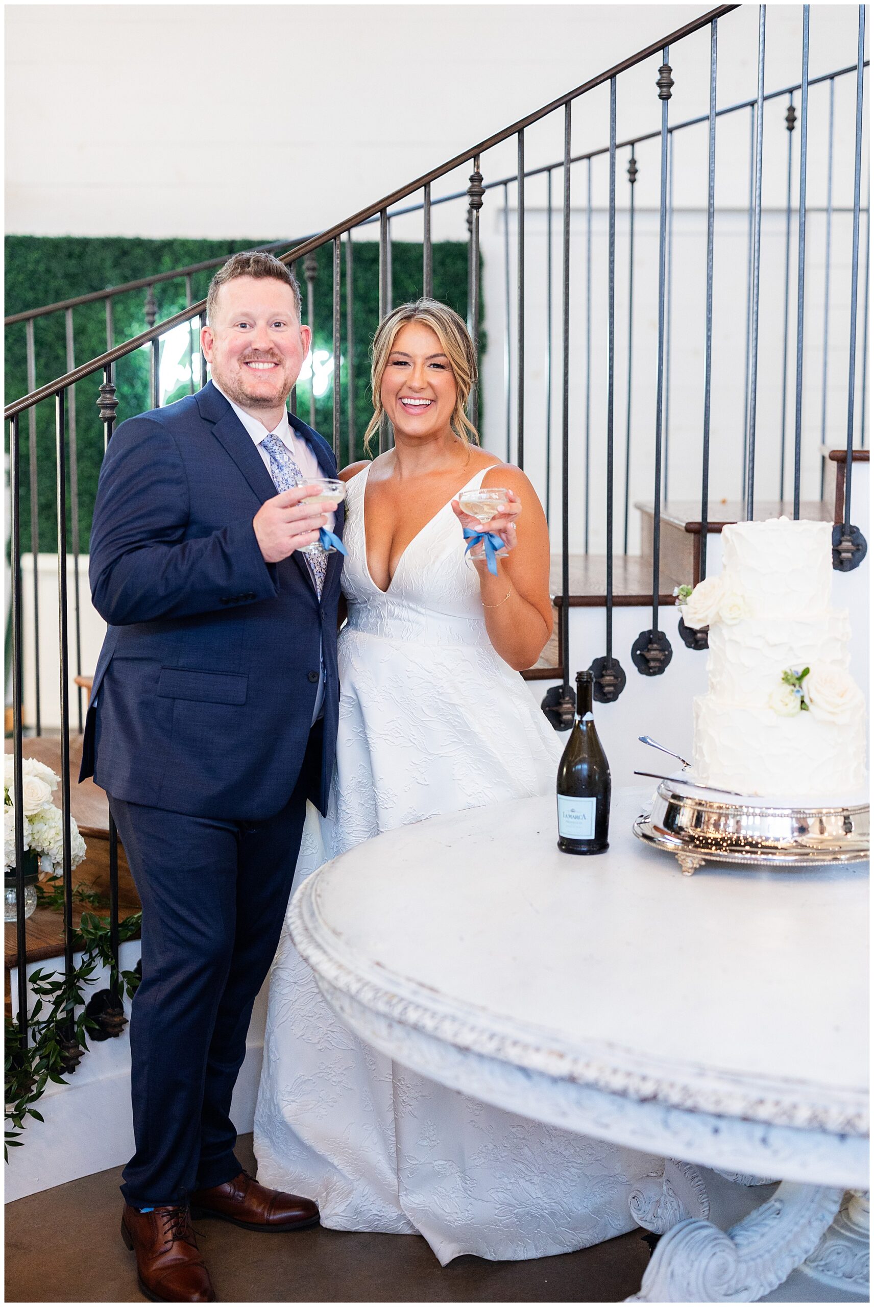 Paige and Matt’s love story spans five beautiful years, culminating in a wedding day filled with personal touches. Paige infused her day with a stunning blue theme, evident in every detail from her shoe attire to the Bridesmaid dresses to décor. One of the sweetest details was the adorable “Bride” and “Groom” engraved glass coupes that sat on their cake table. Paige’s parents used them at their own wedding 40 years ago – sentimental and adorable!