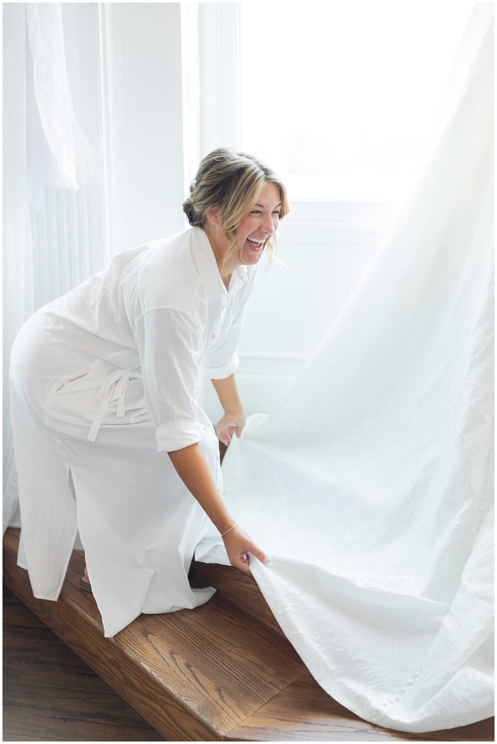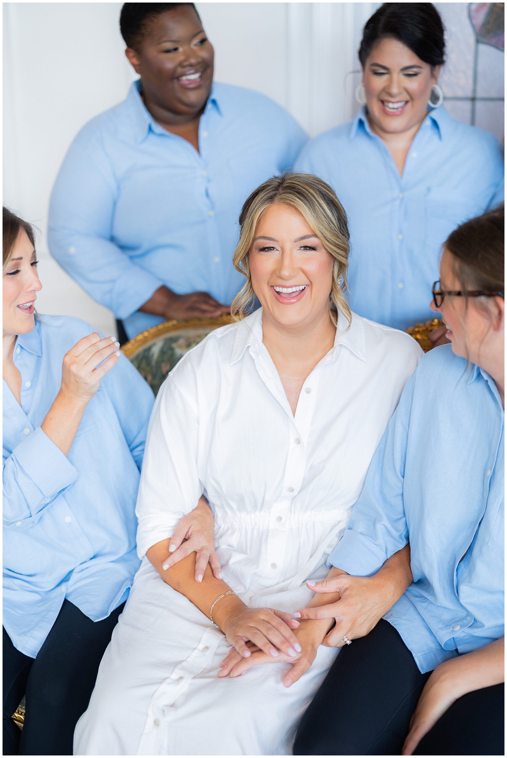 Paige had a clear vision for her wedding day, opting for a unique twist on the traditional wedding party. Her closest supporters were lovingly nicknamed “Team Paige,” with here sister, Brittany, standing proudly by her side as her “Best Girl.” Paige got ready with them that morning, giddy with excitement over the day head!