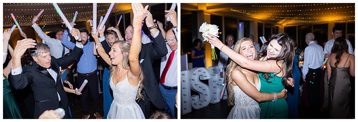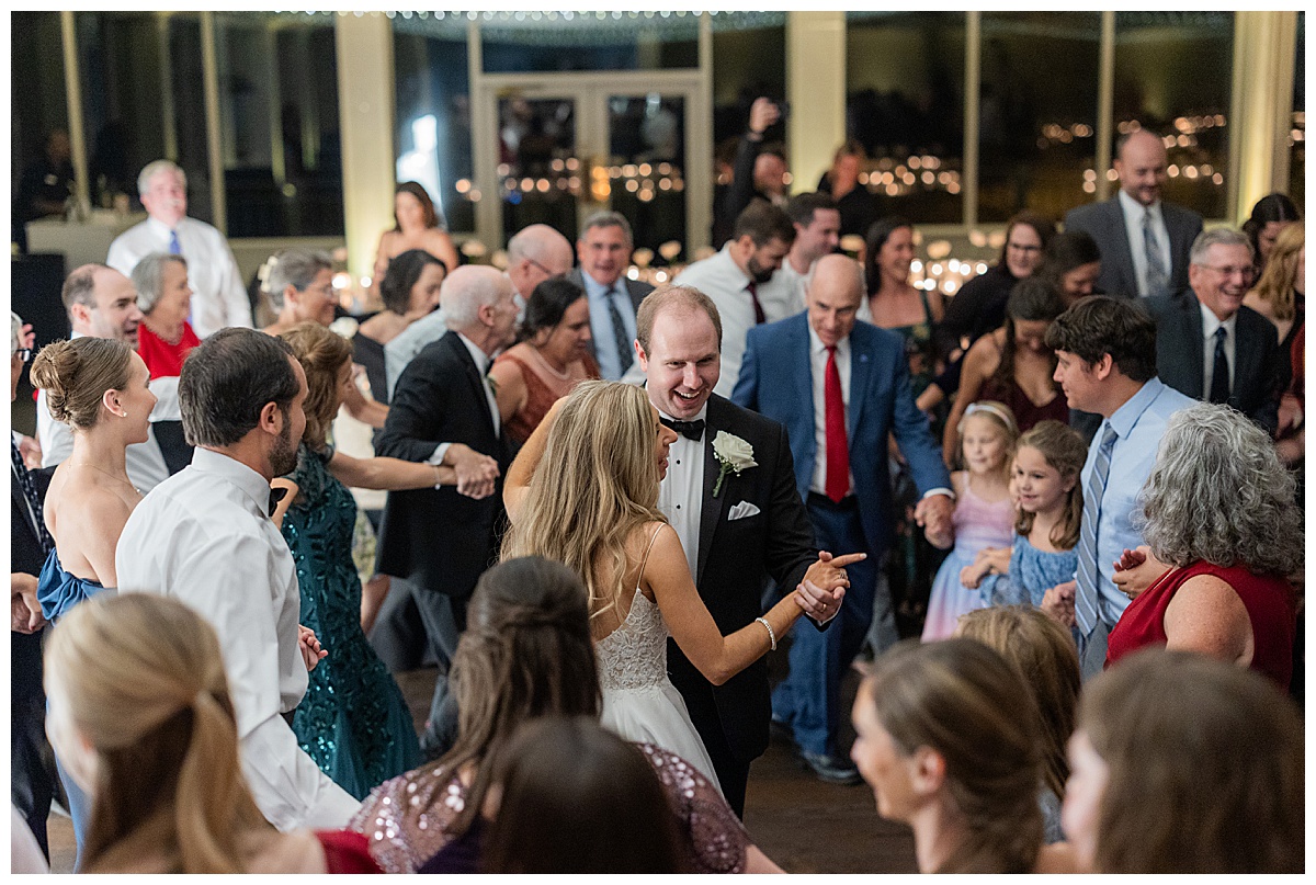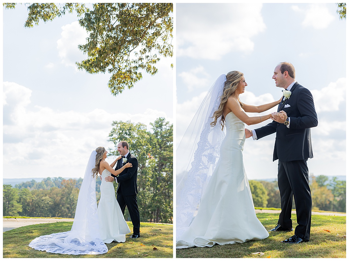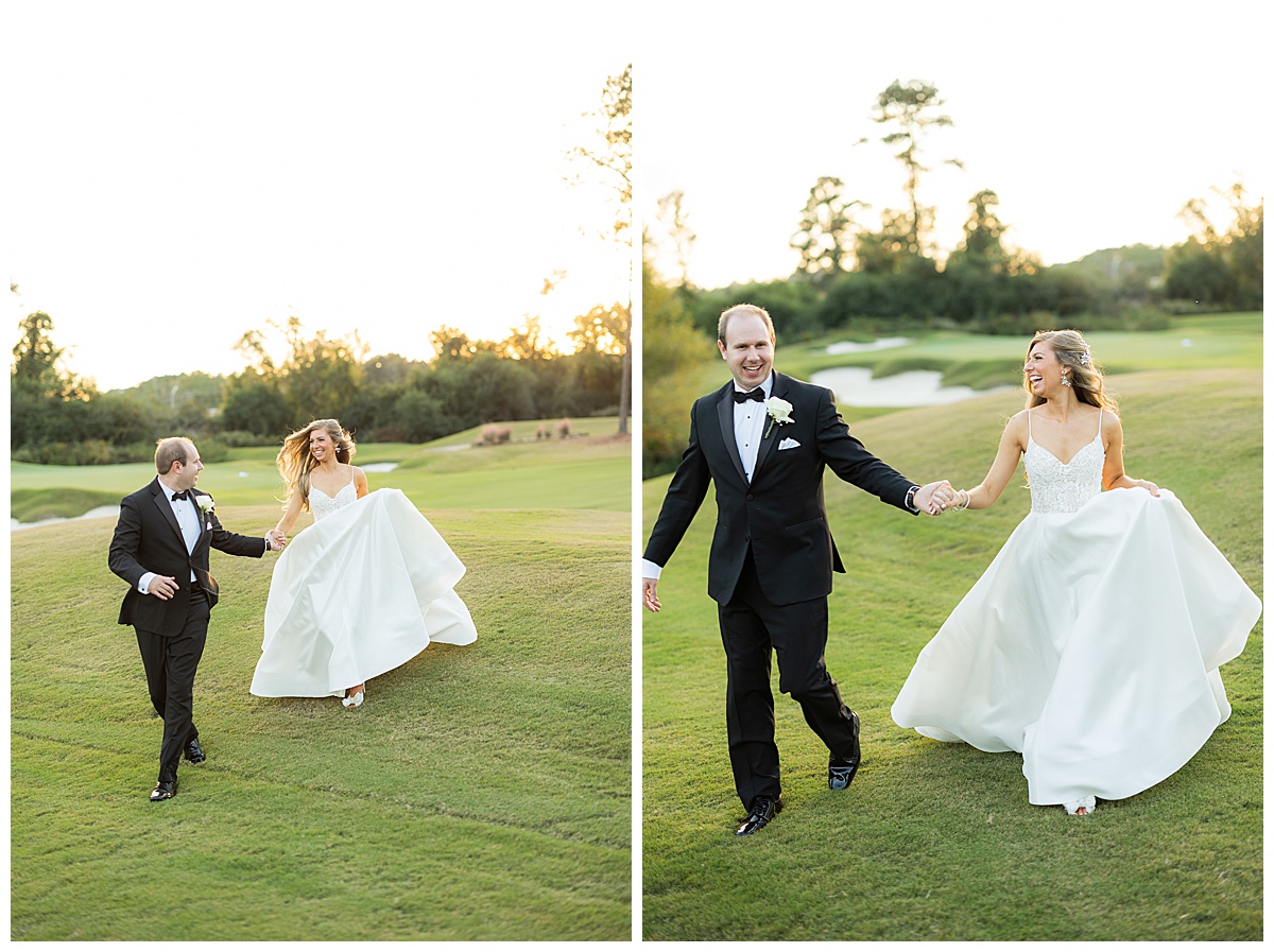 Then, it was back to Pine Tree for Rebecca’s dress and hair change! She and David were eager to greet and hug all their people, so they popped into cocktail hour for a bit before we jumped into golf carts for sunset portraits. I sent the drone into the sky and absolutely love the results. These were some of my favorite minutes from the day: laughing, dancing, and breathing easy again after all the nerves had faded!